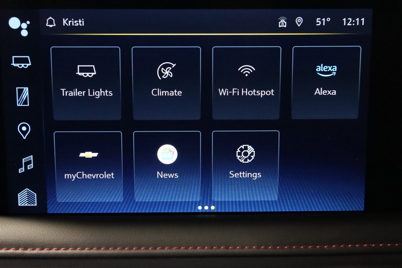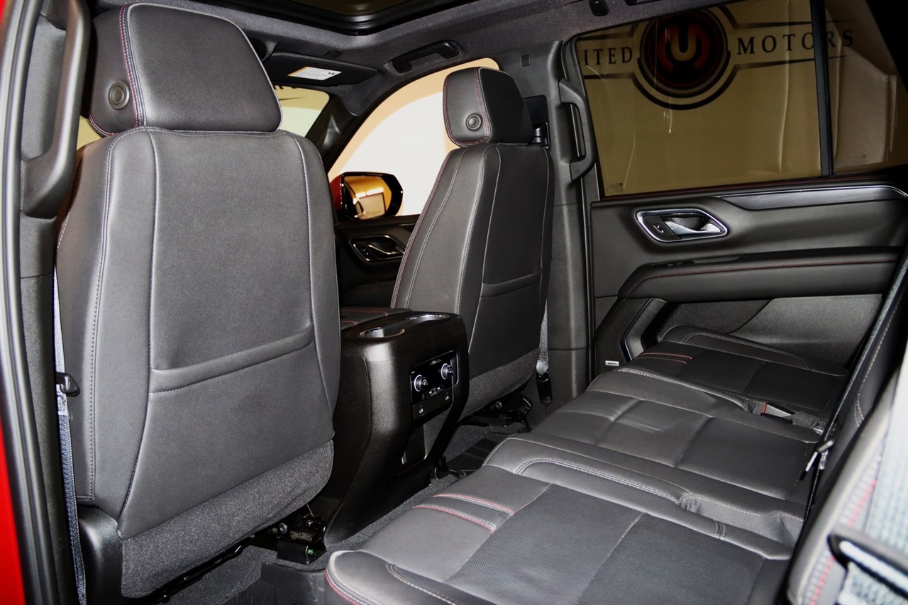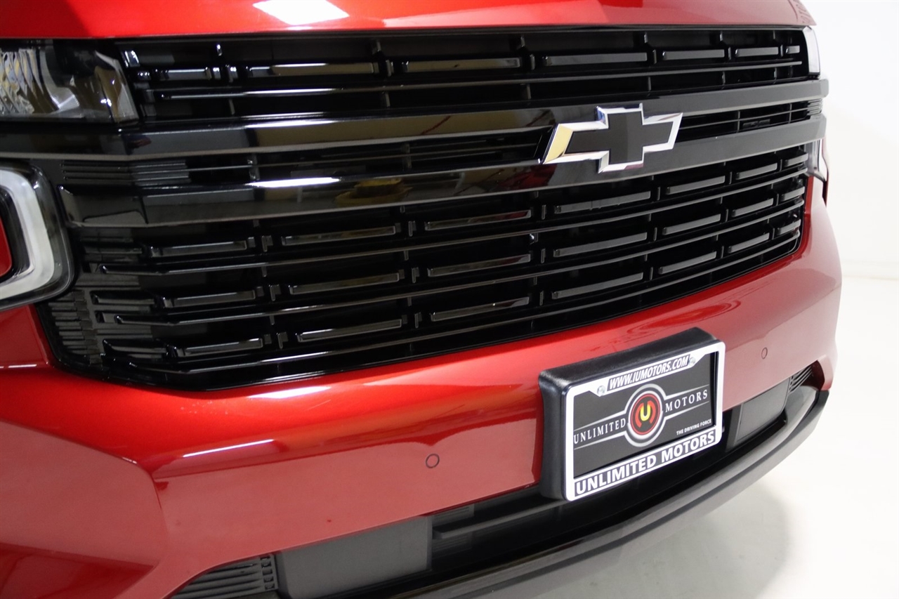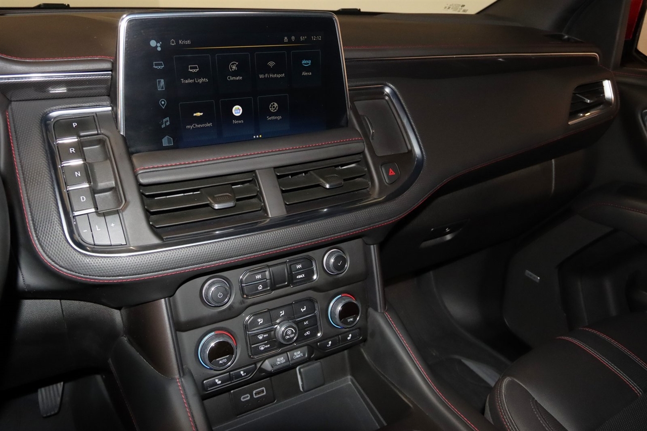 Navigation, Bluetooth, Back Up Camera, Panoramic Roof, 3rd Row, Heated Seats, Touch Screen, 10-Way Power Driver & Passenger Seat Adjusters, 1st & 2nd Row Color-Keyed Carpeted Floor Mats, 1st, 2nd & 3rd Rows All-Weather Floor Liners (LPO), 3.23 Rear Axle Ratio, 3rd row seats: split-bench, 4-Wheel Disc Brakes, 9 Speakers, ABS brakes, Air Conditioning, Alloy wheels, AM/FM radio: SiriusXM with 360L, Apple CarPlay/Android Auto, Auto High-beam Headlights, Auto-Dimming Inside Rear-View Mirror, Auto-dimming Rear-View mirror, Automatic temperature control, Bose 9-Speaker Stereo Audio System Feature, Brake assist, Bright Front & Rear Door Sill Plates, Bumpers: body-color, Color-Keyed Carpeting Floor Covering, Compass, Delay-off headlights, Driver & Front Outboard Passenger Airbags, Driver door bin, Driver vanity mirror, Dual front impact airbags, Dual front side impact airbags, Dual-Pane Power Panoramic Sunroof, Electronic Stability Control, Emergency communication system: OnStar and Chevrolet connected services capable, Enhanced Driver Information Center, Floor Console w/Storage Area, Four wheel independent suspension, Front anti-roll bar, Front Bucket Seats, Front Center Armrest, Front dual zone A/C, Front High-Back Reclining Bucket Seats, Front reading lights, Fully automatic headlights, Garage door transmitter, Hands-Free Rear Power Programmable Liftgate, Heated door mirrors, Heated Driver & Front Passenger Seats, Heated front seats, Illuminated entry, Infotainment Display, LED Daytime Running Lamps, Low tire pressure warning, Memory seat, Memory Settings for Driver, Navigation System, Not Equipped w/Wheel Locks (LPO), Occupant sensing airbag, Outside temperature display, Overhead airbag, Overhead console, Panic alarm, Passenger door bin, Passenger vanity mirror, Perforated Leather Seat Trim, Power door mirrors, Power driver seat, Power Liftgate, Power passenger seat, Power steering, Power windows, Preferred Equipment Group 1SP, Premium audio system: Chevrolet Infotainment 3 Premium, Premium Smooth Ride Suspension, Radio: Chevrolet Infotainment 3 Premium System, Rain sensing wipers, Rear air conditioning, Rear anti-roll bar, Rear reading lights, Rear seat center armrest, Rear window defroster, Rear window wiper, Remote keyless entry, Remote Start, Roof rack: rails only, Security system, SiriusXM Radio w/360L, Speed control, Speed-sensing steering, Split folding rear seat, Spoiler, Steering wheel mounted audio controls, Tachometer, Telescoping steering wheel, Tilt steering wheel, Traction control, Trip computer, Universal Home Remote, Variably intermittent wipers, Voltmeter, Wheels: 22" x 9" Bright Machined, Wireless Charging, Wrapped Steering Wheel. CARFAX One-Owner. Clean CARFAX. Odometer is 12461 miles below market average!