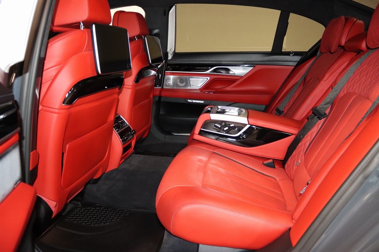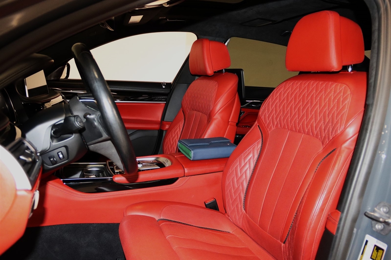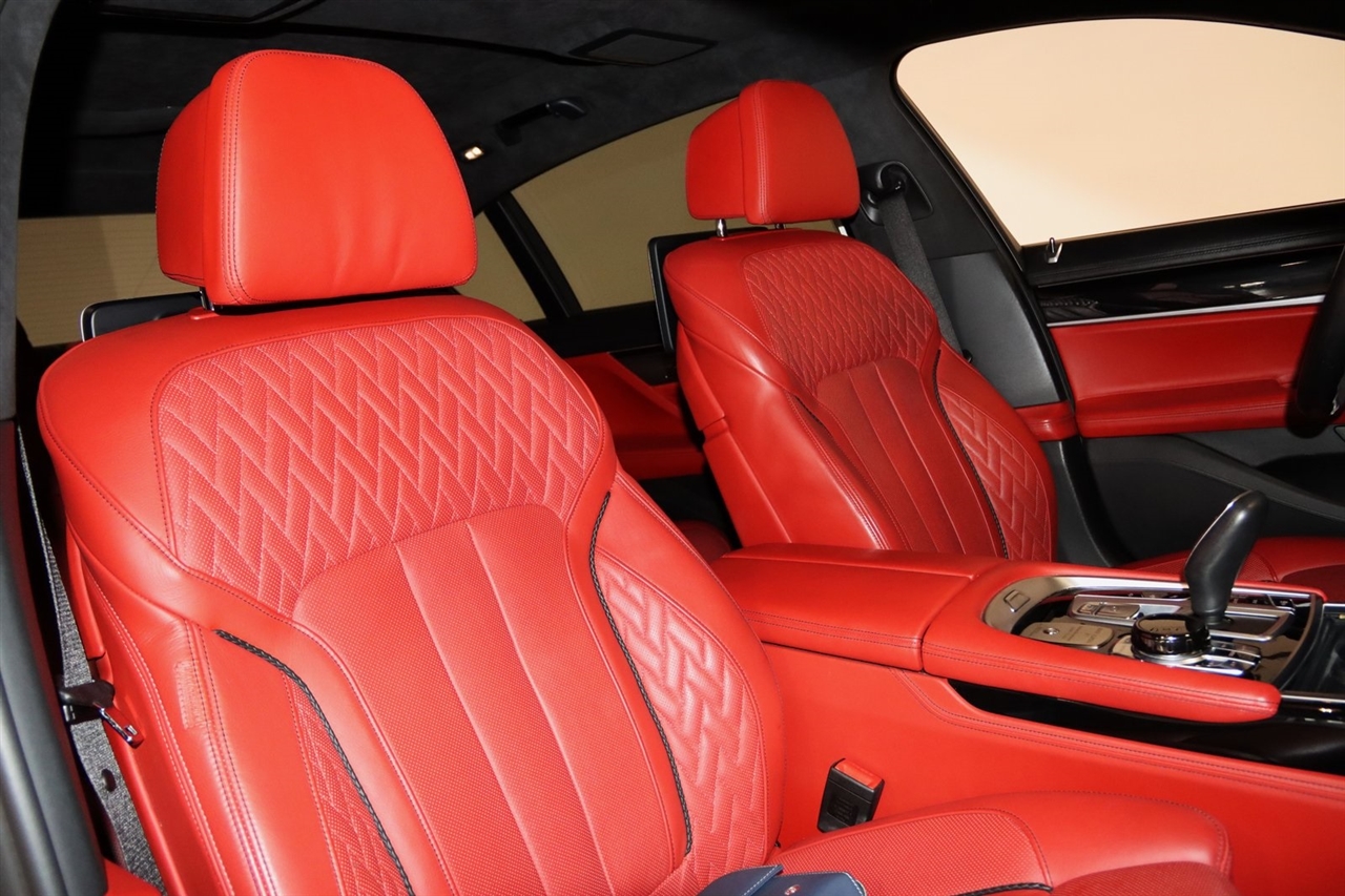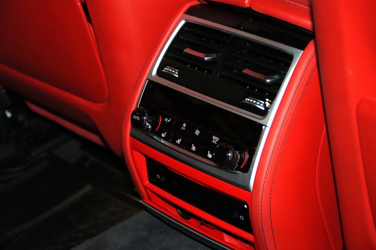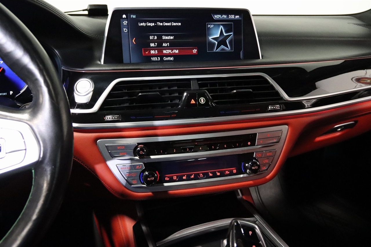 Navigation, Bluetooth, Back Up Camera, Panoramic Roof, Heated Seats, 16 Speakers, 4-Wheel Disc Brakes, ABS brakes, Adaptive suspension, Air Conditioning, Alloy wheels, AM/FM radio, Anti-whiplash front head restraints, Auto High-beam Headlights, Auto tilt-away steering wheel, Auto-dimming door mirrors, Auto-dimming Rear-View mirror, Auto-leveling suspension, Automatic temperature control, Brake assist, Bumpers: body-color, CD player, Delay-off headlights, Door auto-latch, Driver door bin, Driver vanity mirror, Dual front impact airbags, Dual front side impact airbags, Electronic Stability Control, Emergency communication system: BMW Assist eCall, Exterior Parking Camera Rear, Four wheel independent suspension, Front & Rear Heated Seats, Front anti-roll bar, Front Bucket Seats, Front Center Armrest, Front dual zone A/C, Front fog lights, Front Massaging Seats, Front Multi-Contour Seats, Front reading lights, Front Ventilated Seats, Fully automatic headlights, Garage door transmitter, harman/kardon Surround Sound System, harman/kardon® Speakers, Head restraints memory, Heads-Up Display, Heated door mirrors, Heated front seats, Heated rear seats, Heated steering wheel, Illuminated entry, Knee airbag, Leather Shift Knob, Leather steering wheel, Low tire pressure warning, Memory seat, Navigation System, Occupant sensing airbag, Outside temperature display, Overhead airbag, Overhead console, Panic alarm, Passenger door bin, Passenger vanity mirror, Perforated Nappa Leather Upholstery, Power adjustable front head restraints, Power door mirrors, Power driver seat, Power moonroof, Power passenger seat, Power steering, Power windows, Radio data system, Radio: In Dash CD Player, Rain sensing wipers, Rear air conditioning, Rear anti-roll bar, Rear dual zone A/C, Rear reading lights, Rear seat center armrest, Rear Window Blind, Rear window defroster, Remote keyless entry, Security system, SiriusXM Satellite Radio, Speed control, Speed-sensing steering, Speed-Sensitive Wipers, Spoiler, Sport steering wheel, Steering wheel memory, Steering wheel mounted audio controls, Tachometer, Telescoping steering wheel, Tilt steering wheel, Traction control, Trip computer, Variably intermittent wipers, Ventilated front seats, Weather band radio, Wheels: 20" x 8.5" Fr & 20" x 10" Rr.