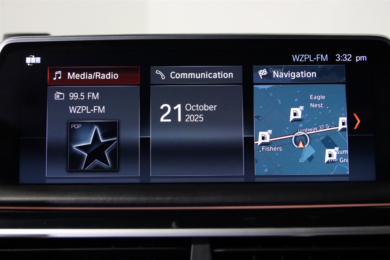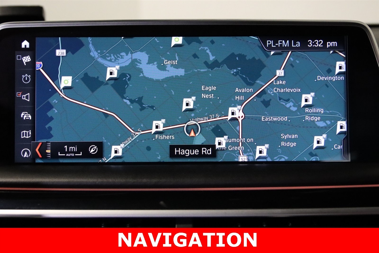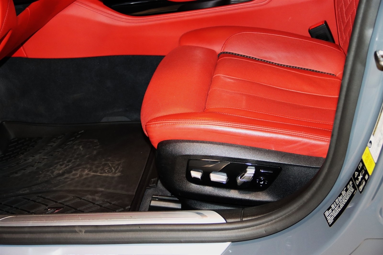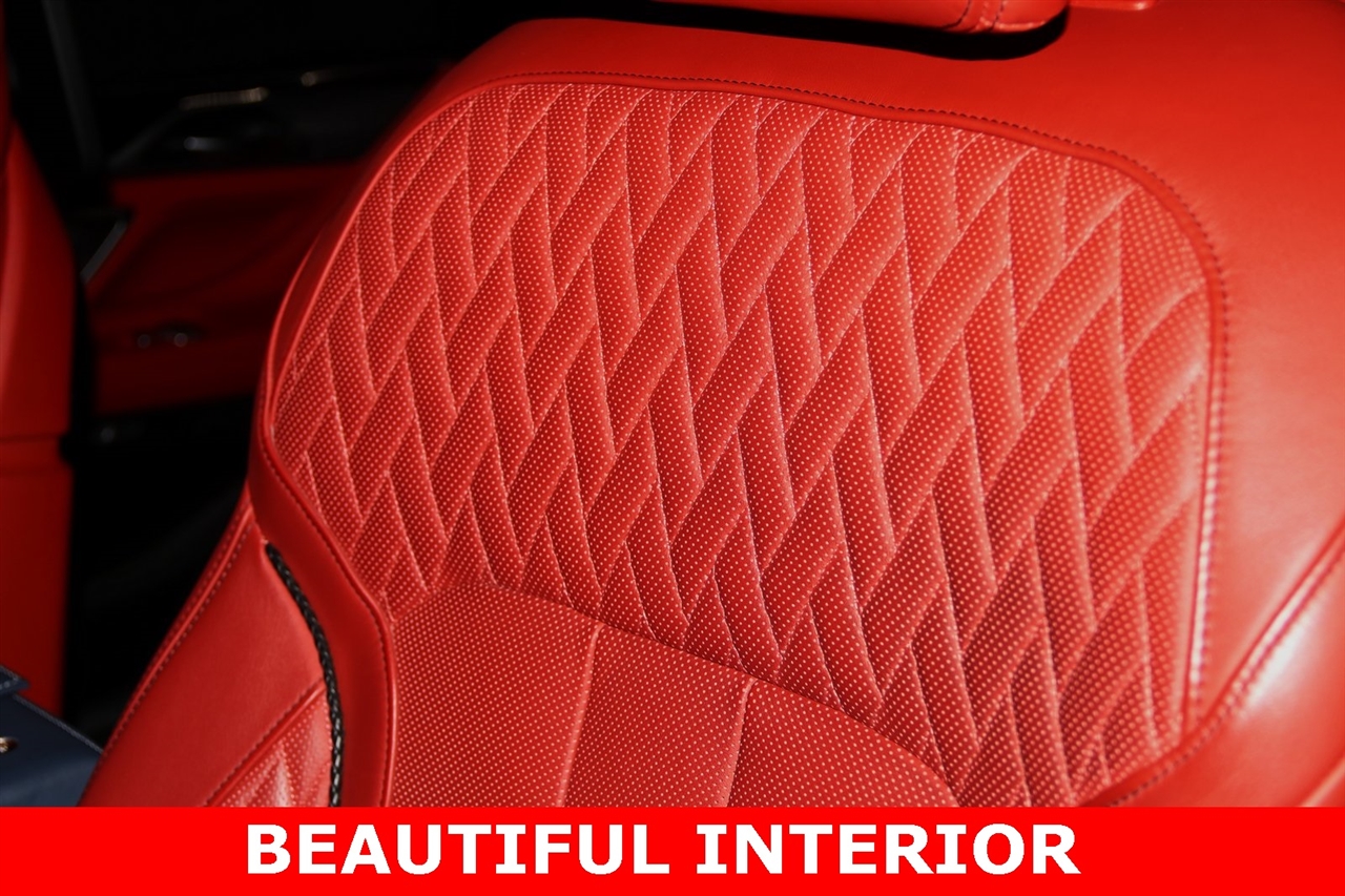 Navigation, Bluetooth, Back Up Camera, Panoramic Roof, Heated Seats, 16 Speakers, 4-Wheel Disc Brakes, ABS brakes, Adaptive suspension, Air Conditioning, Alloy wheels, AM/FM radio, Anti-whiplash front head restraints, Auto High-beam Headlights, Auto tilt-away steering wheel, Auto-dimming door mirrors, Auto-dimming Rear-View mirror, Auto-leveling suspension, Automatic temperature control, Brake assist, Bumpers: body-color, CD player, Delay-off headlights, Door auto-latch, Driver door bin, Driver vanity mirror, Dual front impact airbags, Dual front side impact airbags, Electronic Stability Control, Emergency communication system: BMW Assist eCall, Exterior Parking Camera Rear, Four wheel independent suspension, Front & Rear Heated Seats, Front anti-roll bar, Front Bucket Seats, Front Center Armrest, Front dual zone A/C, Front fog lights, Front Massaging Seats, Front Multi-Contour Seats, Front reading lights, Front Ventilated Seats, Fully automatic headlights, Garage door transmitter, harman/kardon Surround Sound System, harman/kardon® Speakers, Head restraints memory, Heads-Up Display, Heated door mirrors, Heated front seats, Heated rear seats, Heated steering wheel, Illuminated entry, Knee airbag, Leather Shift Knob, Leather steering wheel, Low tire pressure warning, Memory seat, Navigation System, Occupant sensing airbag, Outside temperature display, Overhead airbag, Overhead console, Panic alarm, Passenger door bin, Passenger vanity mirror, Perforated Nappa Leather Upholstery, Power adjustable front head restraints, Power door mirrors, Power driver seat, Power moonroof, Power passenger seat, Power steering, Power windows, Radio data system, Radio: In Dash CD Player, Rain sensing wipers, Rear air conditioning, Rear anti-roll bar, Rear dual zone A/C, Rear reading lights, Rear seat center armrest, Rear Window Blind, Rear window defroster, Remote keyless entry, Security system, SiriusXM Satellite Radio, Speed control, Speed-sensing steering, Speed-Sensitive Wipers, Spoiler, Sport steering wheel, Steering wheel memory, Steering wheel mounted audio controls, Tachometer, Telescoping steering wheel, Tilt steering wheel, Traction control, Trip computer, Variably intermittent wipers, Ventilated front seats, Weather band radio, Wheels: 20" x 8.5" Fr & 20" x 10" Rr.