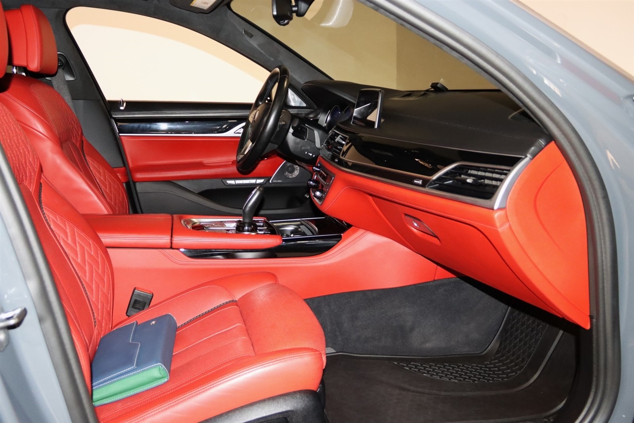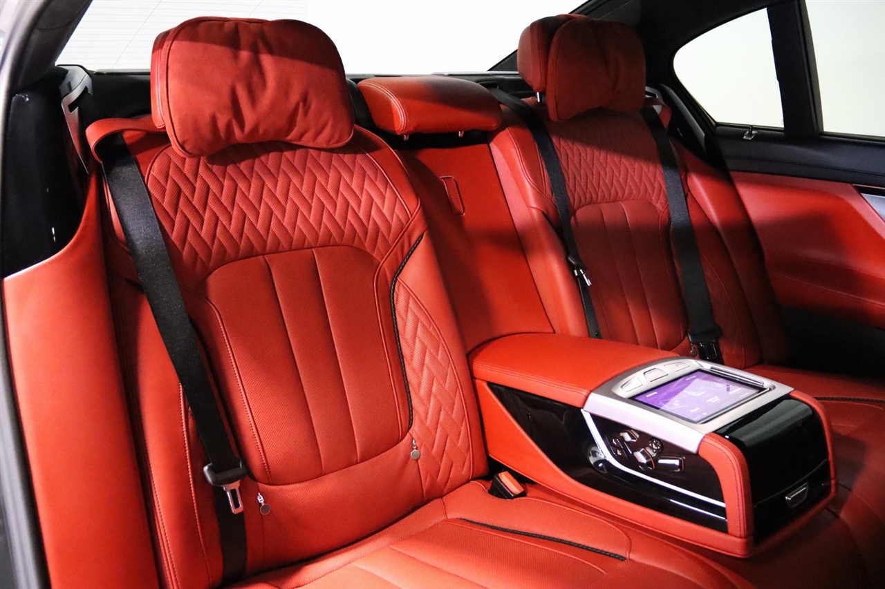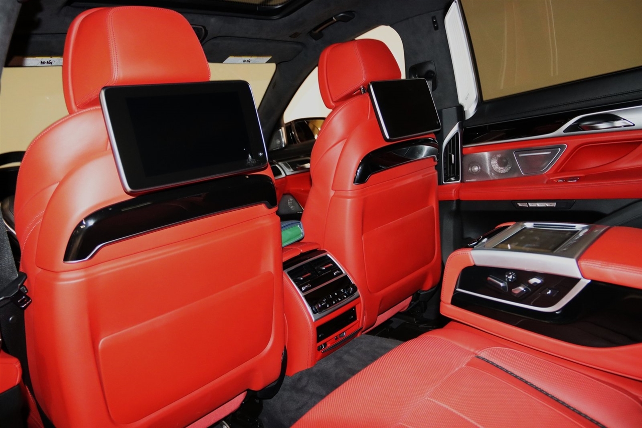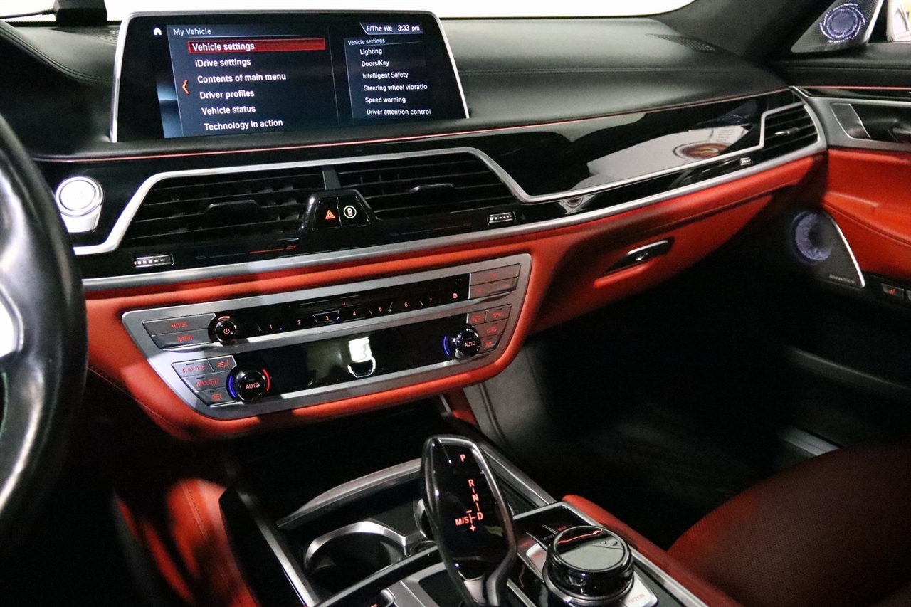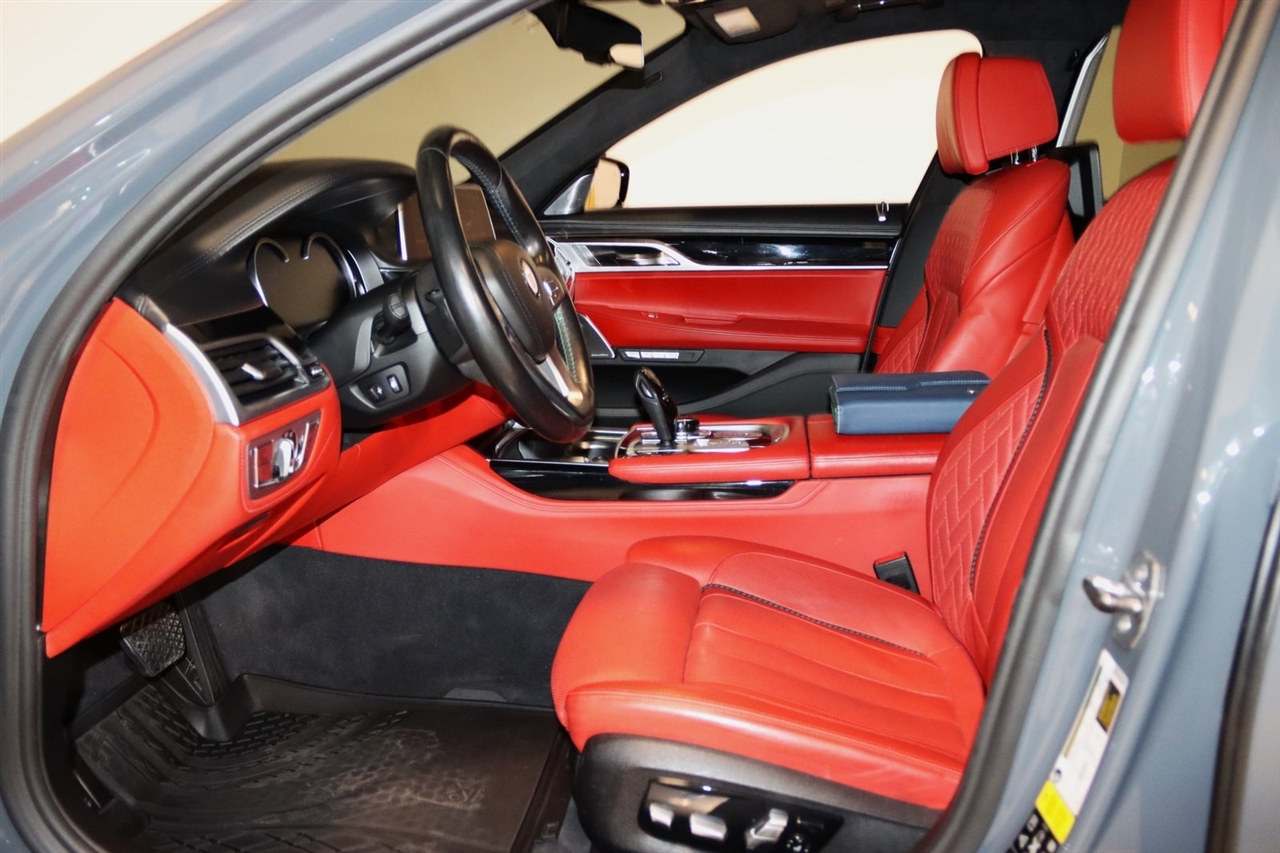 Navigation, Bluetooth, Back Up Camera, Panoramic Roof, Heated Seats, 16 Speakers, 4-Wheel Disc Brakes, ABS brakes, Adaptive suspension, Air Conditioning, Alloy wheels, AM/FM radio, Anti-whiplash front head restraints, Auto High-beam Headlights, Auto tilt-away steering wheel, Auto-dimming door mirrors, Auto-dimming Rear-View mirror, Auto-leveling suspension, Automatic temperature control, Brake assist, Bumpers: body-color, CD player, Delay-off headlights, Door auto-latch, Driver door bin, Driver vanity mirror, Dual front impact airbags, Dual front side impact airbags, Electronic Stability Control, Emergency communication system: BMW Assist eCall, Exterior Parking Camera Rear, Four wheel independent suspension, Front & Rear Heated Seats, Front anti-roll bar, Front Bucket Seats, Front Center Armrest, Front dual zone A/C, Front fog lights, Front Massaging Seats, Front Multi-Contour Seats, Front reading lights, Front Ventilated Seats, Fully automatic headlights, Garage door transmitter, harman/kardon Surround Sound System, harman/kardon® Speakers, Head restraints memory, Heads-Up Display, Heated door mirrors, Heated front seats, Heated rear seats, Heated steering wheel, Illuminated entry, Knee airbag, Leather Shift Knob, Leather steering wheel, Low tire pressure warning, Memory seat, Navigation System, Occupant sensing airbag, Outside temperature display, Overhead airbag, Overhead console, Panic alarm, Passenger door bin, Passenger vanity mirror, Perforated Nappa Leather Upholstery, Power adjustable front head restraints, Power door mirrors, Power driver seat, Power moonroof, Power passenger seat, Power steering, Power windows, Radio data system, Radio: In Dash CD Player, Rain sensing wipers, Rear air conditioning, Rear anti-roll bar, Rear dual zone A/C, Rear reading lights, Rear seat center armrest, Rear Window Blind, Rear window defroster, Remote keyless entry, Security system, SiriusXM Satellite Radio, Speed control, Speed-sensing steering, Speed-Sensitive Wipers, Spoiler, Sport steering wheel, Steering wheel memory, Steering wheel mounted audio controls, Tachometer, Telescoping steering wheel, Tilt steering wheel, Traction control, Trip computer, Variably intermittent wipers, Ventilated front seats, Weather band radio, Wheels: 20" x 8.5" Fr & 20" x 10" Rr.