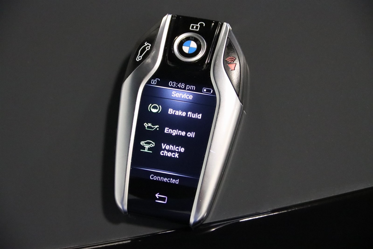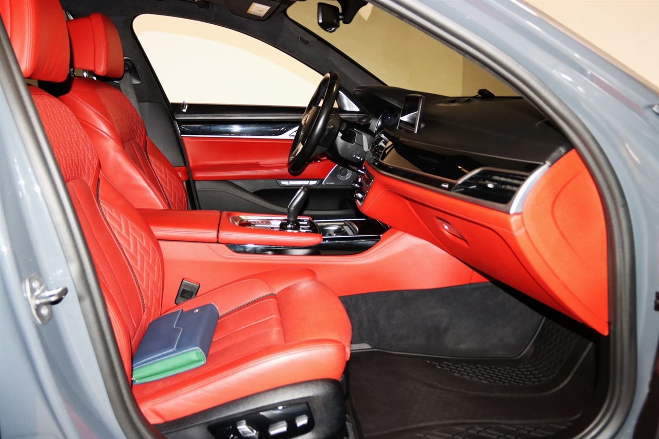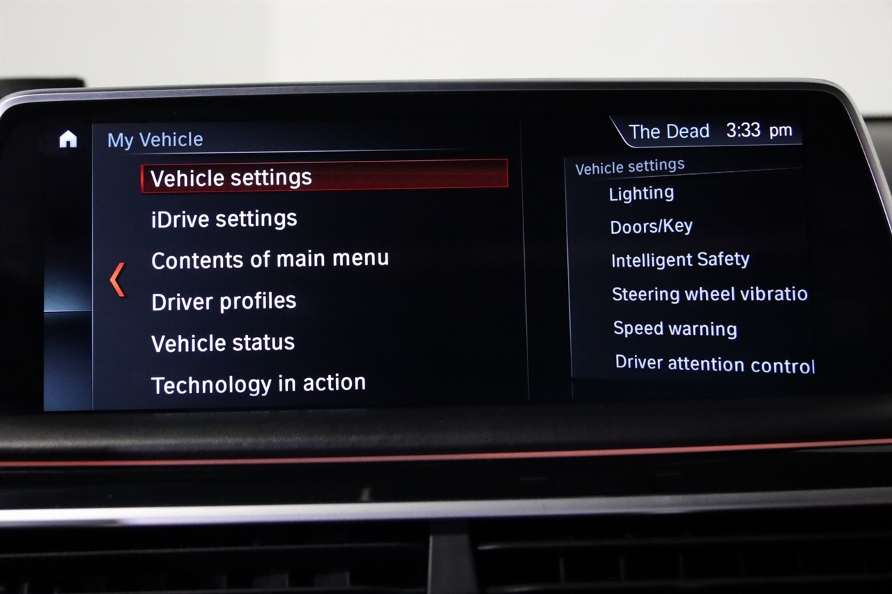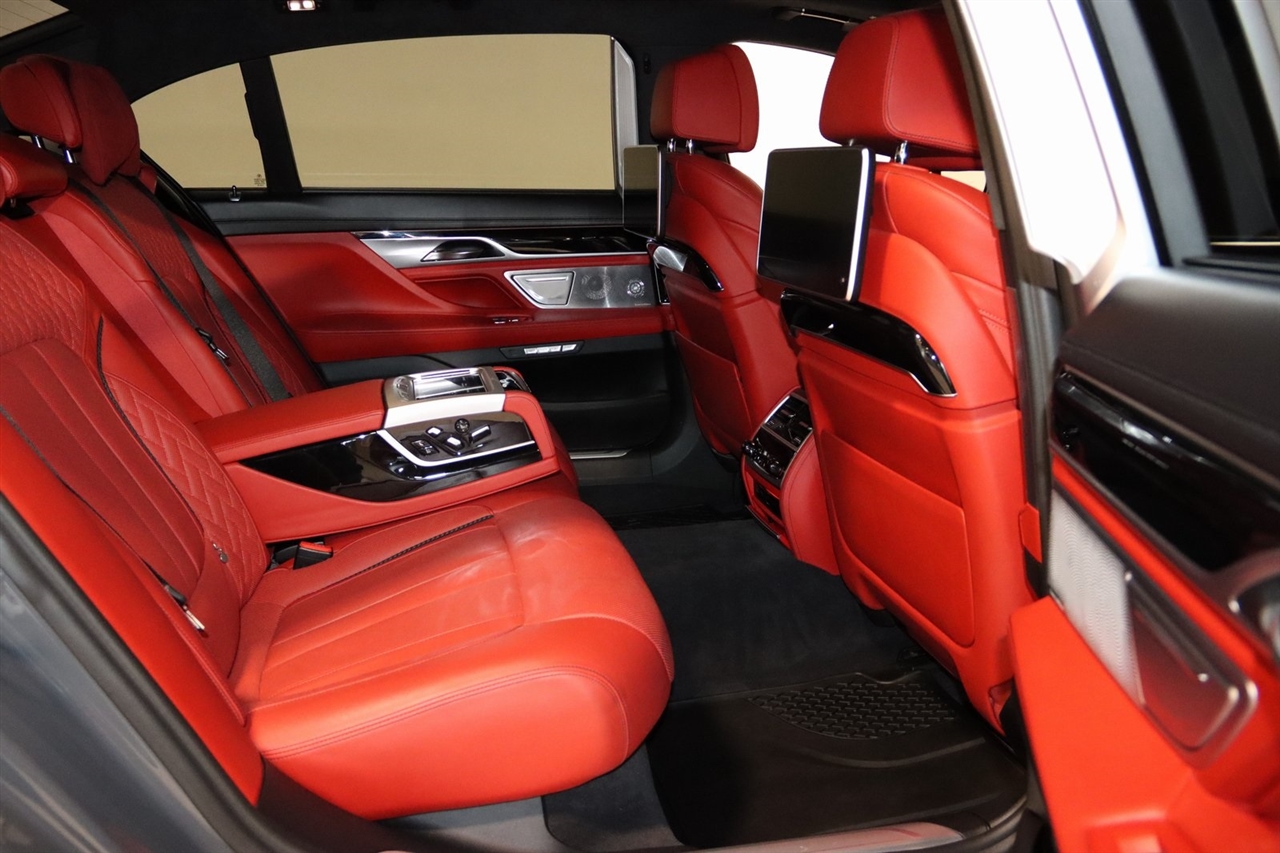 Navigation, Bluetooth, Back Up Camera, Panoramic Roof, Heated Seats, 16 Speakers, 4-Wheel Disc Brakes, ABS brakes, Adaptive suspension, Air Conditioning, Alloy wheels, AM/FM radio, Anti-whiplash front head restraints, Auto High-beam Headlights, Auto tilt-away steering wheel, Auto-dimming door mirrors, Auto-dimming Rear-View mirror, Auto-leveling suspension, Automatic temperature control, Brake assist, Bumpers: body-color, CD player, Delay-off headlights, Door auto-latch, Driver door bin, Driver vanity mirror, Dual front impact airbags, Dual front side impact airbags, Electronic Stability Control, Emergency communication system: BMW Assist eCall, Exterior Parking Camera Rear, Four wheel independent suspension, Front & Rear Heated Seats, Front anti-roll bar, Front Bucket Seats, Front Center Armrest, Front dual zone A/C, Front fog lights, Front Massaging Seats, Front Multi-Contour Seats, Front reading lights, Front Ventilated Seats, Fully automatic headlights, Garage door transmitter, harman/kardon Surround Sound System, harman/kardon® Speakers, Head restraints memory, Heads-Up Display, Heated door mirrors, Heated front seats, Heated rear seats, Heated steering wheel, Illuminated entry, Knee airbag, Leather Shift Knob, Leather steering wheel, Low tire pressure warning, Memory seat, Navigation System, Occupant sensing airbag, Outside temperature display, Overhead airbag, Overhead console, Panic alarm, Passenger door bin, Passenger vanity mirror, Perforated Nappa Leather Upholstery, Power adjustable front head restraints, Power door mirrors, Power driver seat, Power moonroof, Power passenger seat, Power steering, Power windows, Radio data system, Radio: In Dash CD Player, Rain sensing wipers, Rear air conditioning, Rear anti-roll bar, Rear dual zone A/C, Rear reading lights, Rear seat center armrest, Rear Window Blind, Rear window defroster, Remote keyless entry, Security system, SiriusXM Satellite Radio, Speed control, Speed-sensing steering, Speed-Sensitive Wipers, Spoiler, Sport steering wheel, Steering wheel memory, Steering wheel mounted audio controls, Tachometer, Telescoping steering wheel, Tilt steering wheel, Traction control, Trip computer, Variably intermittent wipers, Ventilated front seats, Weather band radio, Wheels: 20" x 8.5" Fr & 20" x 10" Rr.