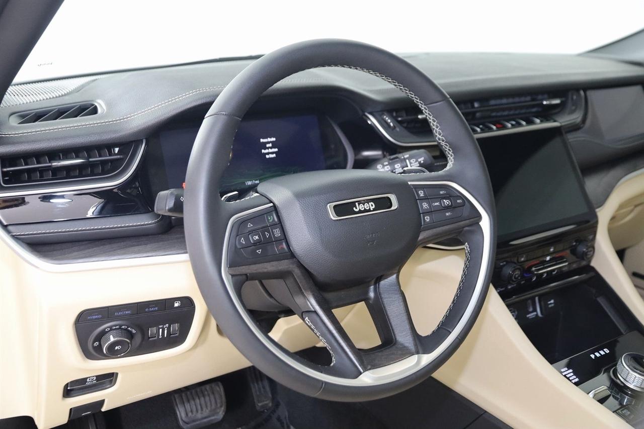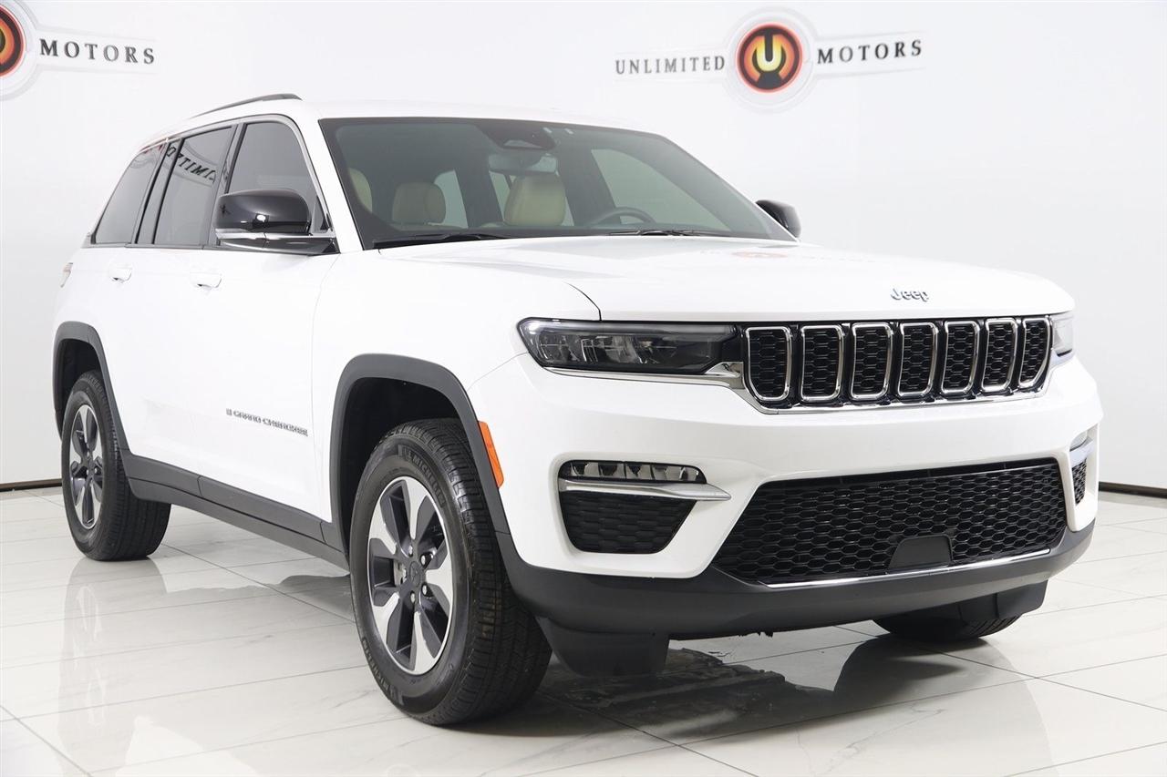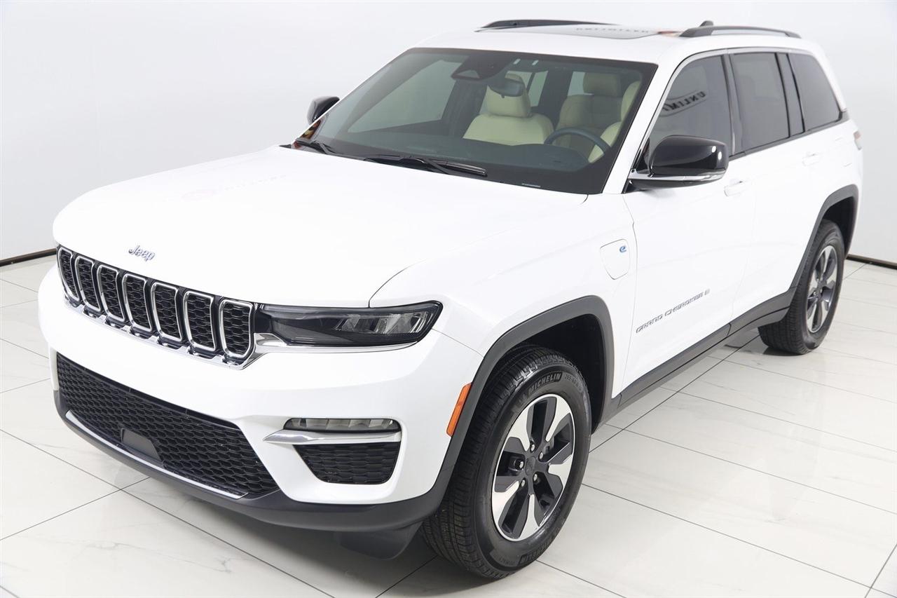 Navigation, Back Up Camera, Bluetooth, Panoramic Roof, Heated Seats, Touch Screen, Heated Steering Wheel, Blind Spot, Apple Play, Grand Cherokee 4xe Base, 4D Sport Utility, 2.0L I4 DOHC, 8-Speed Automatic, 4WD, Bright White Clearcoat, Wicker Beige/Black Artificial Leather, Navigation System, Quick Order Package 27F.