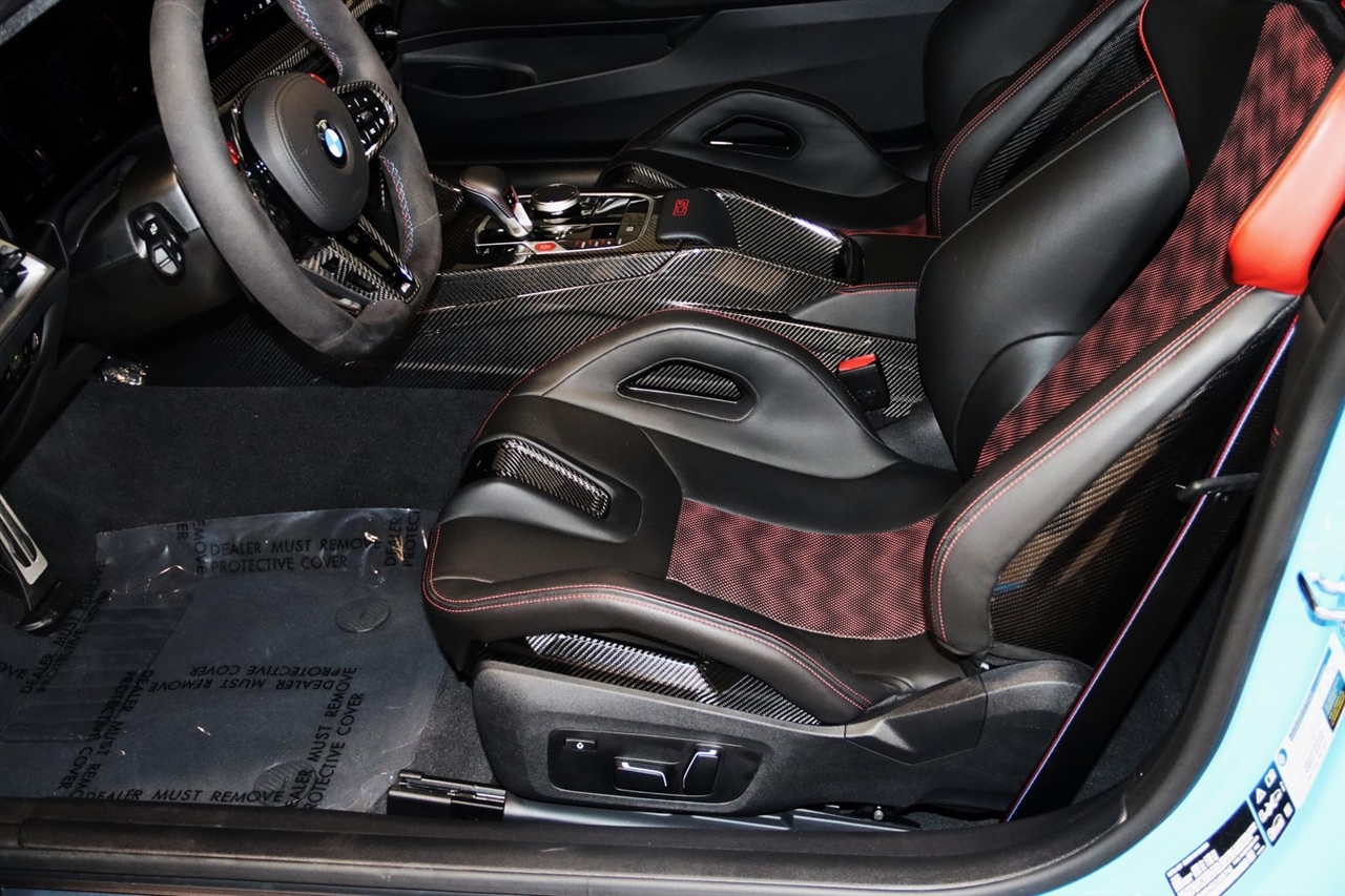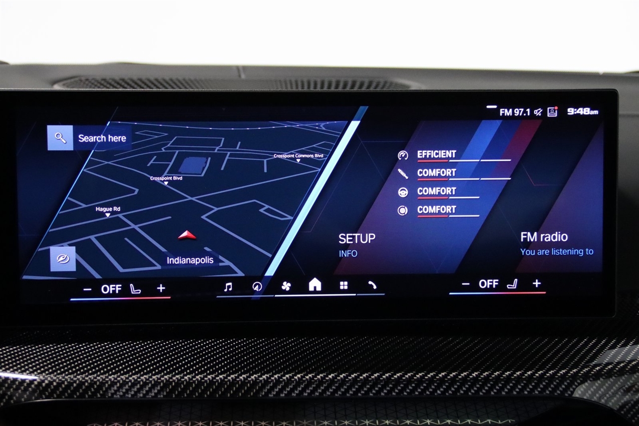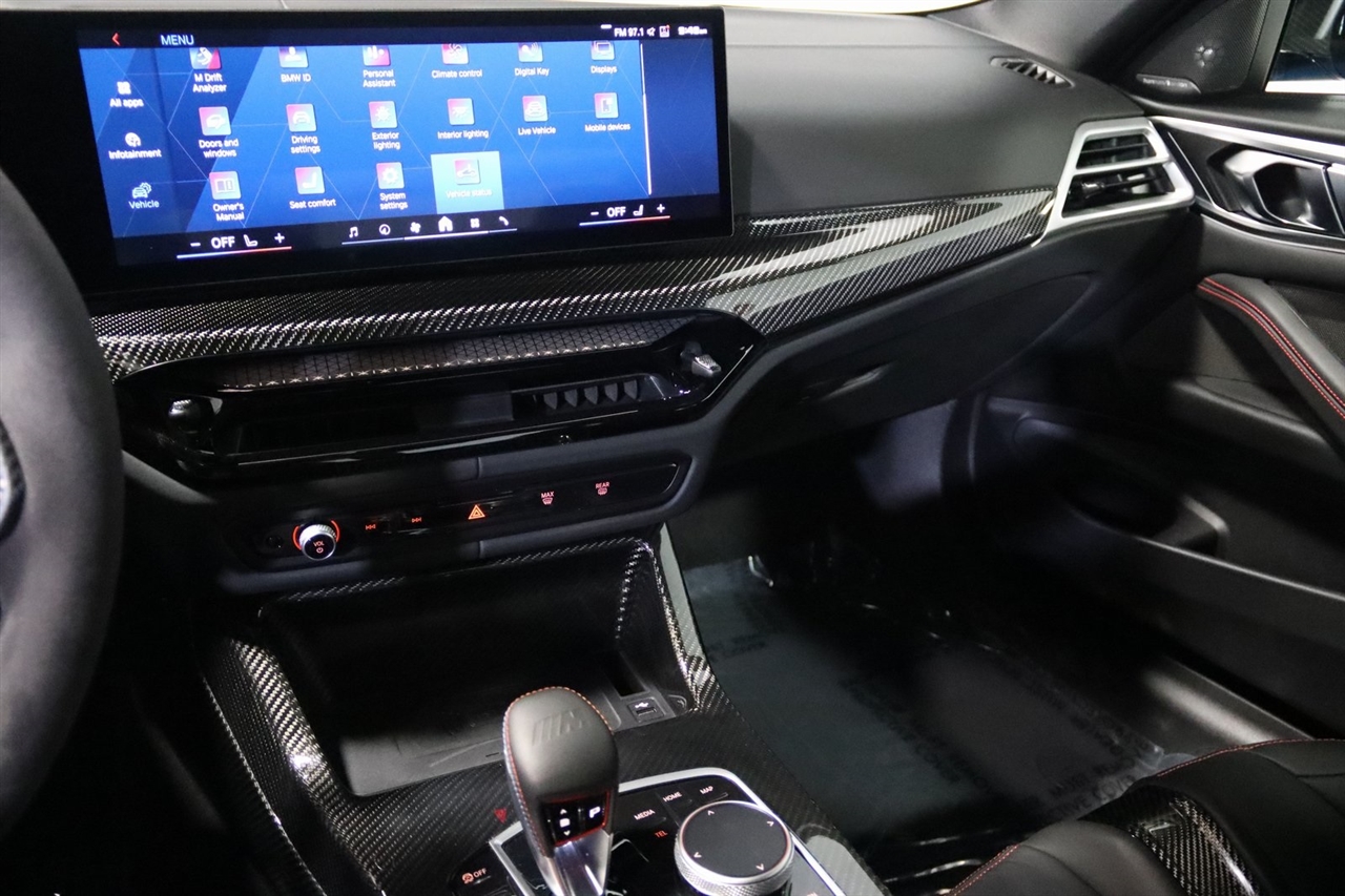 Navigation, Bluetooth, Back Up Camera, Heated Seats, Touch Screen, 16 Speakers, 4-Wheel Disc Brakes, ABS brakes, Adaptive suspension, Air Conditioning, Alloy wheels, AM/FM radio: SiriusXM with 360L, Apple CarPlay & Android Auto Compatibility, Audio memory, Auto High-beam Headlights, Auto-dimming door mirrors, Auto-dimming Rear-View mirror, Automatic temperature control, BMW Assist eCall, BMW TeleServices, Brake assist, Bumpers: body-color, Compass, Connected Package Pro, ConnectedDrive Services, Delay-off headlights, Driver door bin, Driver vanity mirror, Dual front impact airbags, Dual front side impact airbags, Electronic Stability Control, Emergency communication system: BMW Assist eCall, Exterior Parking Camera Rear, Four wheel independent suspension, Front anti-roll bar, Front Bucket Seats, Front Center Armrest, Front dual zone A/C, Front reading lights, Full Merino Leather Upholstery (X3), Fully automatic headlights, Garage door transmitter, harman/kardon Surround Sound System, harman/kardon® Speakers, Heads-Up Display, Heated door mirrors, Heated Front Seats, Heated front seats, HVAC memory, Illuminated entry, Knee airbag, Leather Shift Knob, Low tire pressure warning, M Carbon Bucket Seats, M Compound Brakes w/Black Calipers, Memory seat, Navigation, Navigation System, Occupant sensing airbag, Outside temperature display, Overhead airbag, Overhead console, Panic alarm, Passenger door bin, Passenger vanity mirror, Personal eSIM 5G, Power door mirrors, Power driver seat, Power Front Seats, Power passenger seat, Power steering, Power windows, Radio data system, Radio: AM/FM Audio System, Rain sensing wipers, Rear anti-roll bar, Rear reading lights, Rear seat center armrest, Rear window defroster, Remote keyless entry, Security system, SiriusXM w/360L, Speed control, Speed-sensing steering, Speed-Sensitive Wipers, Split folding rear seat, Spoiler, Sport steering wheel, Steering wheel mounted audio controls, Tachometer, Telescoping steering wheel, Tilt steering wheel, Traction control, Trip computer, Turn signal indicator mirrors, Variably intermittent wipers, Widescreen Display. CARFAX One-Owner.