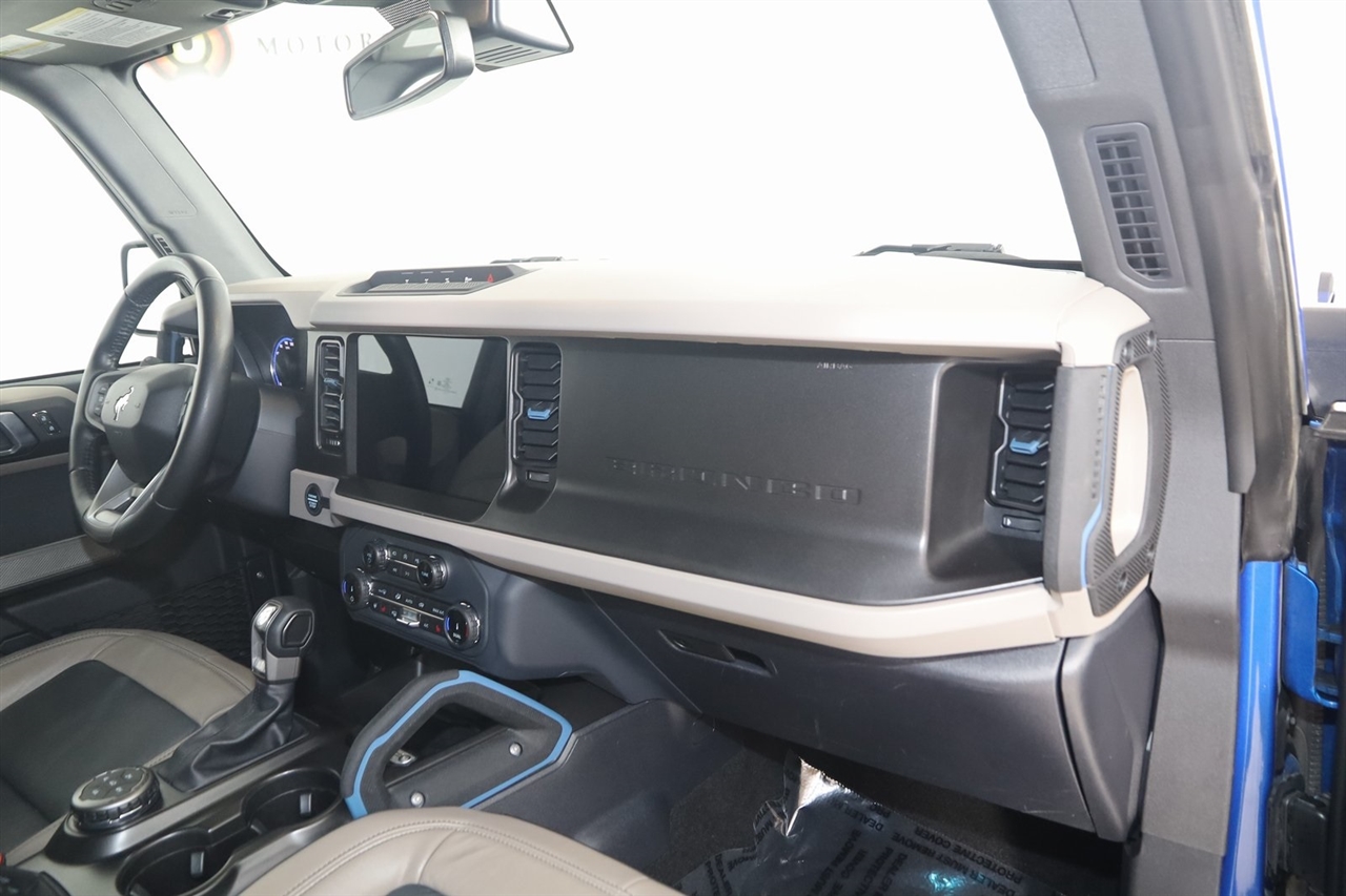 Navigation, Back Up Camera, Bluetooth, Sun/Moon Roof, Heated Seats, Touch Screen, Blind Spot, Heated Steering Wheel, Apple Play, 4D Sport Utility, 2.7L EcoBoost V6, 10-Speed Automatic, 4WD, Velocity Blue Metallic, Navigation System, Navigation system: Connected Navigation. CARFAX One-Owner. Priced below KBB Fair Purchase Price! 2022 Velocity Blue Metallic Ford 4D Sport Utility Bronco 4WD 10-Speed Automatic 2.7L EcoBoost V6 Awards: * NACTOY 2022 North American Utility of the Year Visit our website www.iumotors.com to view 100s of newer vehicles, more pictures and info, or to apply for financing. Rates are incredibly low for approved credit. We offer extended warranties, protection packages, and insurance. We assure you the best experience at any of our 4 locations and unbeatable prices and quality. At Unlimited Motors we believe in "MARKET VALUE PRICING’’. We use real-time Internet price comparisons to constantly adjust prices to provide ALL BUYERS The BEST PRICE possible. We do not mark them up, to mark them down! Our entire team is committed to helping you buy a car the way we would want to buy a car! We utilize state-of-the-art technology to constantly monitor pricing trends to offer our shoppers the best competitive pricing, value, and experience. We sell and service all makes and models of Pre-owned / Used Vehicles Used Cars, Used Trucks, Used Sport Utility, Lamborghini, Ferrari, Bentley, Rolls Royce, McLaren, Maserati, Ford, Chevrolet/Chevy, Honda, Toyota, Porsche, Land Rover, Jaguar, INFINITI, Audi, Nissan, Mazda, Hyundai, Chrysler, Jeep, Dodge, Ram, SRT, Mitsubishi, Lexus, Kia, Volkswagen, Mini, BMW, Mercedes, Fiat, Volvo, GMC, Cadillac, Lincoln as well as other brands. Proudly serving these areas of Indianapolis, Fishers, Carmel, Noblesville, Greenwood, Avon, Plainfield, Zionsville, & Brownsburg, Indiana, Midwest. We also serve the entire nation with our seamless and easy online purchasing process, and offer shipping nationwide. Advertised prices DO NOT include Sales Tax, Dealer Fees, Title Processing Charges, and Dealer Pre-installed Products.