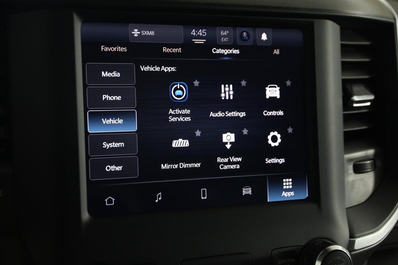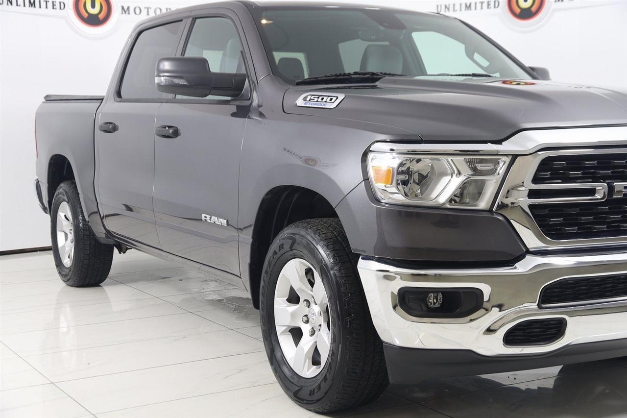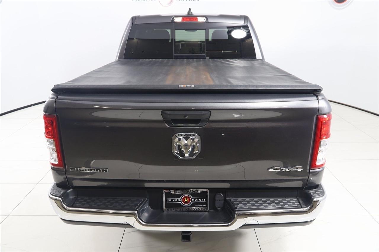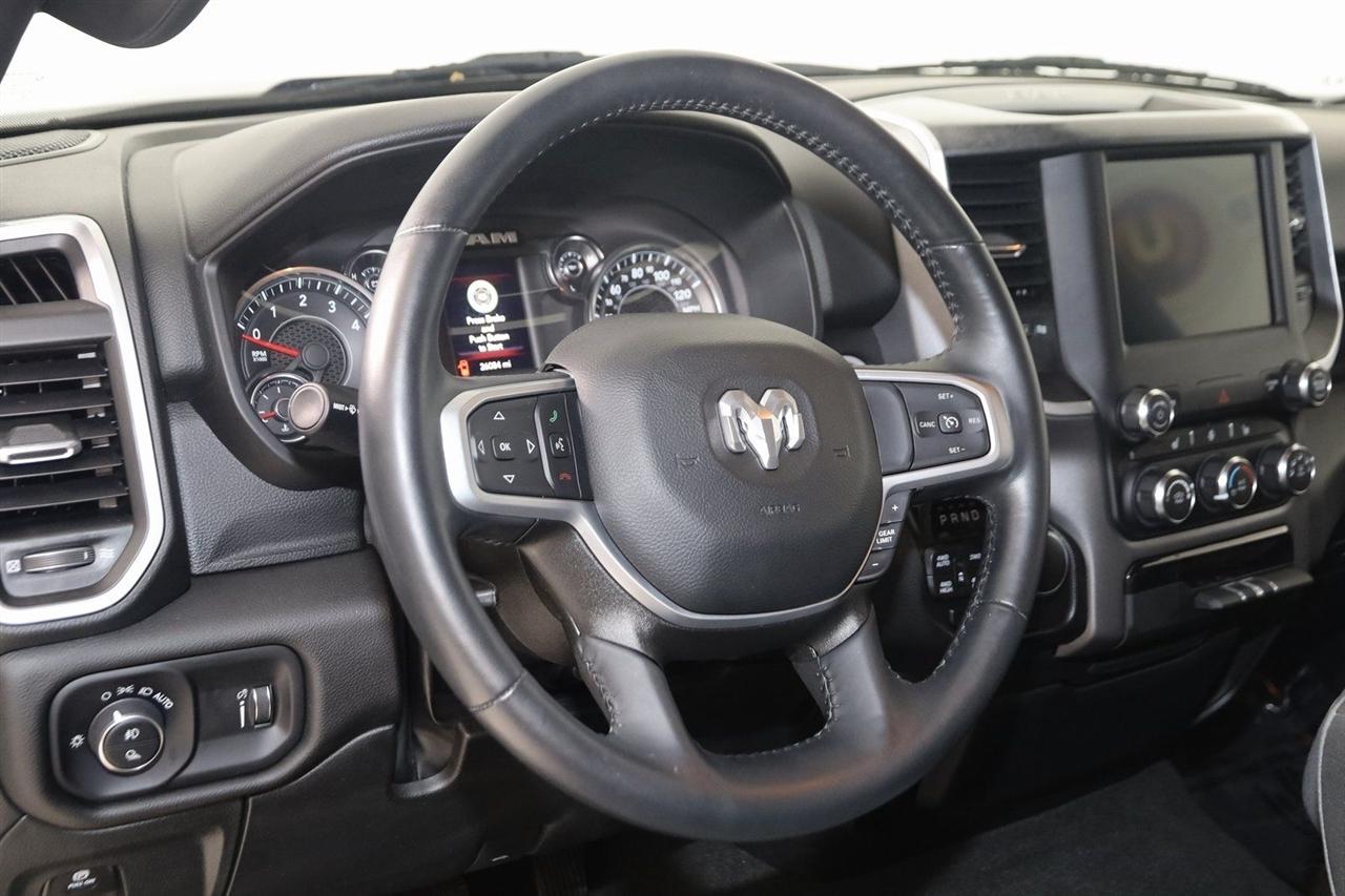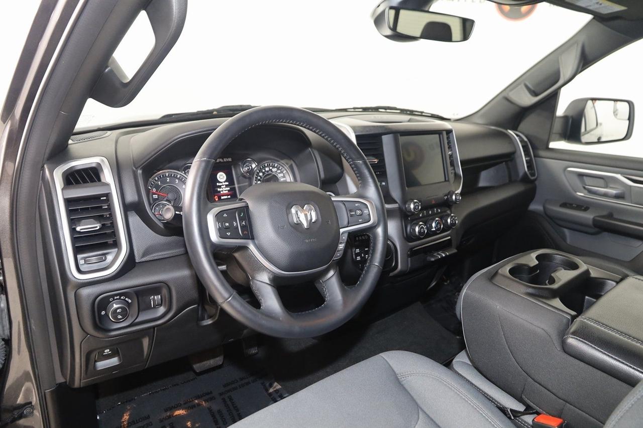 Back Up Camera, Bluetooth, Heated Seats, Winch, Touch Screen, 1500 Big Horn/Lone Star, 4D Crew Cab, 3.6L V6 24V VVT, 8-Speed Automatic, 4WD, Granite Crystal Metallic Clearcoat, Black Cloth, 2nd Row In Floor Storage Bins, 4G LTE Wi-Fi Hot Spot, 8.4" Touchscreen Display, Apple CarPlay, Auto-Dimming Exterior Driver Mirror, Auto-Dimming Rear-View Mirror, Big Horn Badge, Big Horn Level 1 Equipment Group, Black Exterior Mirrors, Black Premium Power Mirrors, Bluetooth Handsfree Phone & Audio, Class IV Receiver Hitch, Connectivity - US/Canada, Convex Wide-Angle Exterior Mirror Insert, Electric Shift-On-Demand Transfer Case, Exterior Mirrors Courtesy Lamps, Exterior Mirrors w/Heating Element, Exterior Mirrors w/Supplemental Signals, For Details, Visit DriveUconnect.com, For More Info, Call 800-643-2112, Front Fog Lamps, Glove Box Lamp, Google Android Auto, GPS Antenna Input, Heated Front Seats, Heated Steering Wheel, Integrated Center Stack Radio, Passenger Sun Visor w/Illuminated Mirror, Power-Folding Mirrors, Quick Order Package 23Z Big Horn, Radio: Uconnect 5 W w/8.4" Display, Rear Dome w/On/Off Switch Lamp, Rear Power Sliding Window, Rear Window Defroster, SiriusXM Satellite Radio, USB Host Flip.