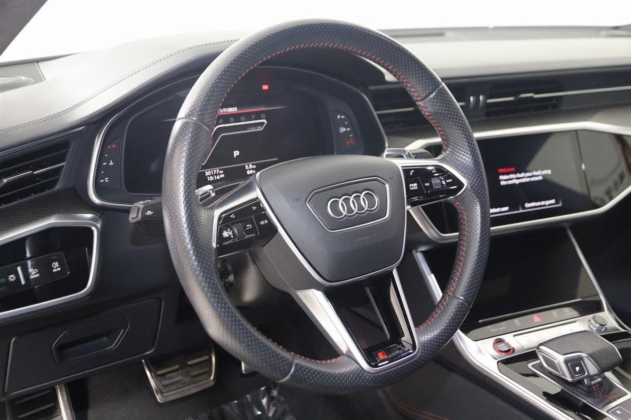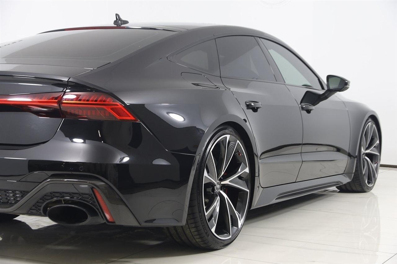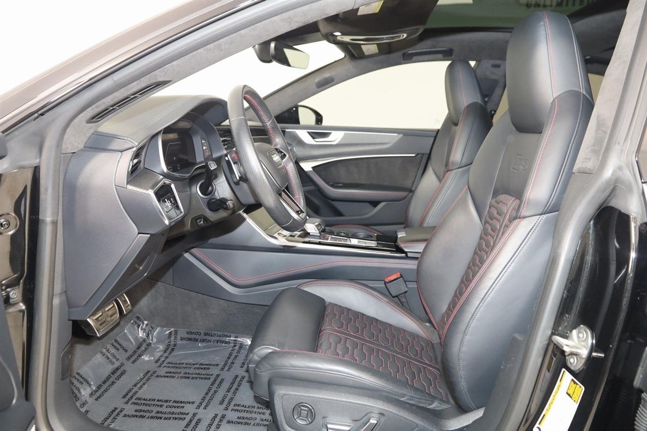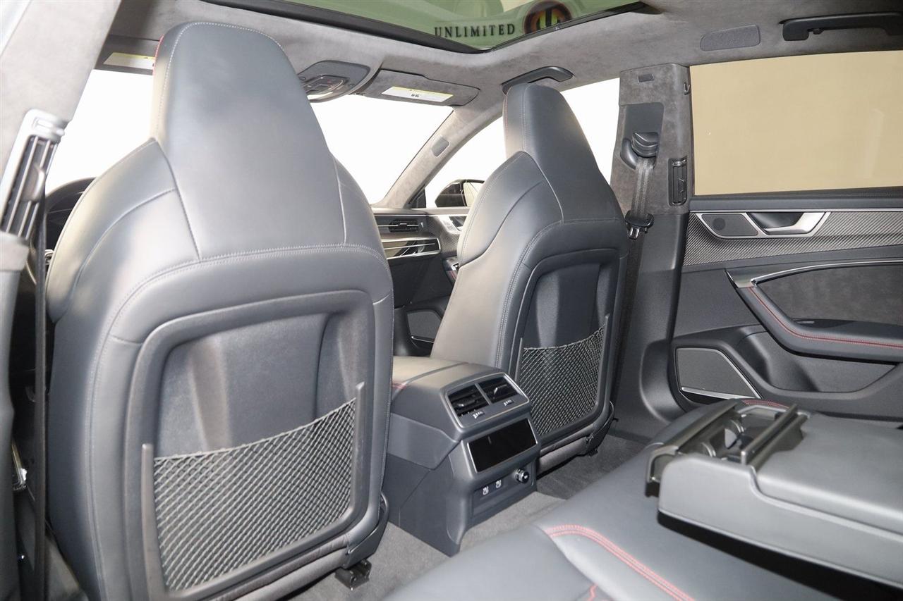 Navigation, Back Up Camera, Bluetooth, Sun/Moon Roof, Heated Seats, Touch Screen, Heated Steering Wheel, Blind Spot, Cooled Heats, Apple Play, RS 7 4.0T quattro, 4D Hatchback, 4.0L V8 Turbocharged DOHC 32V LEV3-ULEV125 591hp, 8-Speed Automatic with Tiptronic, quattro, Mythos Black Metallic, Black Leather, Audi Active Lane Departure Warning, Audi Adaptive Cruise Assist w/Traffic Jam Assist, Audi Pre Sense Rear, Audi Side Assist w/Rear Cross Traffic Assist, Black Optic Exterior Pkg, Carbon Exterior Mirror Housings, Carbon Optic Exterior Package, Carbon Optic Package, Driver Assistance Package, Extended Leather Package, Head-Up Display, Heated Rear Seats, Intersection Assist, Navigation System, Navigation system: MMI Navigation plus, Power Soft-Closing Doors, RS 7 Executive Package, Traffic Sign Recognition, Wheels: 22" 5-V-Spoke Structured Design Black.