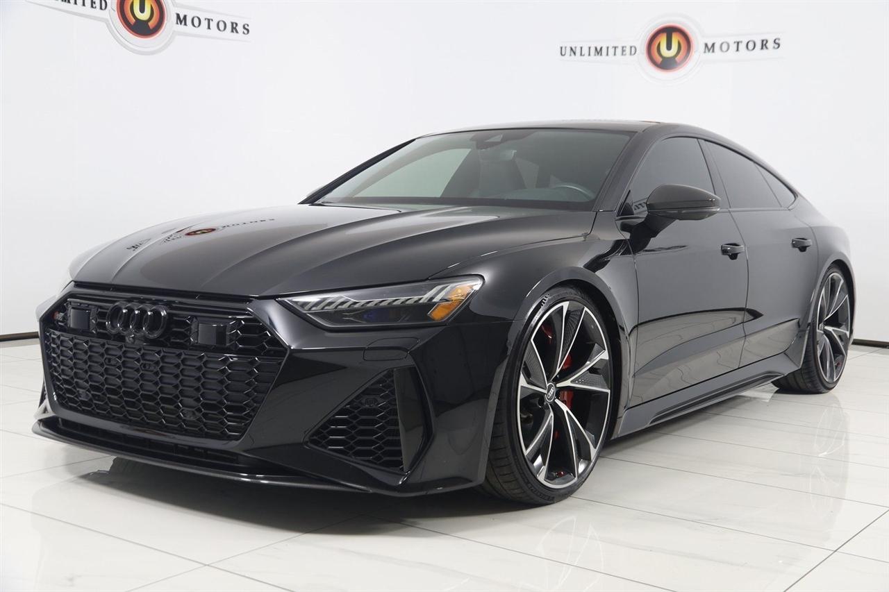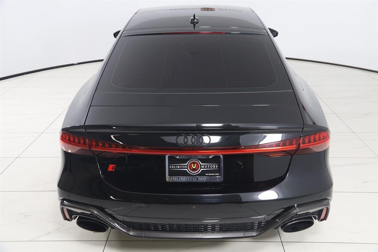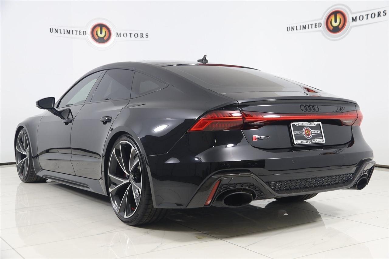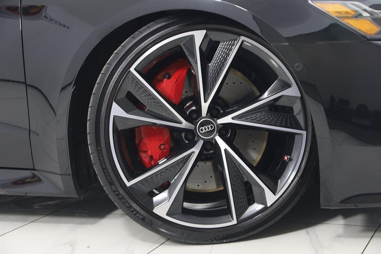 Navigation, Back Up Camera, Bluetooth, Sun/Moon Roof, Heated Seats, Touch Screen, Heated Steering Wheel, Blind Spot, Cooled Heats, Apple Play, RS 7 4.0T quattro, 4D Hatchback, 4.0L V8 Turbocharged DOHC 32V LEV3-ULEV125 591hp, 8-Speed Automatic with Tiptronic, quattro, Mythos Black Metallic, Black Leather, Audi Active Lane Departure Warning, Audi Adaptive Cruise Assist w/Traffic Jam Assist, Audi Pre Sense Rear, Audi Side Assist w/Rear Cross Traffic Assist, Black Optic Exterior Pkg, Carbon Exterior Mirror Housings, Carbon Optic Exterior Package, Carbon Optic Package, Driver Assistance Package, Extended Leather Package, Head-Up Display, Heated Rear Seats, Intersection Assist, Navigation System, Navigation system: MMI Navigation plus, Power Soft-Closing Doors, RS 7 Executive Package, Traffic Sign Recognition, Wheels: 22" 5-V-Spoke Structured Design Black.