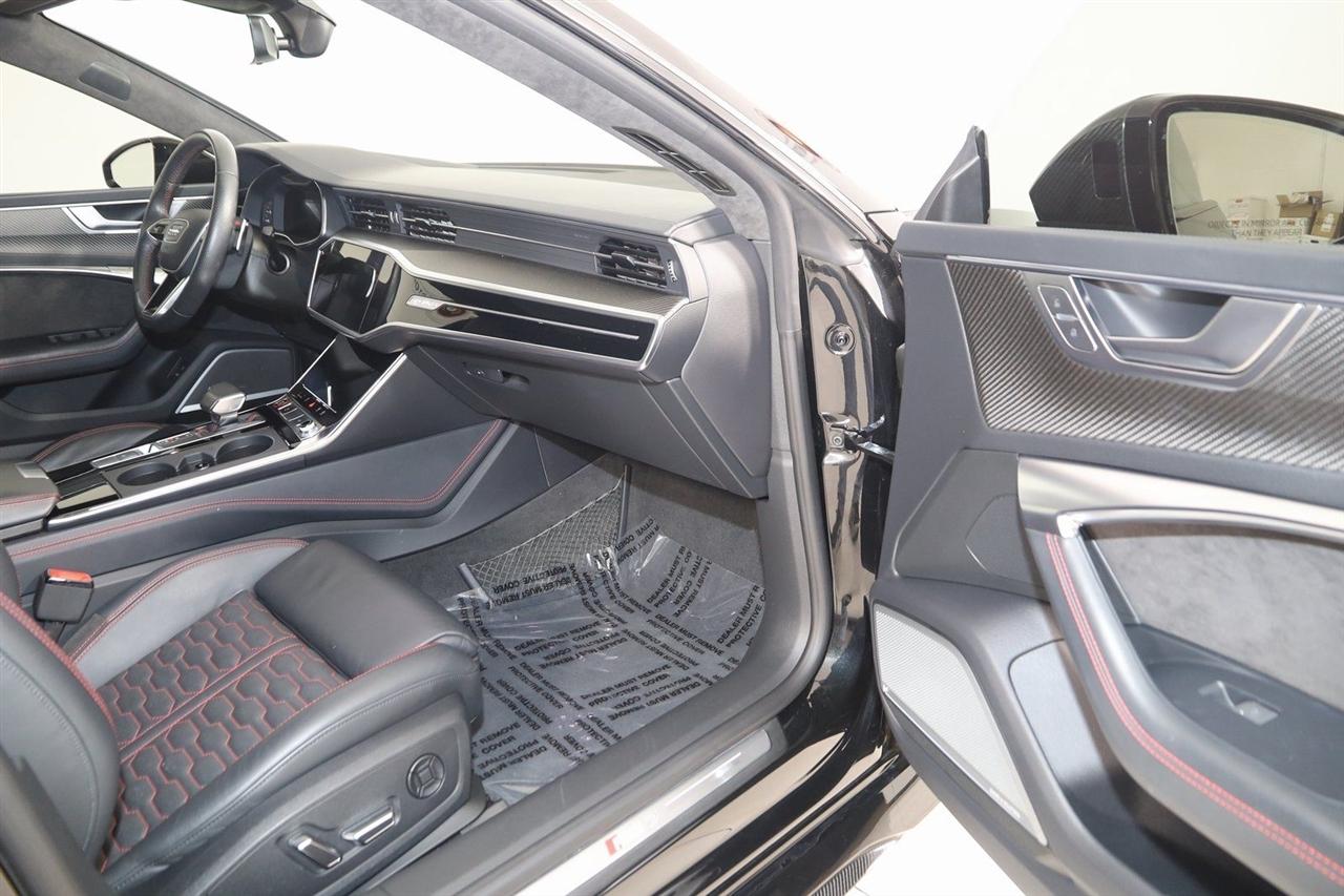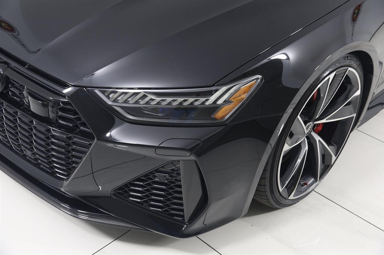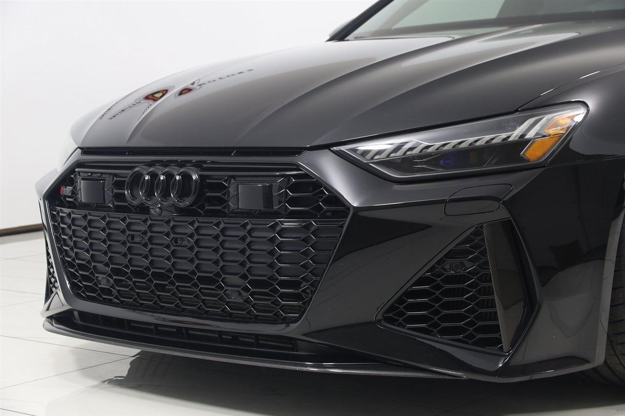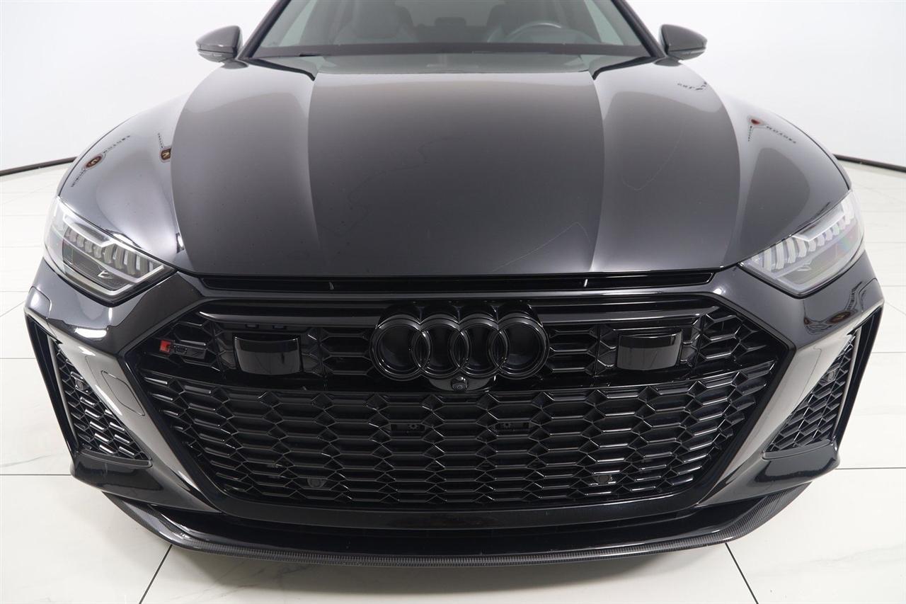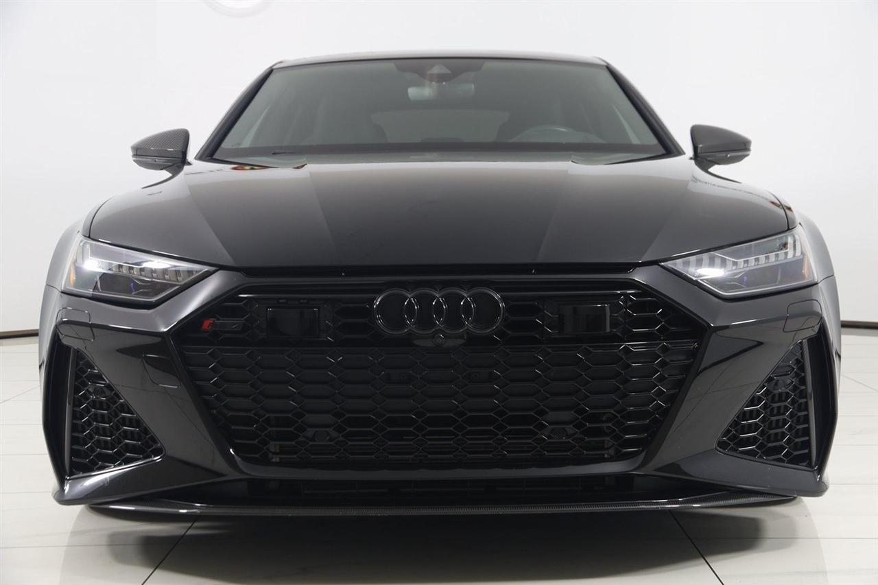 Navigation, Back Up Camera, Bluetooth, Sun/Moon Roof, Heated Seats, Touch Screen, Heated Steering Wheel, Blind Spot, Cooled Heats, Apple Play, RS 7 4.0T quattro, 4D Hatchback, 4.0L V8 Turbocharged DOHC 32V LEV3-ULEV125 591hp, 8-Speed Automatic with Tiptronic, quattro, Mythos Black Metallic, Black Leather, Audi Active Lane Departure Warning, Audi Adaptive Cruise Assist w/Traffic Jam Assist, Audi Pre Sense Rear, Audi Side Assist w/Rear Cross Traffic Assist, Black Optic Exterior Pkg, Carbon Exterior Mirror Housings, Carbon Optic Exterior Package, Carbon Optic Package, Driver Assistance Package, Extended Leather Package, Head-Up Display, Heated Rear Seats, Intersection Assist, Navigation System, Navigation system: MMI Navigation plus, Power Soft-Closing Doors, RS 7 Executive Package, Traffic Sign Recognition, Wheels: 22" 5-V-Spoke Structured Design Black.