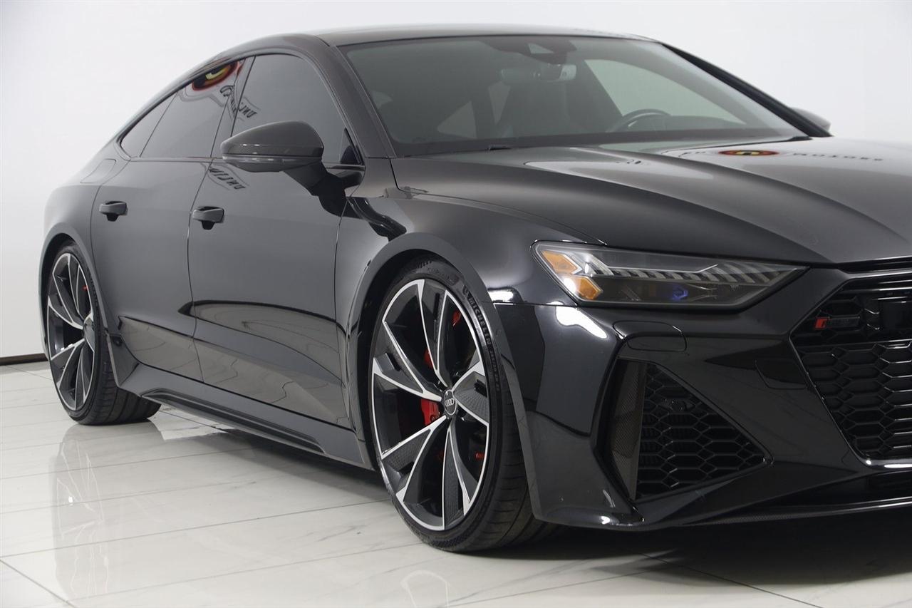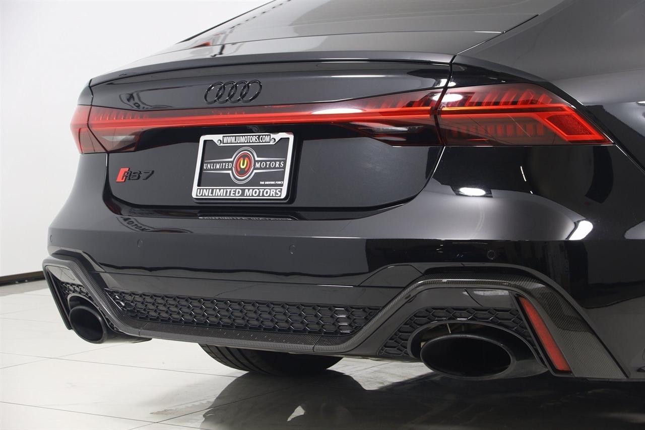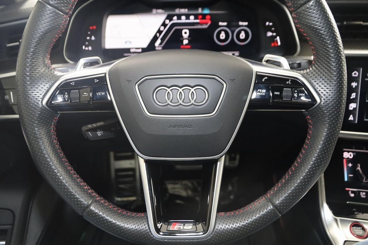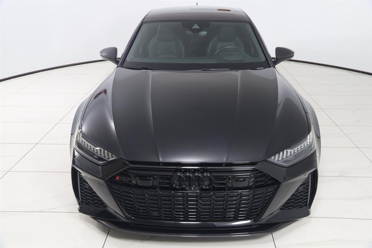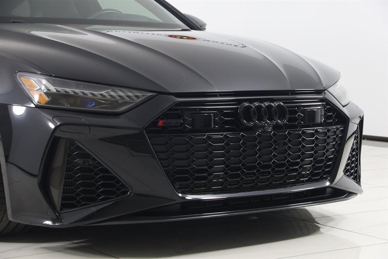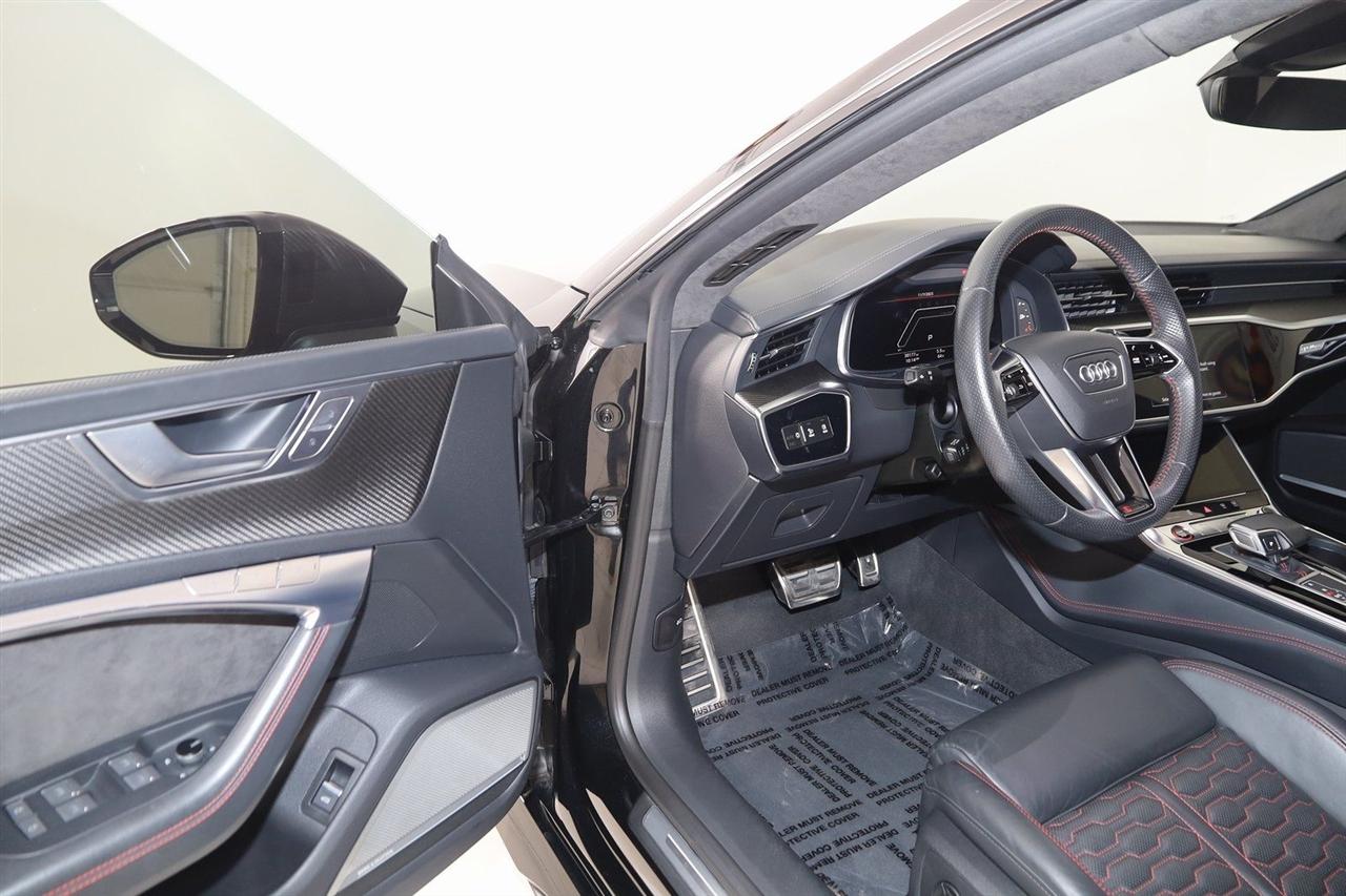 Navigation, Back Up Camera, Bluetooth, Sun/Moon Roof, Heated Seats, Touch Screen, Heated Steering Wheel, Blind Spot, Cooled Heats, Apple Play, RS 7 4.0T quattro, 4D Hatchback, 4.0L V8 Turbocharged DOHC 32V LEV3-ULEV125 591hp, 8-Speed Automatic with Tiptronic, quattro, Mythos Black Metallic, Black Leather, Audi Active Lane Departure Warning, Audi Adaptive Cruise Assist w/Traffic Jam Assist, Audi Pre Sense Rear, Audi Side Assist w/Rear Cross Traffic Assist, Black Optic Exterior Pkg, Carbon Exterior Mirror Housings, Carbon Optic Exterior Package, Carbon Optic Package, Driver Assistance Package, Extended Leather Package, Head-Up Display, Heated Rear Seats, Intersection Assist, Navigation System, Navigation system: MMI Navigation plus, Power Soft-Closing Doors, RS 7 Executive Package, Traffic Sign Recognition, Wheels: 22" 5-V-Spoke Structured Design Black.