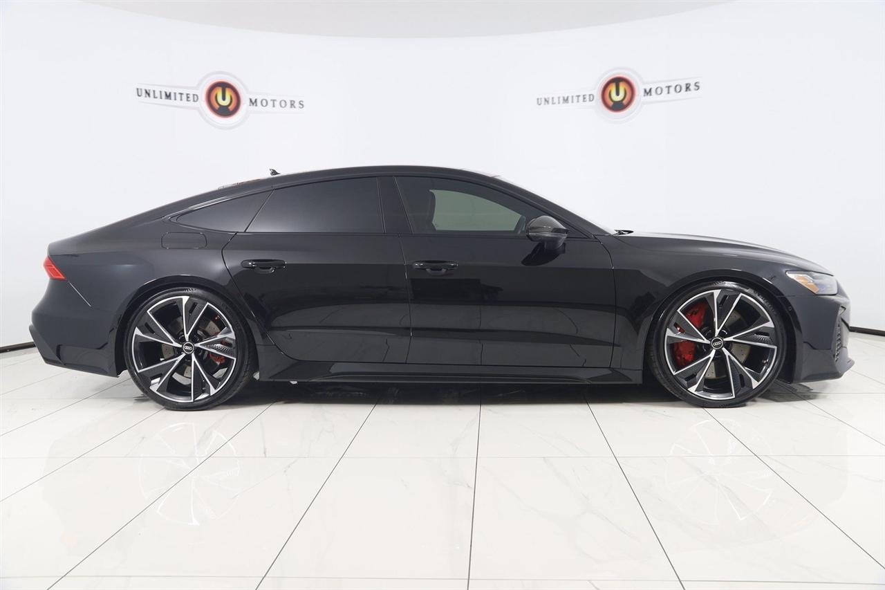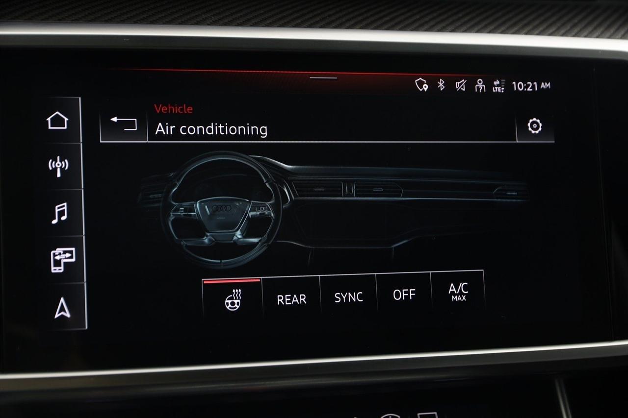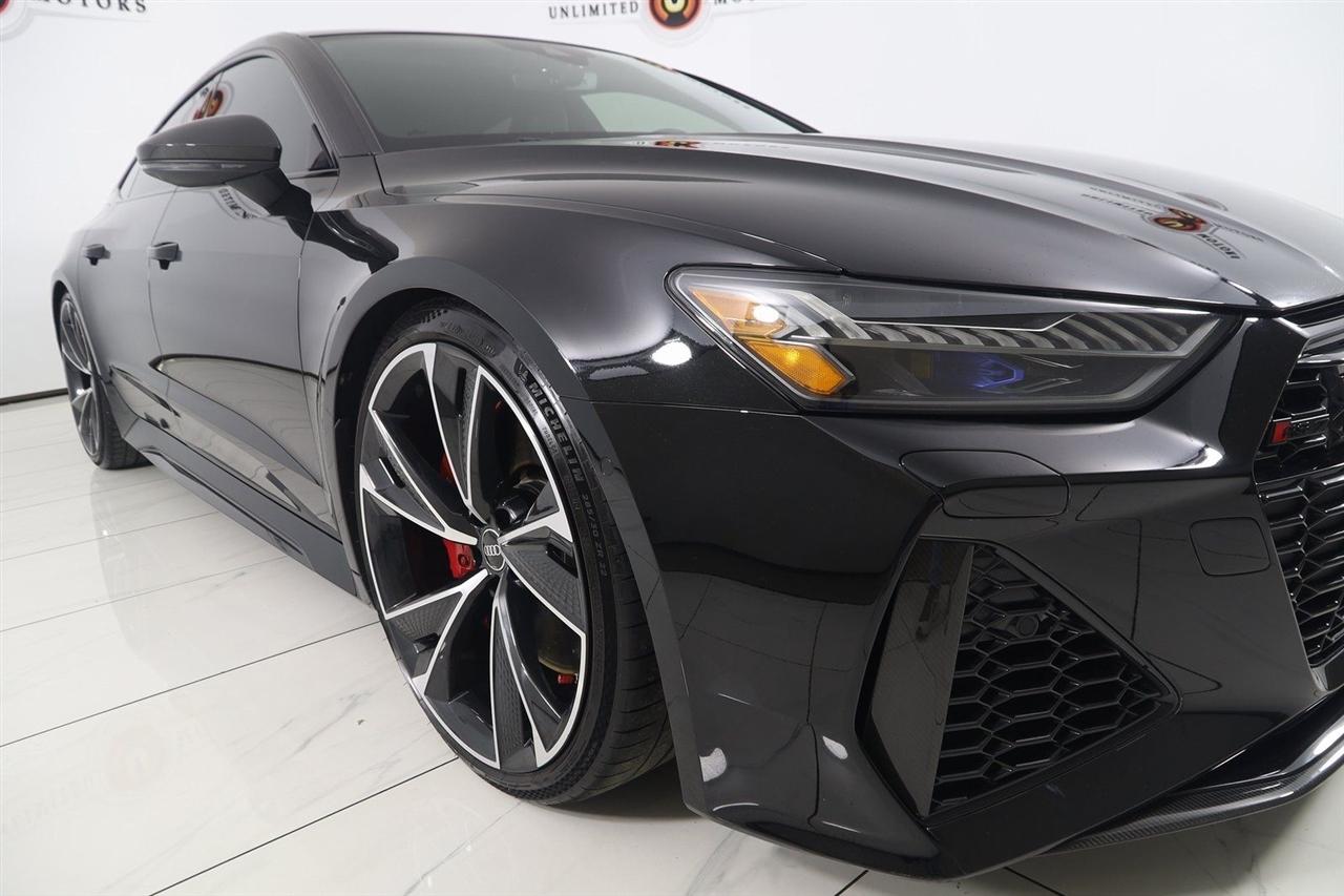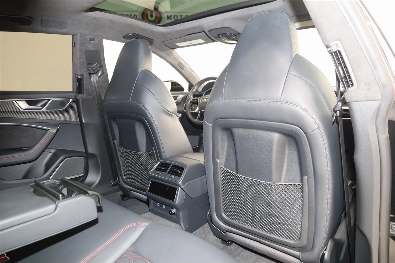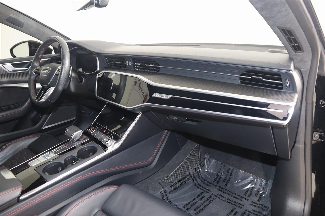 Navigation, Back Up Camera, Bluetooth, Sun/Moon Roof, Heated Seats, Touch Screen, Heated Steering Wheel, Blind Spot, Cooled Heats, Apple Play, RS 7 4.0T quattro, 4D Hatchback, 4.0L V8 Turbocharged DOHC 32V LEV3-ULEV125 591hp, 8-Speed Automatic with Tiptronic, quattro, Mythos Black Metallic, Black Leather, Audi Active Lane Departure Warning, Audi Adaptive Cruise Assist w/Traffic Jam Assist, Audi Pre Sense Rear, Audi Side Assist w/Rear Cross Traffic Assist, Black Optic Exterior Pkg, Carbon Exterior Mirror Housings, Carbon Optic Exterior Package, Carbon Optic Package, Driver Assistance Package, Extended Leather Package, Head-Up Display, Heated Rear Seats, Intersection Assist, Navigation System, Navigation system: MMI Navigation plus, Power Soft-Closing Doors, RS 7 Executive Package, Traffic Sign Recognition, Wheels: 22" 5-V-Spoke Structured Design Black.