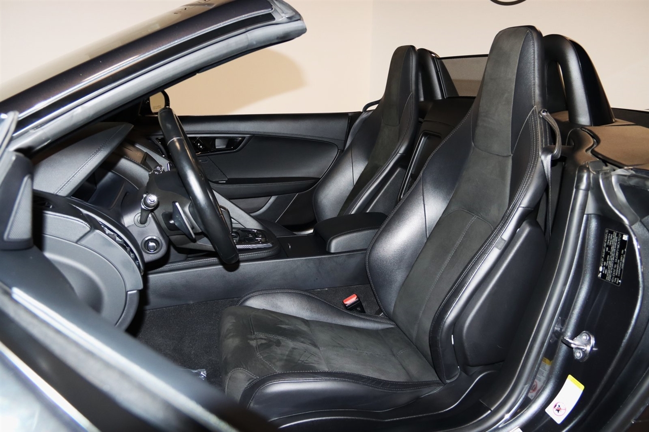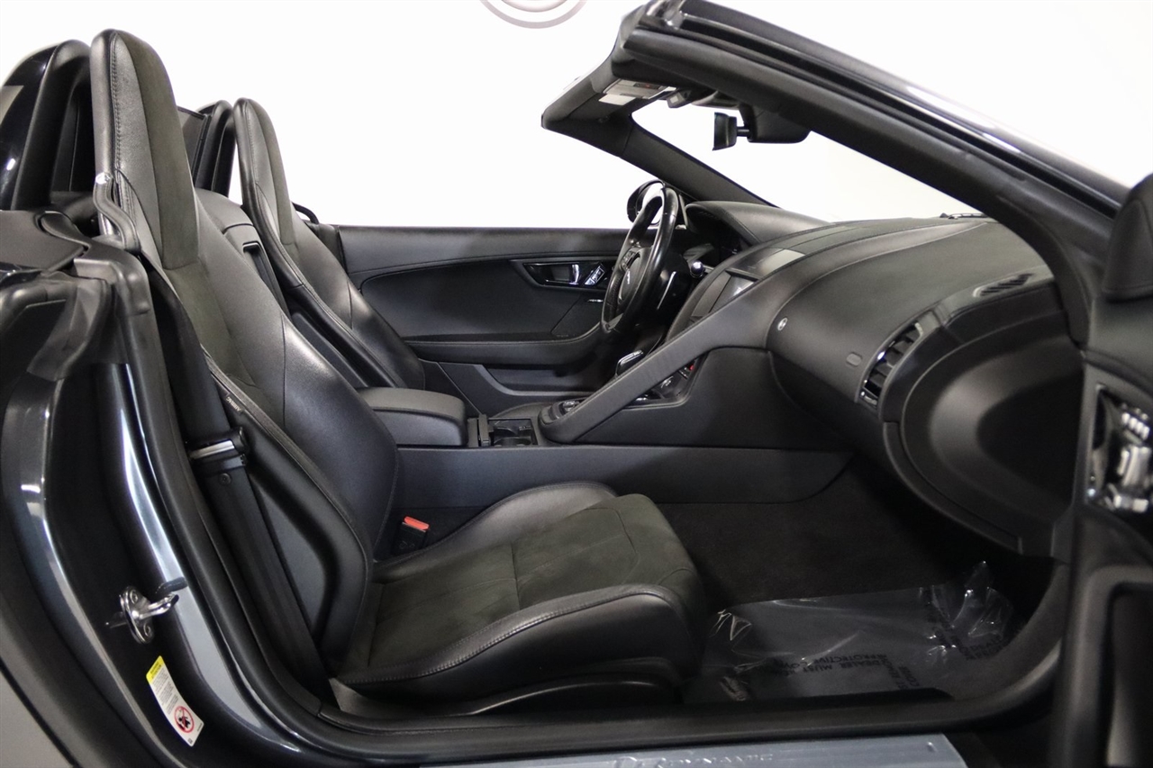 Navigation, Bluetooth, Back Up Camera, Soft Top, Heated Seats, Touch Screen, 10 Speakers, 4-Wheel Disc Brakes, ABS brakes, Adaptive suspension, Alloy wheels, AM/FM radio: SiriusXM, Apple CarPlay/Android Auto, Auto High-beam Headlights, Auto tilt-away steering wheel, Auto-dimming door mirrors, Auto-dimming Rear-View mirror, Automatic temperature control, Black Exterior Pack, Block heater, Body Colored Rear Bumper w/Venturi Blade, Body-Colored Front Splitter, Body-Colored Side Sills, Brake assist, Bumpers: body-color, Convertible roof lining, Delay-off headlights, Driver door bin, Driver vanity mirror, Dual front impact airbags, Dual front side impact airbags, Electronic Stability Control, Emergency communication system: Remote SOS Emergency Call, Exterior Black Design Pack, Exterior Parking Camera Rear, Four wheel independent suspension, Front anti-roll bar, Front Bucket Seats, Front Center Armrest, Front reading lights, Fully automatic headlights, Glass rear window, Gloss Black Exterior Badges, Gloss Black Fender Vents, Gloss Black Grille Surround, Gloss Black Rollover Protection Bars, Grained Leather & Suedecloth Seating Surfaces, Heated door mirrors, Illuminated entry, Integrated roll-over protection, Leather Shift Knob, Low tire pressure warning, Memory seat, Navigation System, Navigation system: InControl Touch Pro, Occupant sensing airbag, Outside temperature display, Overhead console, Panic alarm, Passenger door bin, Passenger vanity mirror, Power convertible roof, Power door mirrors, Power driver seat, Power passenger seat, Power steering, Power windows, Radio data system, Radio: Meridian 380W Audio System, Rain sensing wipers, Rear anti-roll bar, Rear window defroster, Remote keyless entry, Security system, Speed control, Speed-sensing steering, Spoiler, Sport 12-Way Electric Front Seats w/Memory, Steering wheel memory, Steering wheel mounted audio controls, Tachometer, Telescoping steering wheel, Tilt steering wheel, Traction control, Trip computer, Turn signal indicator mirrors, Variably intermittent wipers, Wheels: 20" 6 Split-Spoke Style 6003. Clean CARFAX. 18/26 City/Highway MPG
