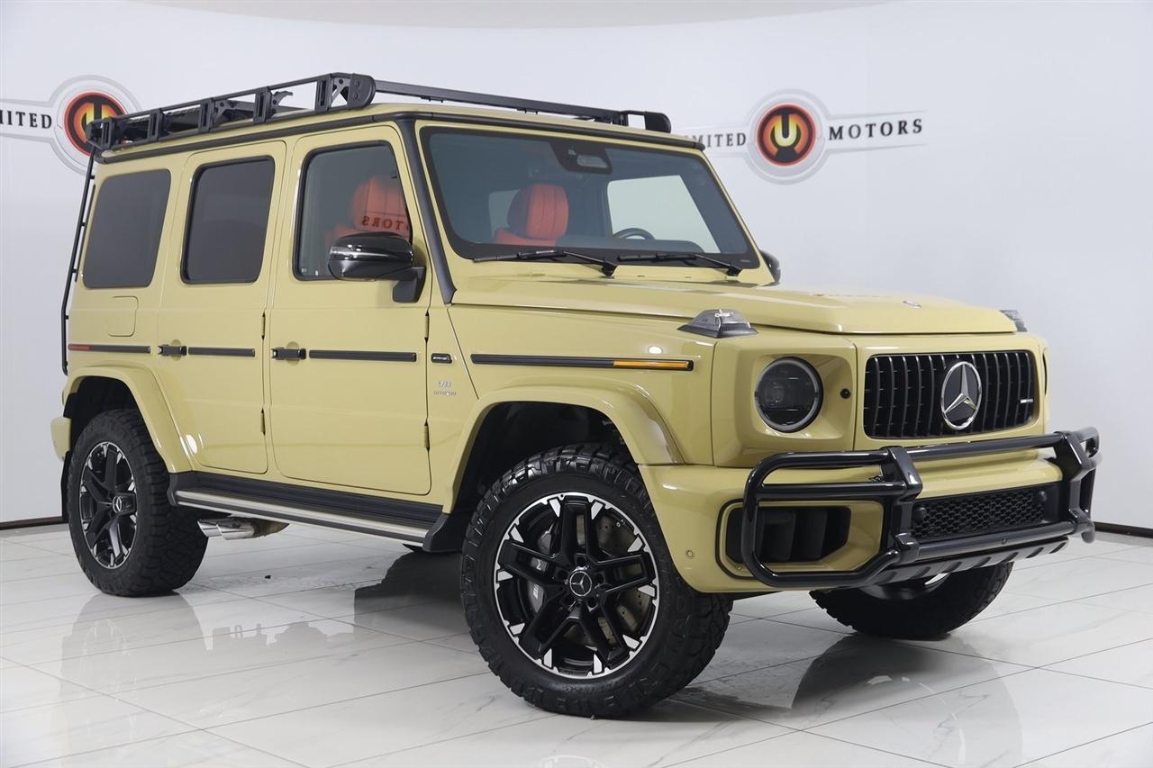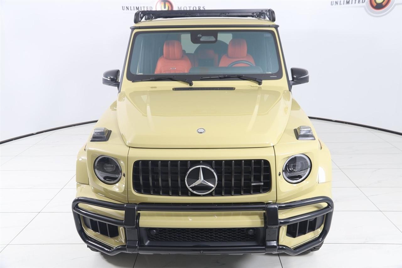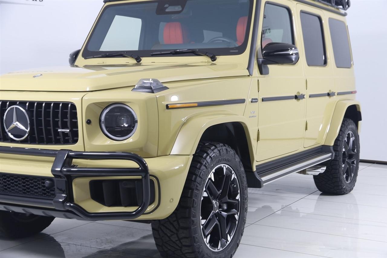 Navigation, Back Up Camera, Bluetooth, Sun/Moon Roof, Running Boards, Heated Seats, Touch Screen, Heated Steering Wheel, Blind Spot, Vented Seats, Cooled Heats, Apple Play, Massage Seats, G 63 AMG® 4MATIC®, 4D Sport Utility, V8, 9-Speed Automatic, 4MATIC®, MANUFAKTUR Desert Sand, Bengal Red Leather, AMG® ACTIVE RIDE CONTROL Suspension, AMG® Night Package, AMG® Night Package (P56), AMG® Offroad Package PRO, AMG® Offroad Package PRO (TP2), MANUFAKTUR Interior Package Plus, MANUFAKTUR Interior Package Plus (P77), Navigation System, Navigation system: MBUX, PROFESSIONAL Roof Rack, Rear Mudflaps, Rubber Mat Set, Seat Comfort Package, Wheels: 20" AMG® Matte Black Twin 5-Spoke.