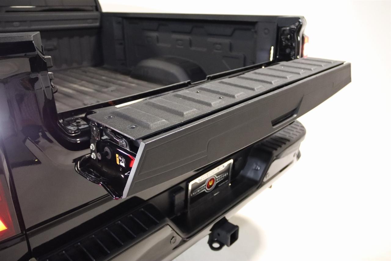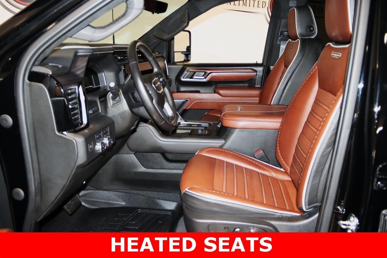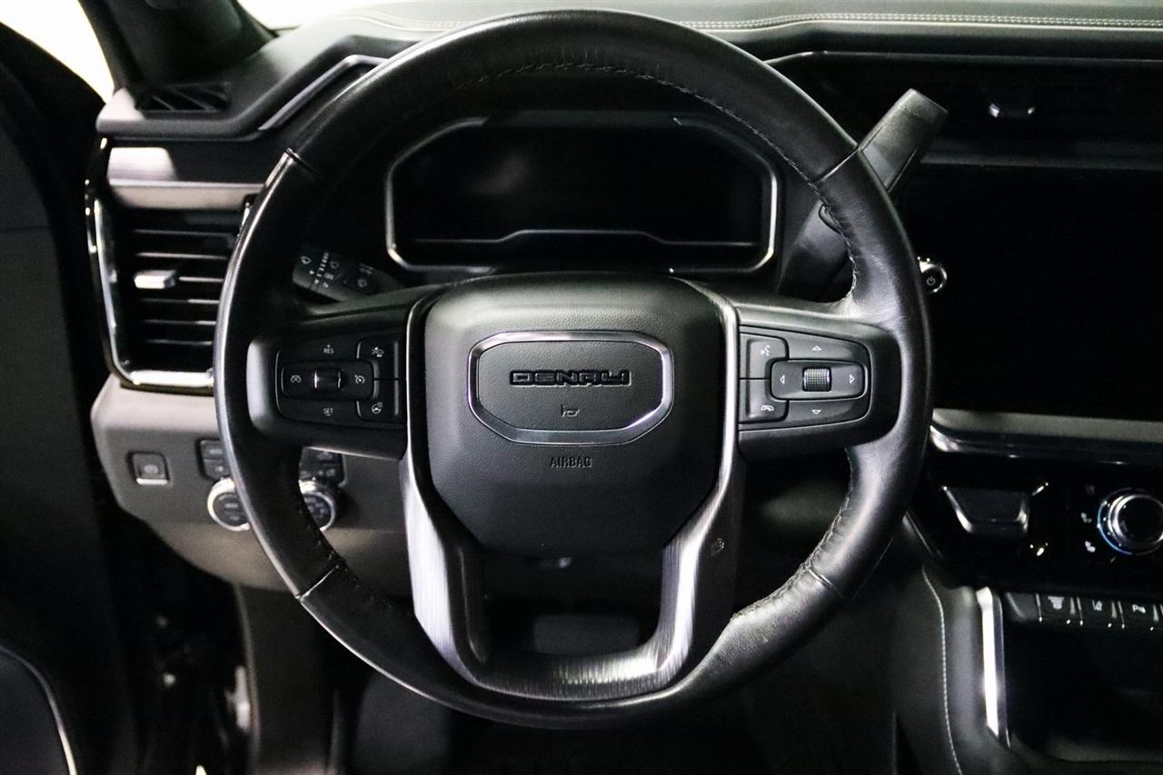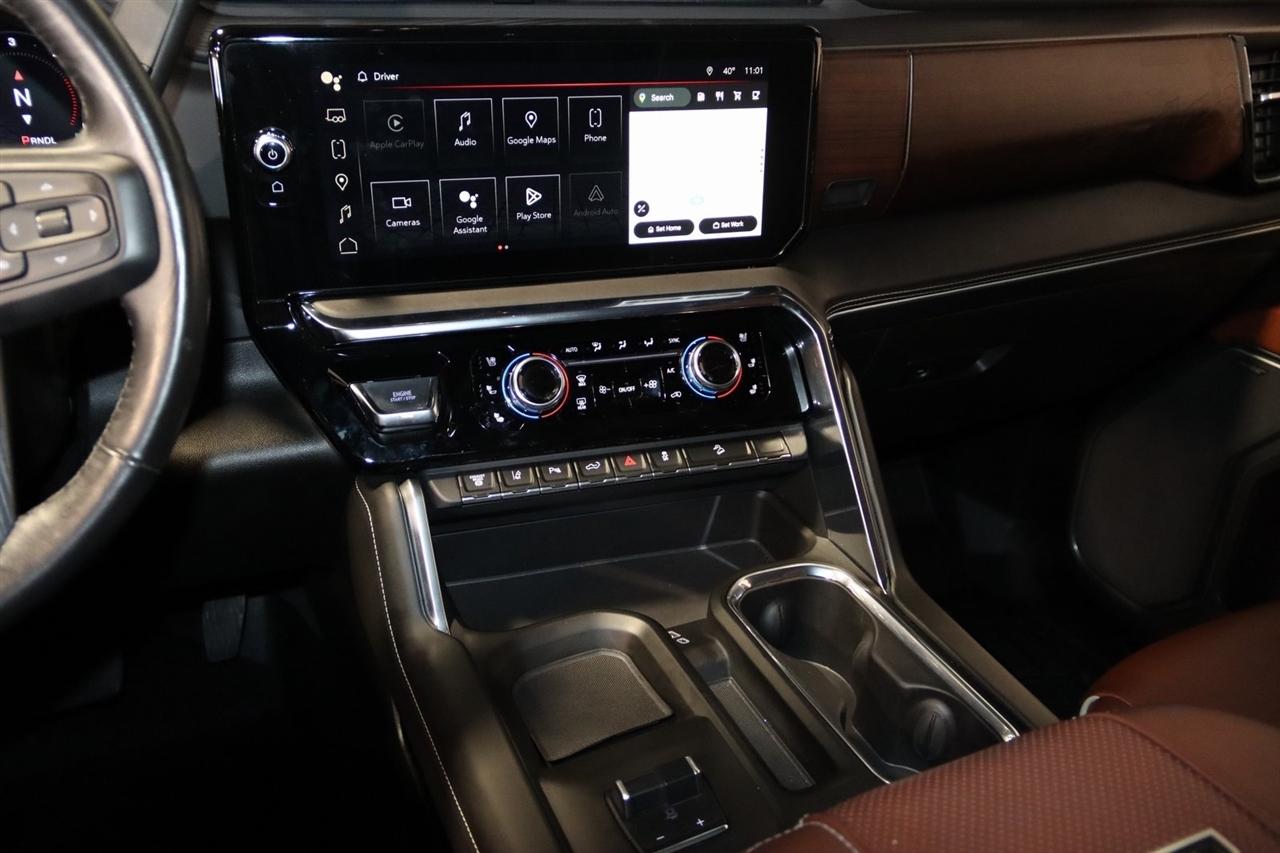Navigation, Bluetooth, Sun/Moon Roof, Towing, Heated Seats, Touch Screen, 12 Speakers, 120-Volt Bed Mounted Power Outlet, 120-Volt Instrument Panel Power Outlet, 16-Way Power Driver Seat Adjuster w/Lumbar, 16-Way Power Passenger Seat Adjuster w/Lumbar, 2 Charge-Only Rear USB Ports, 2 Charge/Data USB Ports Inside Center Console, 2 USB Ports, 2-Speed Active Transfer Case, 220 Amp Alternator, 3.42 Rear Axle Ratio, 4-Wheel Disc Brakes, ABS brakes, Alloy wheels, AM/FM radio: SiriusXM with 360L, Apple CarPlay/Android Auto, Auto High-beam Headlights, Auto-dimming door mirrors, Auto-Dimming Inside Rearview Mirror w/Camera, Auto-dimming Rear-View mirror, Automatic Emergency Braking, Automatic temperature control, Bed View Camera w/2 Trailer Camera Provisions, Block heater, Bose Premium Series 12-Speaker System, Brake assist, Buckle to Drive, Bumpers: body-color, Compass, Console-Mounted Safe (LPO), Deep-Tinted Glass, Delay-off headlights, Driver door bin, Driver Memory, Driver vanity mirror, Dual front impact airbags, Dual front side impact airbags, Dual Heavy-Duty 70 Amp-Hr Battery, Electric Rear-Window Defogger, Electronic Stability Control, Emergency communication system: OnStar and GMC connected services capable, Floor-Mounted Center Console, Following Distance Indicator, Forward Collision Alert, Front anti-roll bar, Front Bucket Seats, Front Center Armrest, Front dual zone A/C, Front fog lights, Front License Plate Kit, Front Pedestrian Braking, Front Rain-Sensing Wipers, Front reading lights, Front wheel independent suspension, Full Grain Leather Seat Trim, Fully automatic headlights, Garage door transmitter, Genuine wood dashboard insert, Genuine wood door panel insert, GMC Premium 13.4" Diagonal Information Display, Gooseneck/5th Wheel Prep Package, HD Surround Vision, Heads-Up Display, Heated 2nd Row Outboard Seats, Heated door mirrors, Heated Driver & Front Outboard Passenger Seats, Heated front seats, Heated rear seats, Heated steering wheel, Hitch Guidance w/Hitch View, Illuminated entry, In-Vehicle Trailering App, Integrated Trailer Brake Controller, IntelliBeam Automatic High Beam On/Off, Keyless Open & Start, Lane Departure Warning System, Leather steering wheel, LED Cargo Area Lighting, LED Smoked Amber Roof Marker Lamps, Low tire pressure warning, Manual Tilt-Wheel/Telescoping Steering Column, Memory seat, Multicolor 15" Diagonal Head-Up Display, Navigation System, Occupant sensing airbag, Outside temperature display, Overhead airbag, Overhead console, Panic alarm, Passenger door bin, Passenger vanity mirror, Pickup Bed, Power door mirrors, Power driver seat, Power Front Windows w/Passenger Express Up/Down, Power moonroof, Power passenger seat, Power Sliding Rear Window w/Defogger, Power steering, Power Sunroof, Power windows, Preferred Equipment Group 5SB, Premium audio system: Premium GMC Infotainment System, ProGrade Trailering System, Push Button Start, Radio: AM/FM w/Premium GMC Infotainment System, Rain sensing wipers, Rear Cross Traffic Alert, Rear reading lights, Rear seat center armrest, Rear step bumper, Rear Underseat Storage (LPO), Rear Wheelhouse Liners, Rear window defroster, Remote keyless entry, Remote Vehicle Starter System, Safety Alert Seat, Security system, Signature Denali Grille in Vader Chrome, SiriusXM w/360L, Snow Plow Prep/Camper Package, Speed control, Speed-sensing steering, Split folding rear seat, Spray-On Pickup Bedliner w/Denali Logo, Steering Wheel Audio Controls, Steering wheel mounted audio controls, Tachometer, Technology Package, Telescoping steering wheel, Tilt steering wheel, Traction control, Trailer Camera Provisions, Trailer Side Blind Zone Alert, Trailer Tire Pressure Monitor Sensors, Trip computer, Turn signal indicator mirrors, Ultrasonic Front & Rear Park Assist, Unauthorized Entry Theft-Deterrent System, Universal Home Remote, Variably intermittent wipers, Ventilated Driver & Front Passenger Seats, Ventilated front seats, Voltmeter, Wireless Charging, Wireless Phone Projec