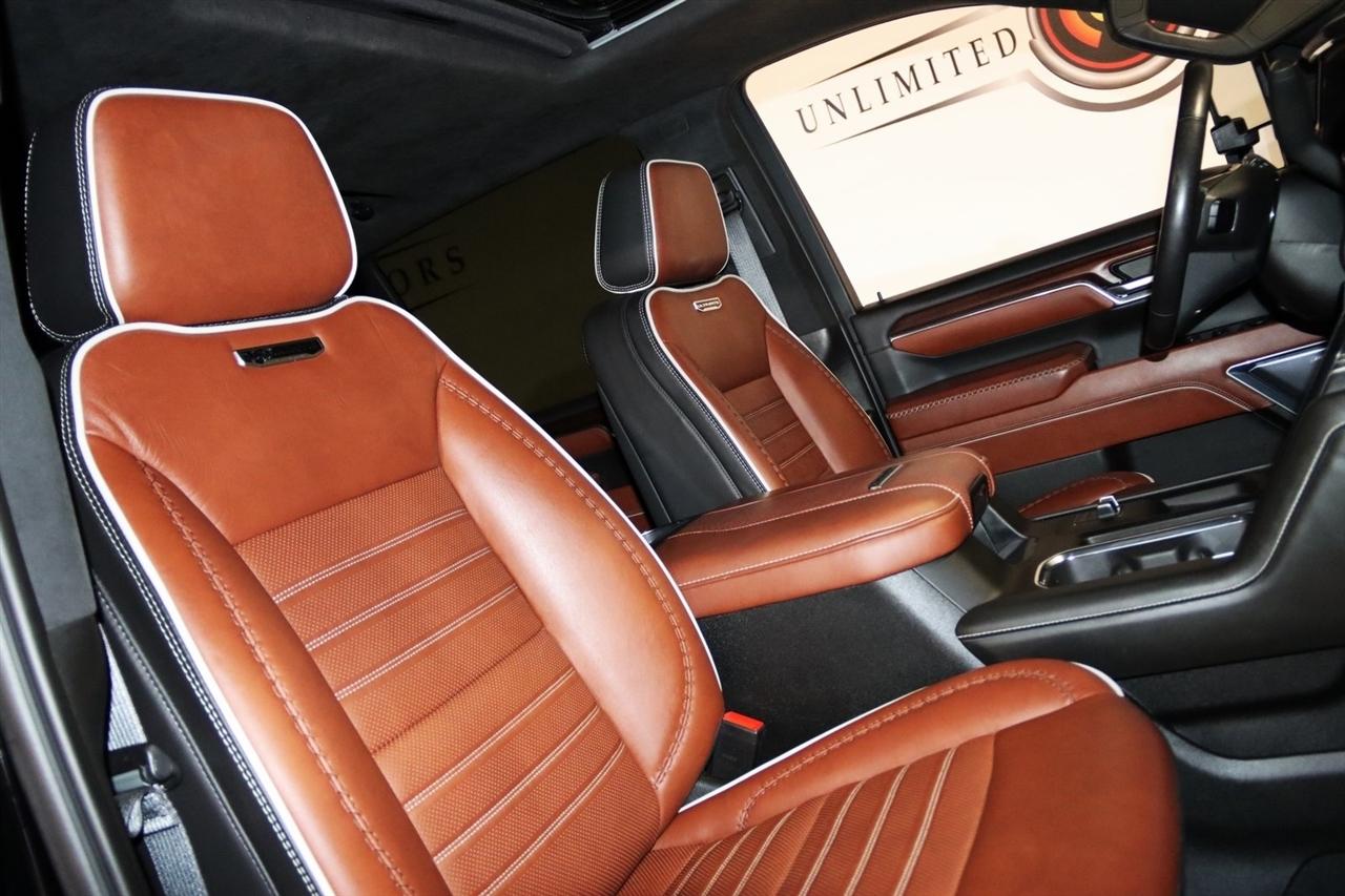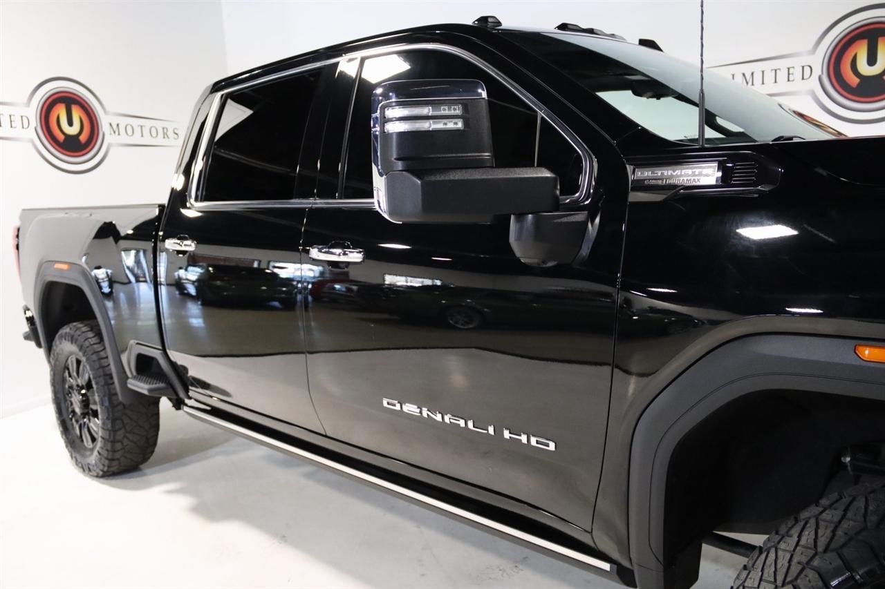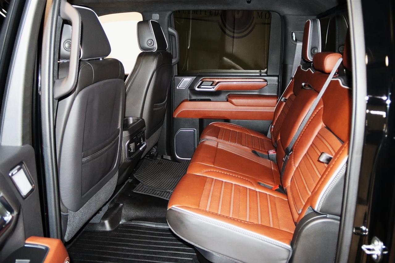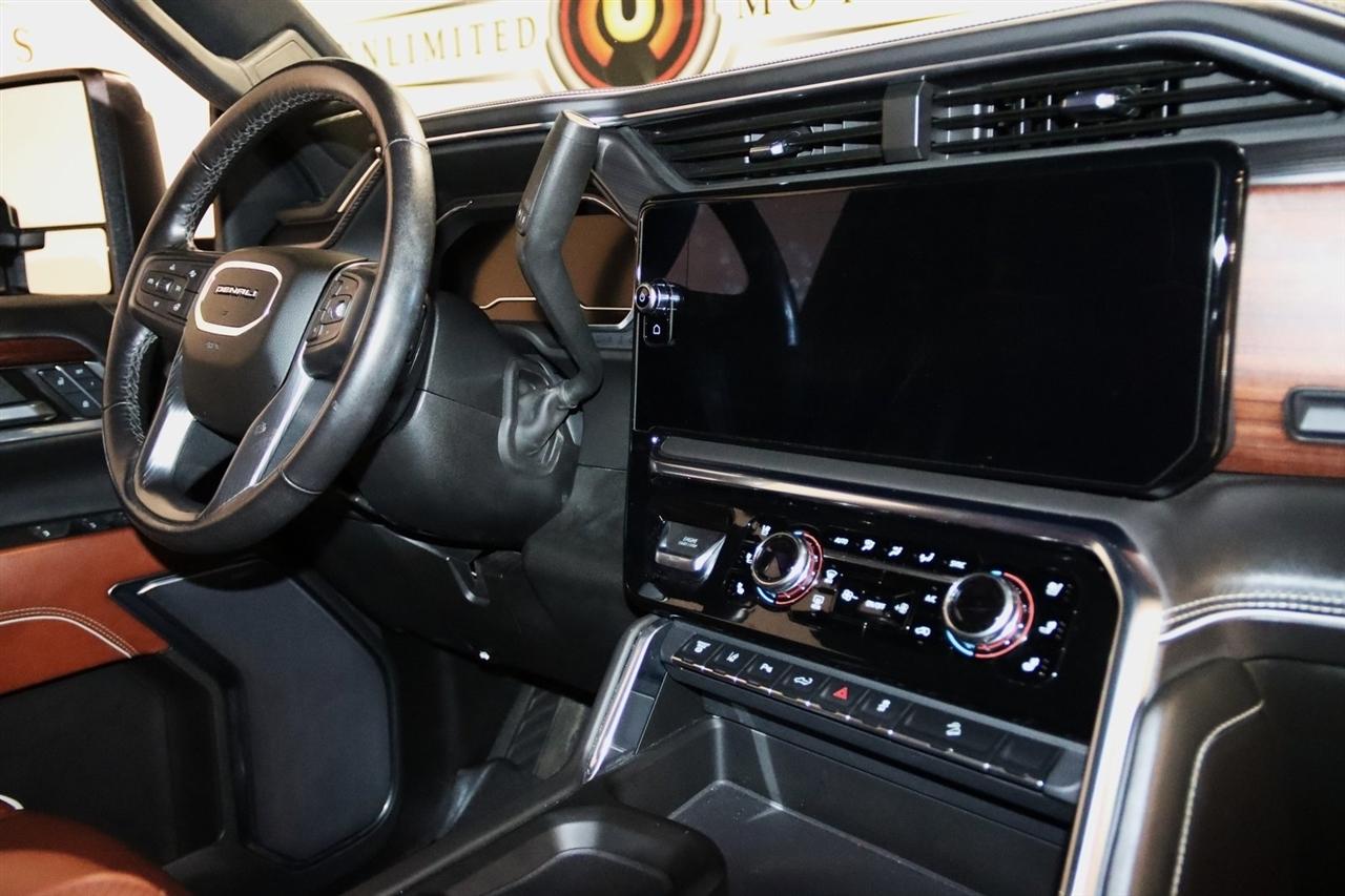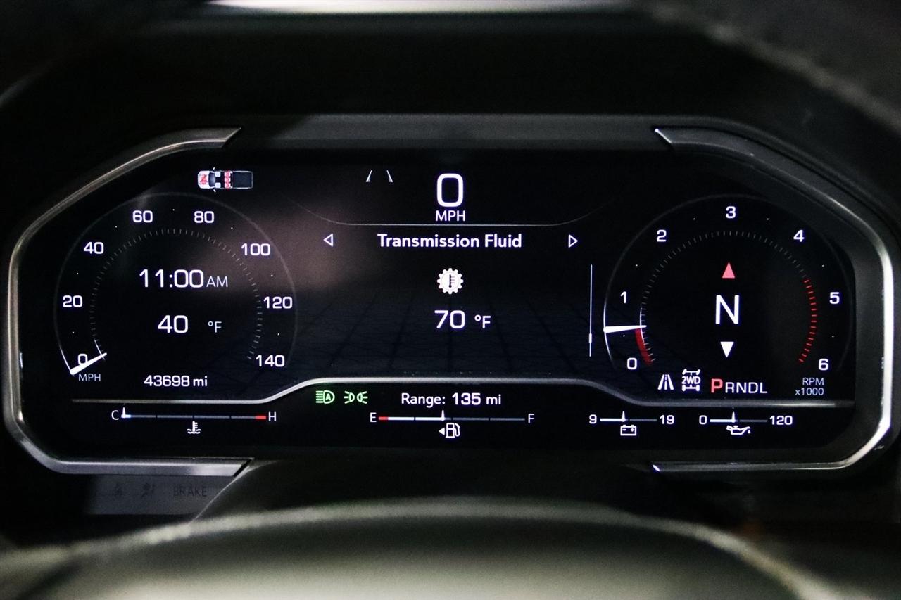 Navigation, Bluetooth, Sun/Moon Roof, Towing, Heated Seats, Touch Screen, 12 Speakers, 120-Volt Bed Mounted Power Outlet, 120-Volt Instrument Panel Power Outlet, 16-Way Power Driver Seat Adjuster w/Lumbar, 16-Way Power Passenger Seat Adjuster w/Lumbar, 2 Charge-Only Rear USB Ports, 2 Charge/Data USB Ports Inside Center Console, 2 USB Ports, 2-Speed Active Transfer Case, 220 Amp Alternator, 3.42 Rear Axle Ratio, 4-Wheel Disc Brakes, ABS brakes, Alloy wheels, AM/FM radio: SiriusXM with 360L, Apple CarPlay/Android Auto, Auto High-beam Headlights, Auto-dimming door mirrors, Auto-Dimming Inside Rearview Mirror w/Camera, Auto-dimming Rear-View mirror, Automatic Emergency Braking, Automatic temperature control, Bed View Camera w/2 Trailer Camera Provisions, Block heater, Bose Premium Series 12-Speaker System, Brake assist, Buckle to Drive, Bumpers: body-color, Compass, Console-Mounted Safe (LPO), Deep-Tinted Glass, Delay-off headlights, Driver door bin, Driver Memory, Driver vanity mirror, Dual front impact airbags, Dual front side impact airbags, Dual Heavy-Duty 70 Amp-Hr Battery, Electric Rear-Window Defogger, Electronic Stability Control, Emergency communication system: OnStar and GMC connected services capable, Floor-Mounted Center Console, Following Distance Indicator, Forward Collision Alert, Front anti-roll bar, Front Bucket Seats, Front Center Armrest, Front dual zone A/C, Front fog lights, Front License Plate Kit, Front Pedestrian Braking, Front Rain-Sensing Wipers, Front reading lights, Front wheel independent suspension, Full Grain Leather Seat Trim, Fully automatic headlights, Garage door transmitter, Genuine wood dashboard insert, Genuine wood door panel insert, GMC Premium 13.4" Diagonal Information Display, Gooseneck/5th Wheel Prep Package, HD Surround Vision, Heads-Up Display, Heated 2nd Row Outboard Seats, Heated door mirrors, Heated Driver & Front Outboard Passenger Seats, Heated front seats, Heated rear seats, Heated steering wheel, Hitch Guidance w/Hitch View, Illuminated entry, In-Vehicle Trailering App, Integrated Trailer Brake Controller, IntelliBeam Automatic High Beam On/Off, Keyless Open & Start, Lane Departure Warning System, Leather steering wheel, LED Cargo Area Lighting, LED Smoked Amber Roof Marker Lamps, Low tire pressure warning, Manual Tilt-Wheel/Telescoping Steering Column, Memory seat, Multicolor 15" Diagonal Head-Up Display, Navigation System, Occupant sensing airbag, Outside temperature display, Overhead airbag, Overhead console, Panic alarm, Passenger door bin, Passenger vanity mirror, Pickup Bed, Power door mirrors, Power driver seat, Power Front Windows w/Passenger Express Up/Down, Power moonroof, Power passenger seat, Power Sliding Rear Window w/Defogger, Power steering, Power Sunroof, Power windows, Preferred Equipment Group 5SB, Premium audio system: Premium GMC Infotainment System, ProGrade Trailering System, Push Button Start, Radio: AM/FM w/Premium GMC Infotainment System, Rain sensing wipers, Rear Cross Traffic Alert, Rear reading lights, Rear seat center armrest, Rear step bumper, Rear Underseat Storage (LPO), Rear Wheelhouse Liners, Rear window defroster, Remote keyless entry, Remote Vehicle Starter System, Safety Alert Seat, Security system, Signature Denali Grille in Vader Chrome, SiriusXM w/360L, Snow Plow Prep/Camper Package, Speed control, Speed-sensing steering, Split folding rear seat, Spray-On Pickup Bedliner w/Denali Logo, Steering Wheel Audio Controls, Steering wheel mounted audio controls, Tachometer, Technology Package, Telescoping steering wheel, Tilt steering wheel, Traction control, Trailer Camera Provisions, Trailer Side Blind Zone Alert, Trailer Tire Pressure Monitor Sensors, Trip computer, Turn signal indicator mirrors, Ultrasonic Front & Rear Park Assist, Unauthorized Entry Theft-Deterrent System, Universal Home Remote, Variably intermittent wipers, Ventilated Driver & Front Passenger Seats, Ventilated front seats, Voltmeter, Wireless Charging, Wireless Phone Projec