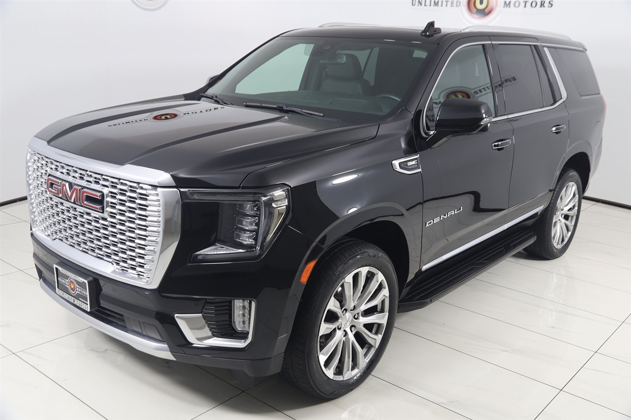 Navigation, Back Up Camera, Bluetooth, Panoramic Roof, Running Boards, Heated Seats, Touch Screen, Cooled Heats, Blind Spot, Heated Steering Wheel, Apple Play, Yukon Denali, 4D Sport Utility, EcoTec3 6.2L V8, 10-Speed Automatic with Overdrive, 4WD, Onyx Black, Jet Black Leather, 15" Diagonal Multi-Color Head-Up Display, 2 Presets For Outside Rearview Mirrors, 3 Years of GMC Connected Services, 3rd Row 60/40 Power-Folding Split-Bench Seat, Automatic Stop/Start, Bright Front & Rear Door Sill Plates, Chrome Door Handles w/Body-Color Strip, Dual Exhaust System, Floor Console, Galvano Bodyside Moldings, Hands-Free Power Programmable Rear Liftgate, HD Surround Vision, Heated & Ventilated Driver & Front Passenger Seats, Heated 2nd Row Outboard Position Seats, Heated Driver & Front Passenger Seats, Heated Steering Wheel, Hill Descent Control, Inside Rear-View Auto-Dimming Mirror, License Plate Front Mounting Package, Navigation System, Outside Heated Power-Adjustable Mirrors, Power Release 2nd Row Bucket Seats, Power Tilt & Telescopic Steering Column, Preferred Equipment Group 5SA, Rear Pedestrian Alert, Safety Alert Seat, Start/Stop System Disable Button, Universal Home Remote, Wireless Charging. CARFAX One-Owner. Clean CARFAX. Odometer is 33875 miles below market average!