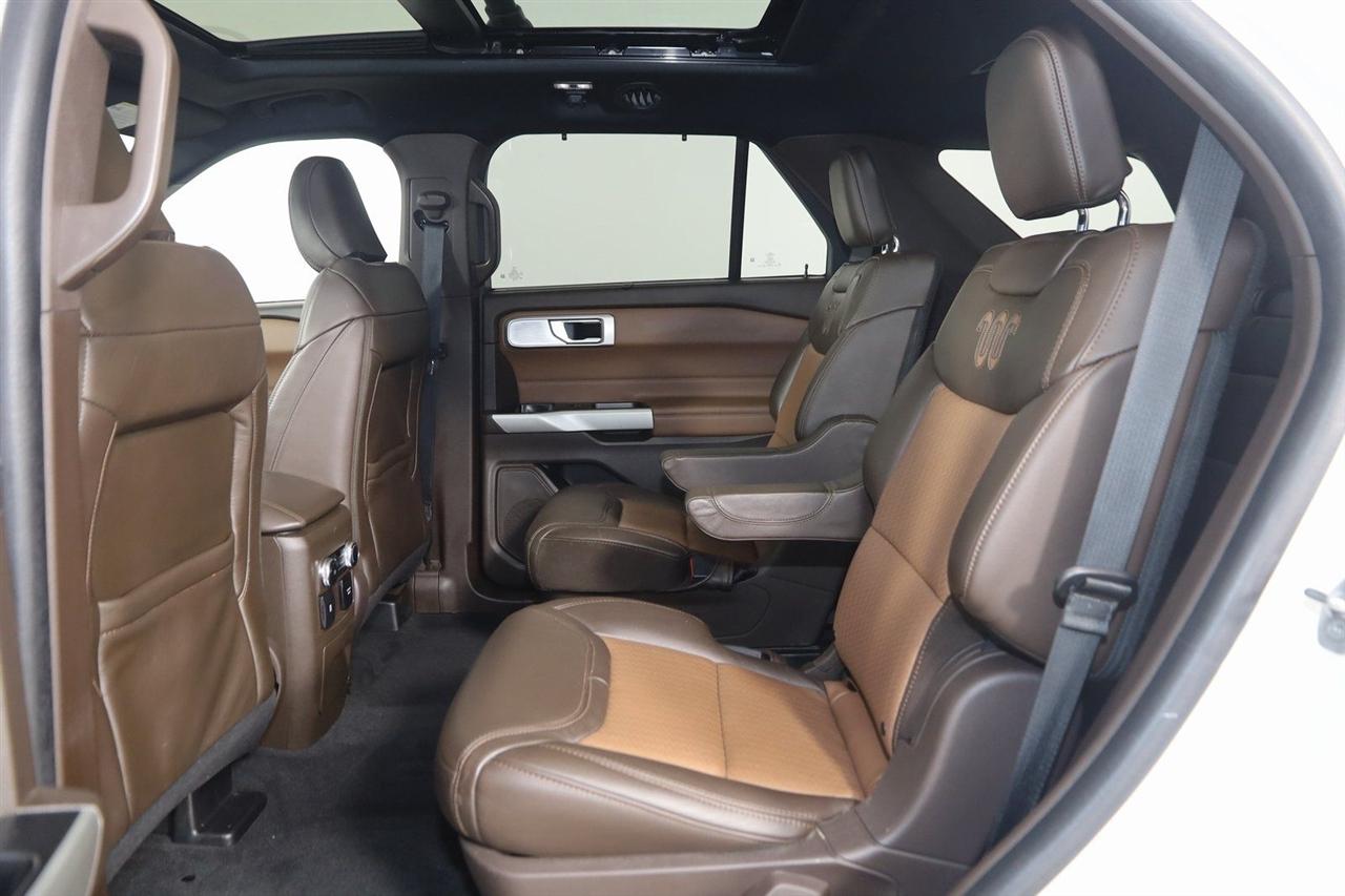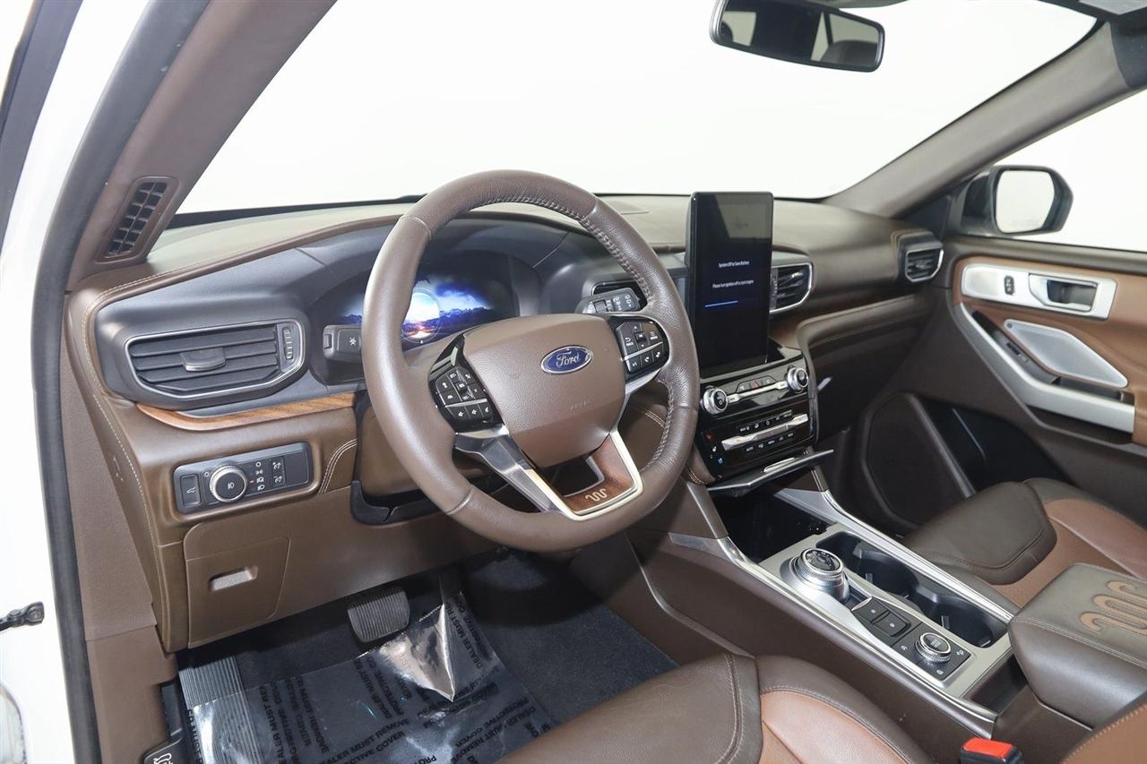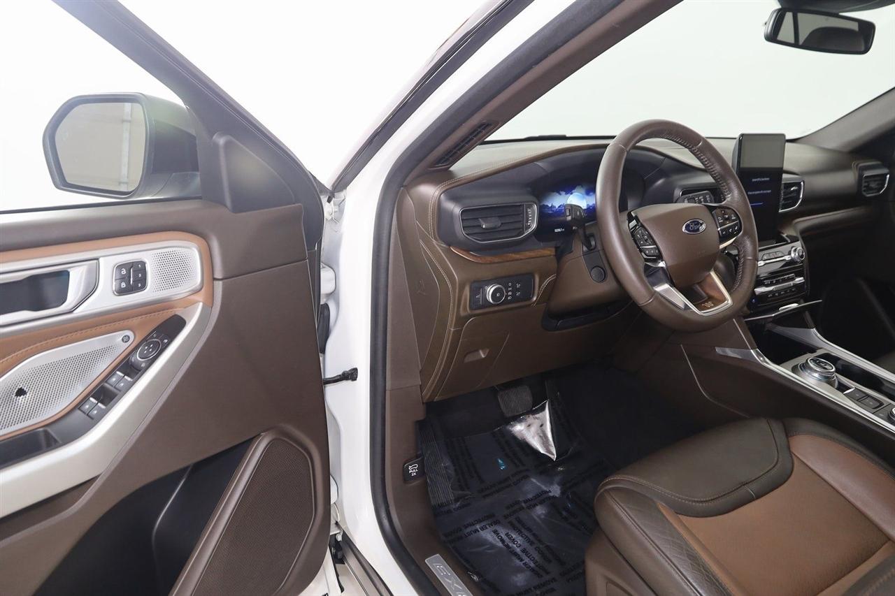 Navigation, Back Up Camera, Bluetooth, Panoramic Roof, Heated Seats, Winch, Touch Screen, Heated Steering Wheel, Blind Spot, Apple CarPlay/Android Auto, Explorer King Ranch, 4D Sport Utility, 3.0L EcoBoost V6, 10-Speed Automatic, 4WD, Star White Metallic Tri-Coat, Java Leather.