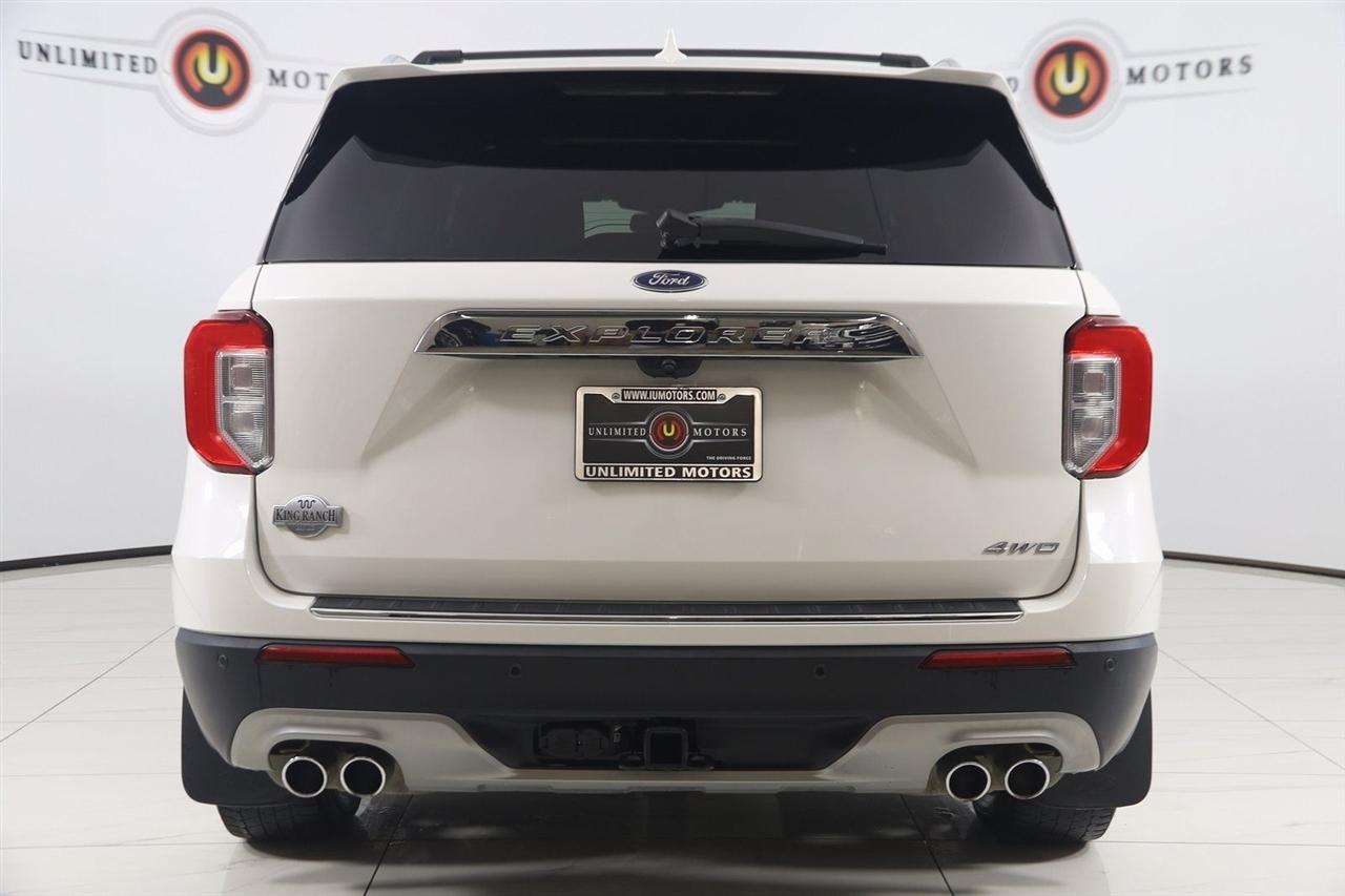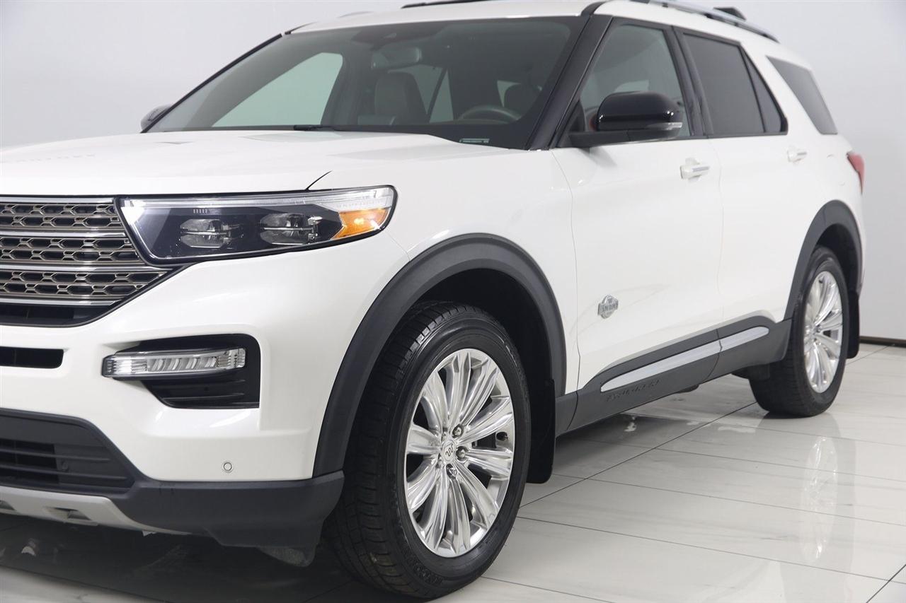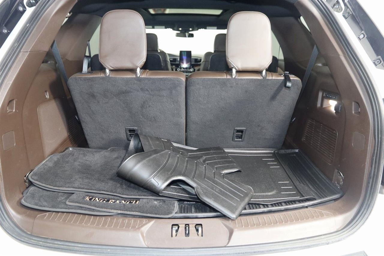 Navigation, Back Up Camera, Bluetooth, Panoramic Roof, Heated Seats, Winch, Touch Screen, Heated Steering Wheel, Blind Spot, Apple CarPlay/Android Auto, Explorer King Ranch, 4D Sport Utility, 3.0L EcoBoost V6, 10-Speed Automatic, 4WD, Star White Metallic Tri-Coat, Java Leather.