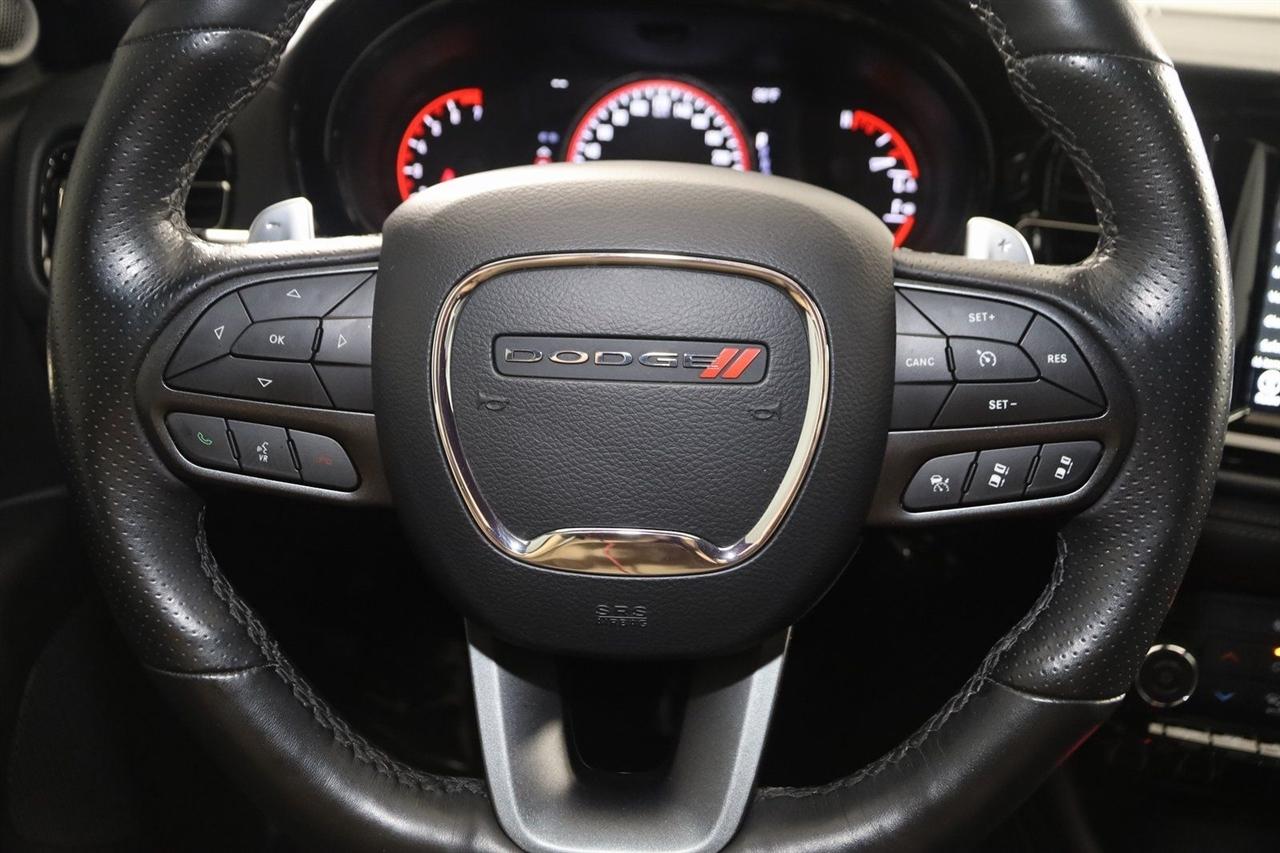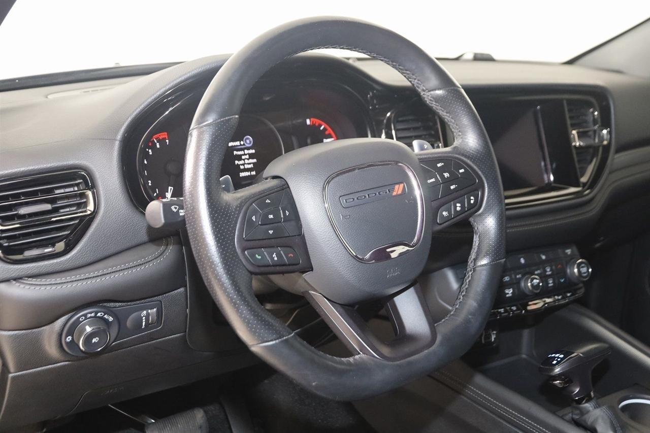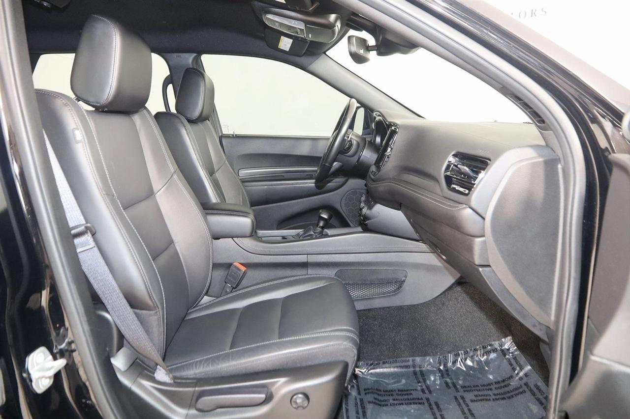 Back Up Camera, Bluetooth, Heated Seats, Touch Screen, Heated Steering Wheel, Blind Spot, Durango GT Plus, 4D Sport Utility, 3.6L V6 24V VVT, 8-Speed Automatic, AWD, DB Black Crystal Clearcoat, Black Leather, #2 Seat Foam Cushion, 115V Auxiliary Power Outlet, 180 Amp Alternator, 7 & 4 Pin Wiring Harness, Adaptive Cruise Control w/Stop, Advanced Brake Assist, Auto-Dimming Exterior Driver Mirror, Body Color Exterior Mirrors, Bright Cargo Area Scuff Pads, Bright Front Door Sill Scuff Pads, Class IV Receiver Hitch, Dual Remote USB Port - Charge Only, Exterior Mirrors w/Heating Element, Exterior Mirrors w/Memory, Exterior Mirrors w/Supplemental Signals, Full Speed Forward Collision Warning Plus, Heated Second Row Seats, Heavy-Duty Engine Cooling, Lane Departure Warning Plus, Leather Suede Bucket Seats, Power 6x9 Multi-Function Foldaway Mirrors, Power 8-Way Driver Memory 6-Way Passenger Seats, Power Driver/Passenger 4-Way Lumbar Adjust, Premium Door Trim Panel, Quick Order Package 2BE GT Plus, Radio/Driver Seat/Mirrors Memory, Rain Sensitive Windshield Wipers, Rear Load Leveling Suspension, Security Alarm, Sun Visors w/Illuminated Vanity Mirrors, Trailer Brake Control, Trailer Tow Group IV, Tungsten Accent Stitching, Universal Garage Door Opener.