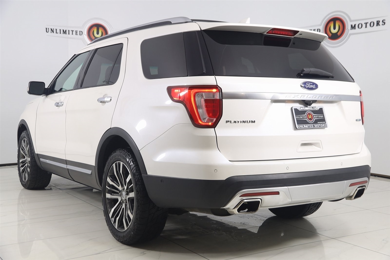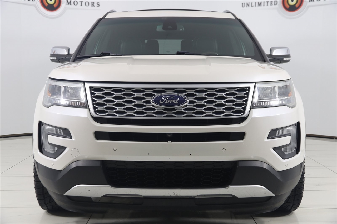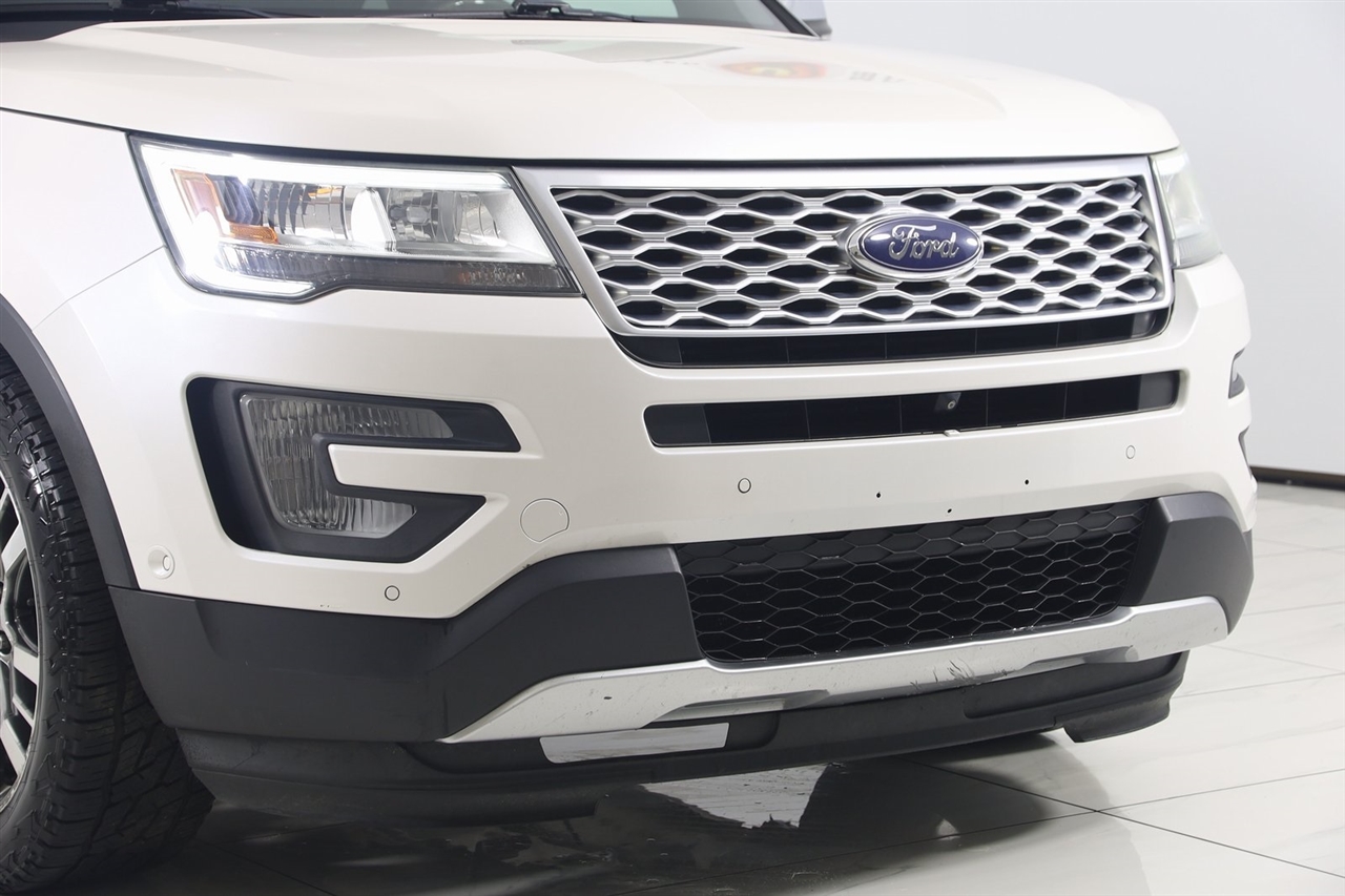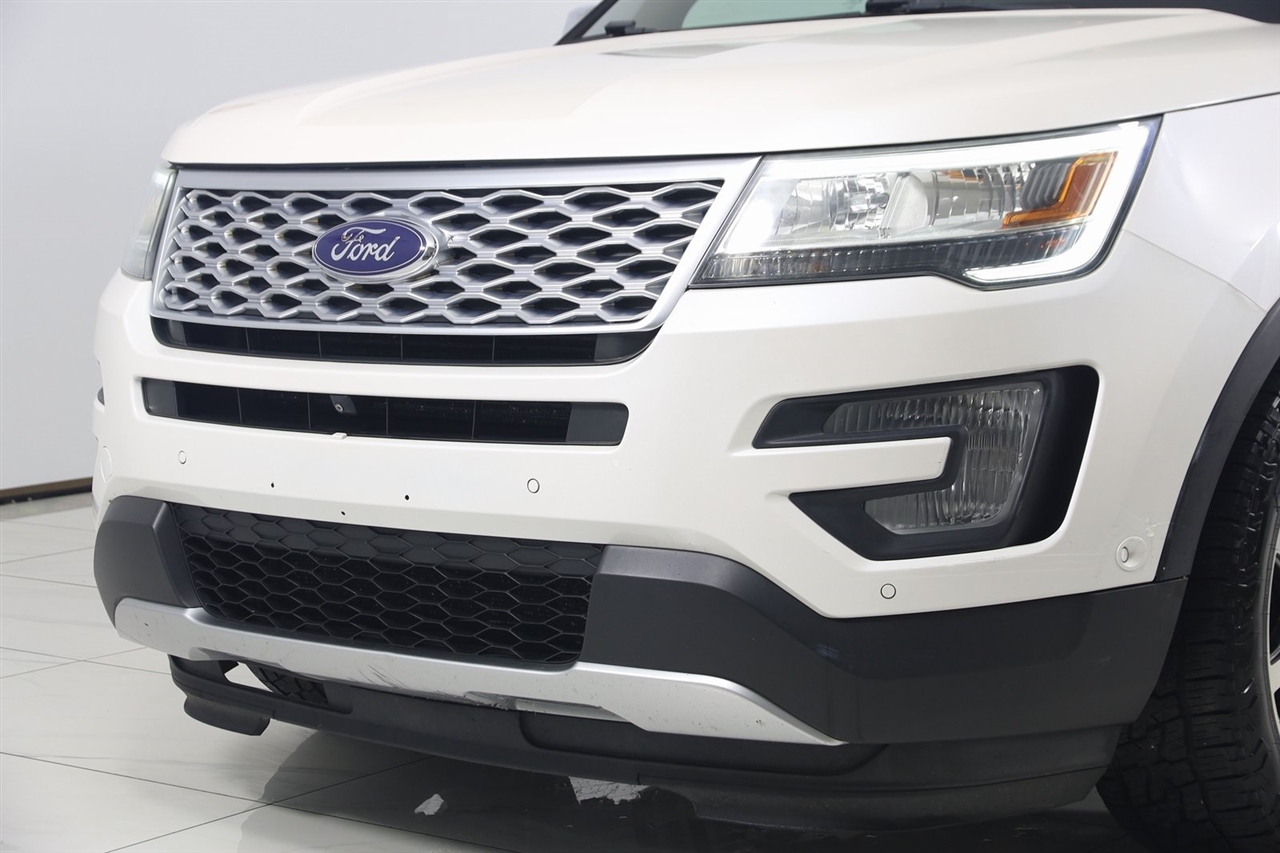 Navigation, Back Up Camera, Bluetooth, Panoramic Roof, Heated Seats, Touch Screen, Heated Steering Wheel, Rear Heated Seats, Blind Spot, Explorer Platinum, 4D Sport Utility, 3.5L V6, 6-Speed Automatic with Select-Shift, 4WD, White Platinum Clearcoat Metallic, Ebony Black Leather.