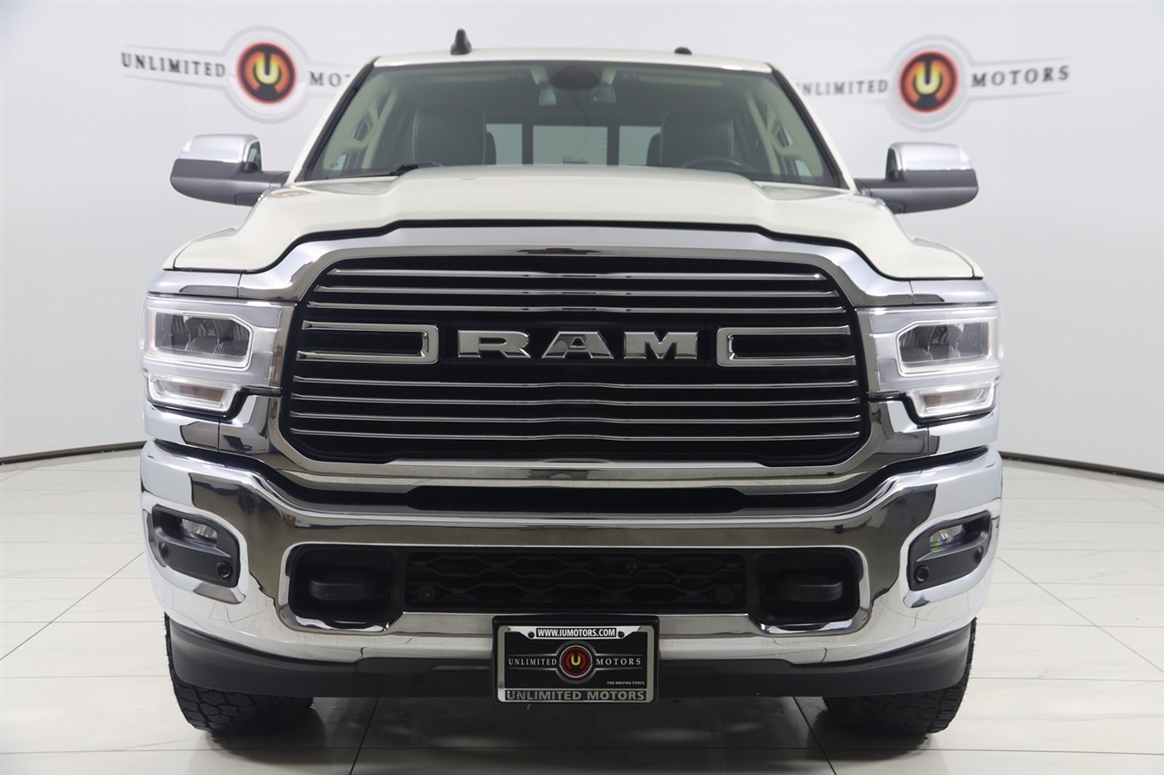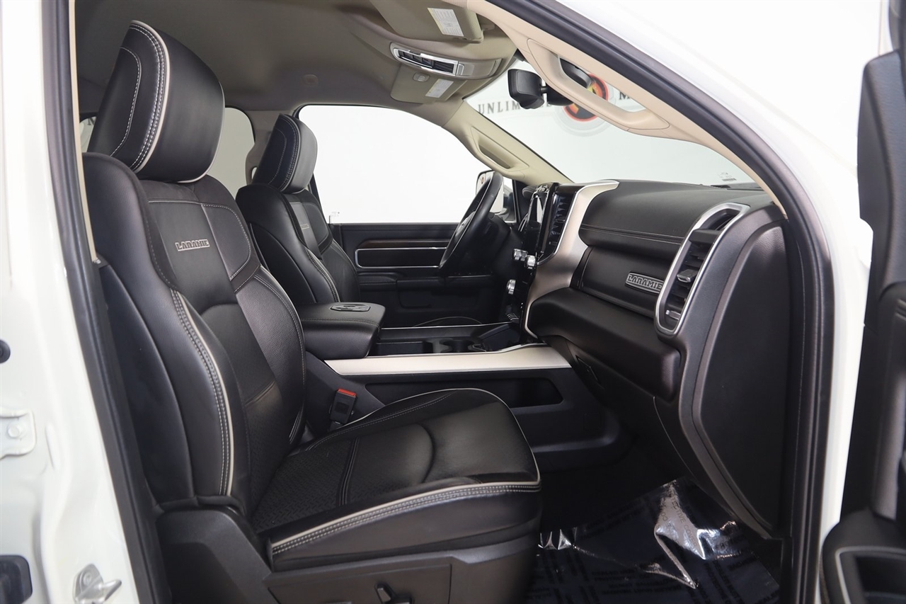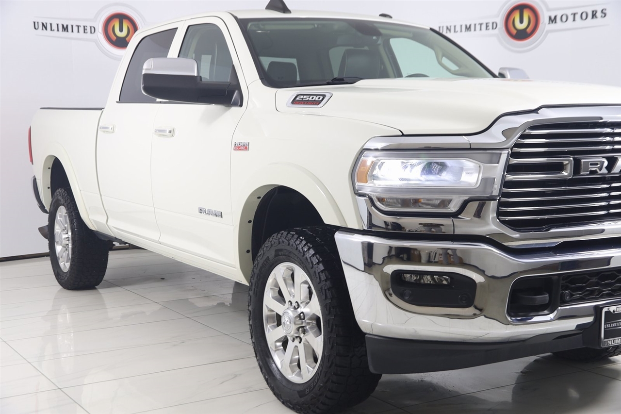 Navigation, Back Up Camera, Bluetooth, Heated Seats, Winch, Heated Steering Wheel, Rear Heated Seats, 2500 Laramie, 4D Crew Cab, 6.4L V8, 8-Speed Automatic, 4WD, Pearl White, Black Leather, 2nd Row In Floor Storage Bins, Auto High Beam Headlamp Control, Chrome Exterior Mirrors, Exterior Mirrors Courtesy Lamps, Exterior Mirrors w/Heating Element, Exterior Mirrors w/Memory, Exterior Mirrors w/Supplemental Signals, Foam Bottle Insert (Door Trim Panel), GPS Navigation, Laramie Level A Equipment Group, Mirror Running Lights, Mirror-Mounted Aux Reverse Lamps, Navigation System, Power Adjustable Convex Aux Mirrors, Power Adjustable Pedals w/Memory, Power Chrome Tow Mirrors w/Convex Spotter & Memory, Power Folding Mirrors, Quick Order Package 2GH Laramie, Radio/Driver Seat/Mirrors/Pedals Memory, Rain Sensitive Windshield Wipers, Remote Tailgate Release, Trailer Tow Mirrors.