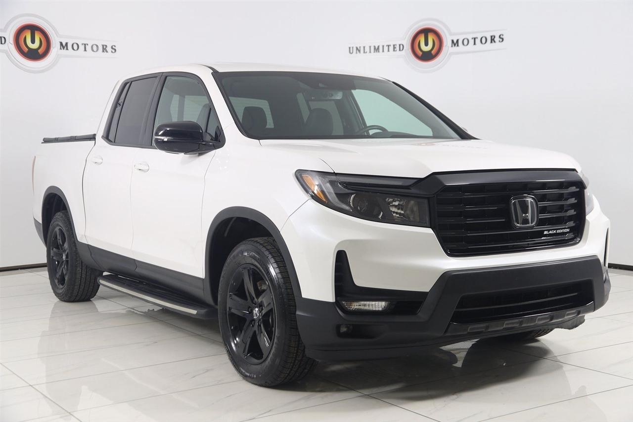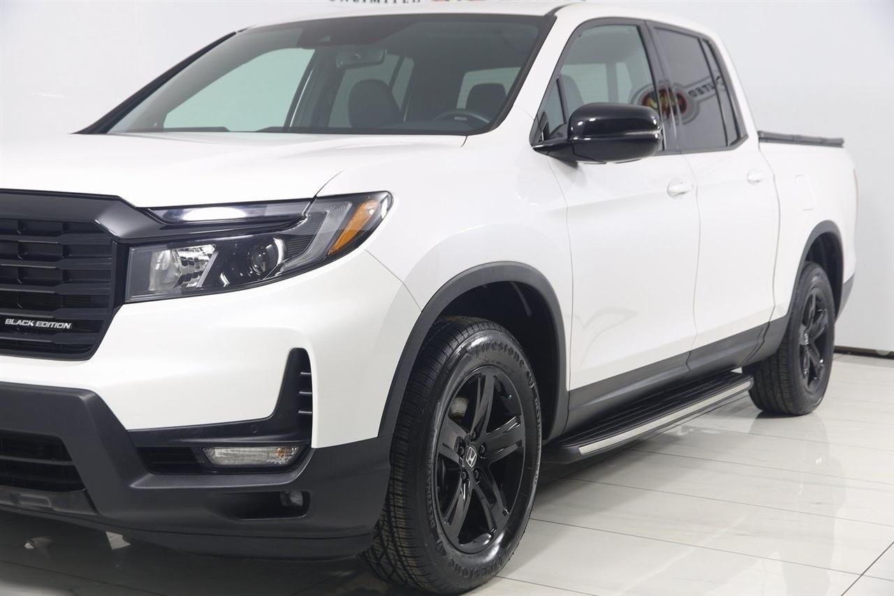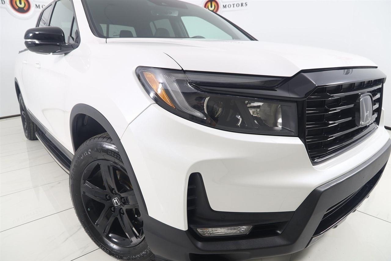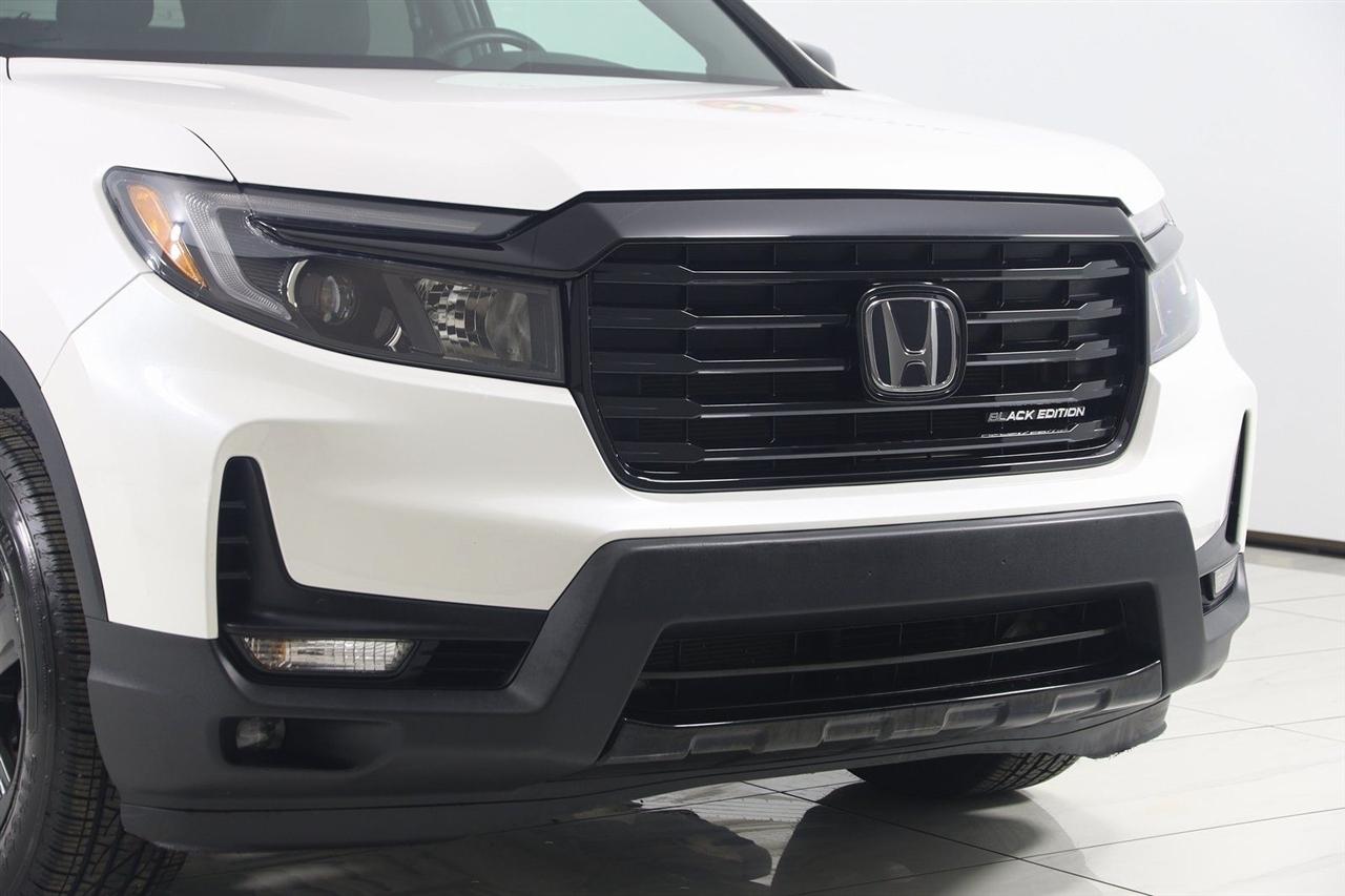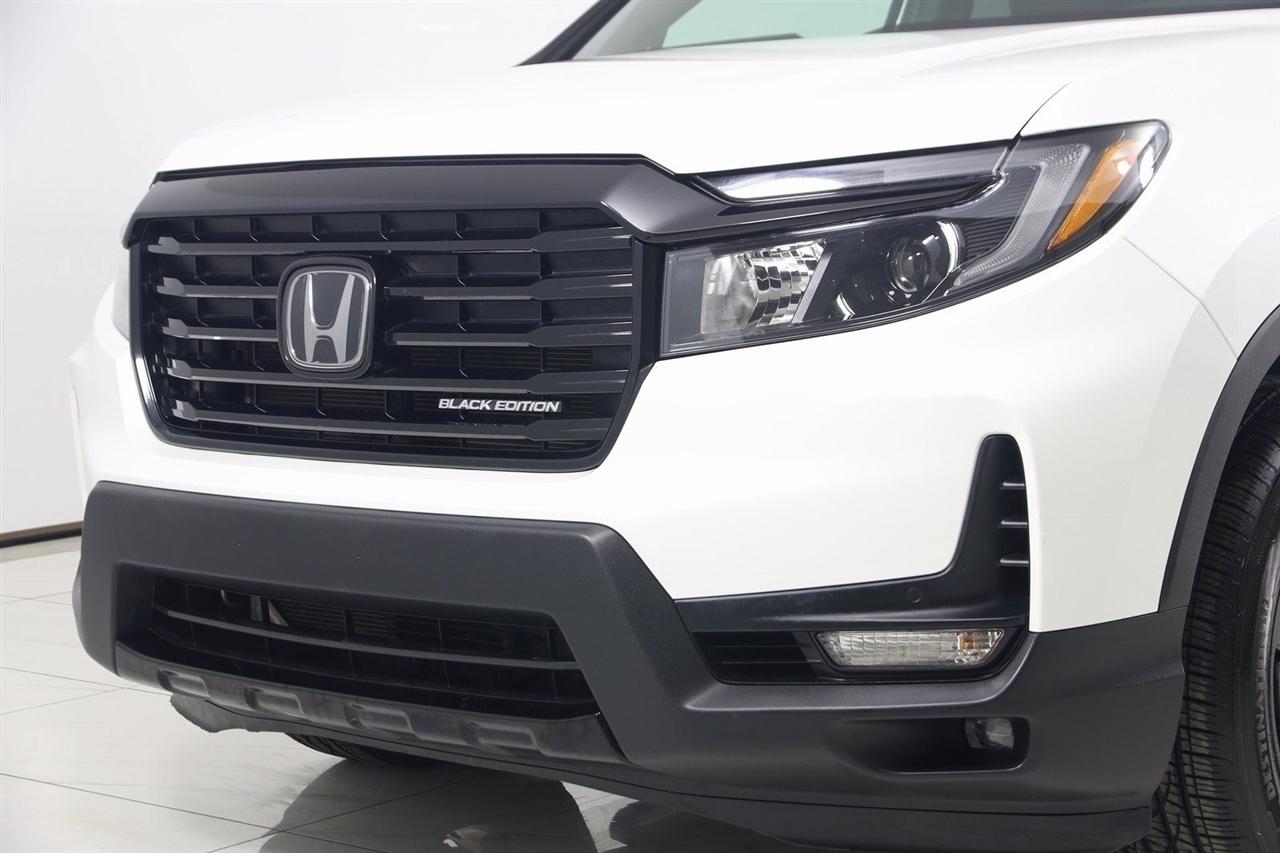 Navigation, Back Up Camera, Bluetooth, Sun/Moon Roof, Running Boards, Heated Seats, Winch, Touch Screen, Apple CarPlay/Android Auto, Ridgeline Black Edition, 4D Crew Cab, 3.5L V6 SOHC i-VTEC 24V, 9-Speed Automatic, AWD, White, Black Leather, Honda Satellite-Linked Navigation System, Navigation System, Navigation system: Honda Satellite-Linked Navigation System.