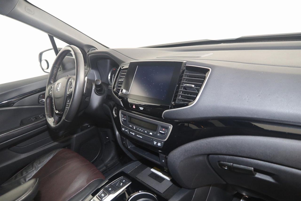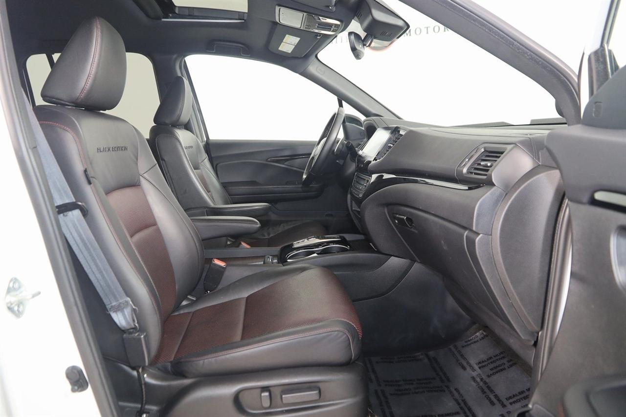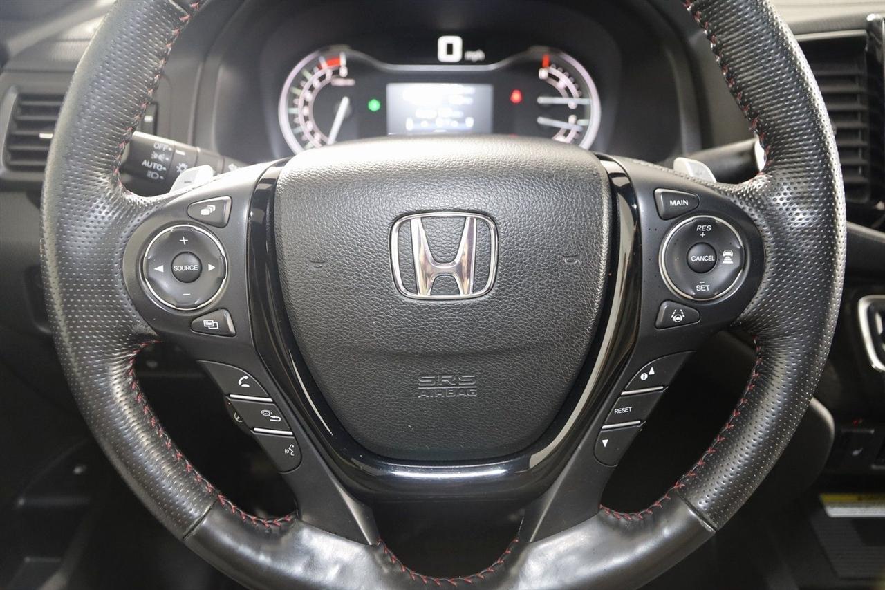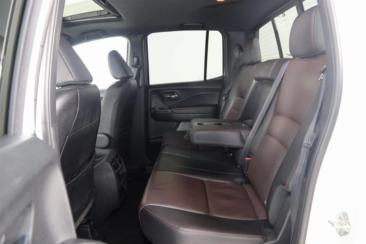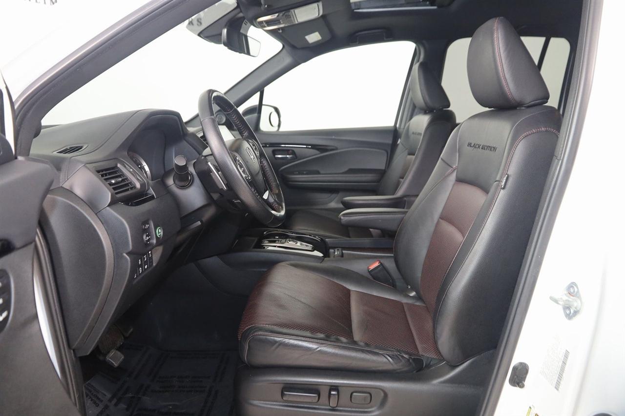 Navigation, Back Up Camera, Bluetooth, Sun/Moon Roof, Running Boards, Heated Seats, Winch, Touch Screen, Apple CarPlay/Android Auto, Ridgeline Black Edition, 4D Crew Cab, 3.5L V6 SOHC i-VTEC 24V, 9-Speed Automatic, AWD, White, Black Leather, Honda Satellite-Linked Navigation System, Navigation System, Navigation system: Honda Satellite-Linked Navigation System.