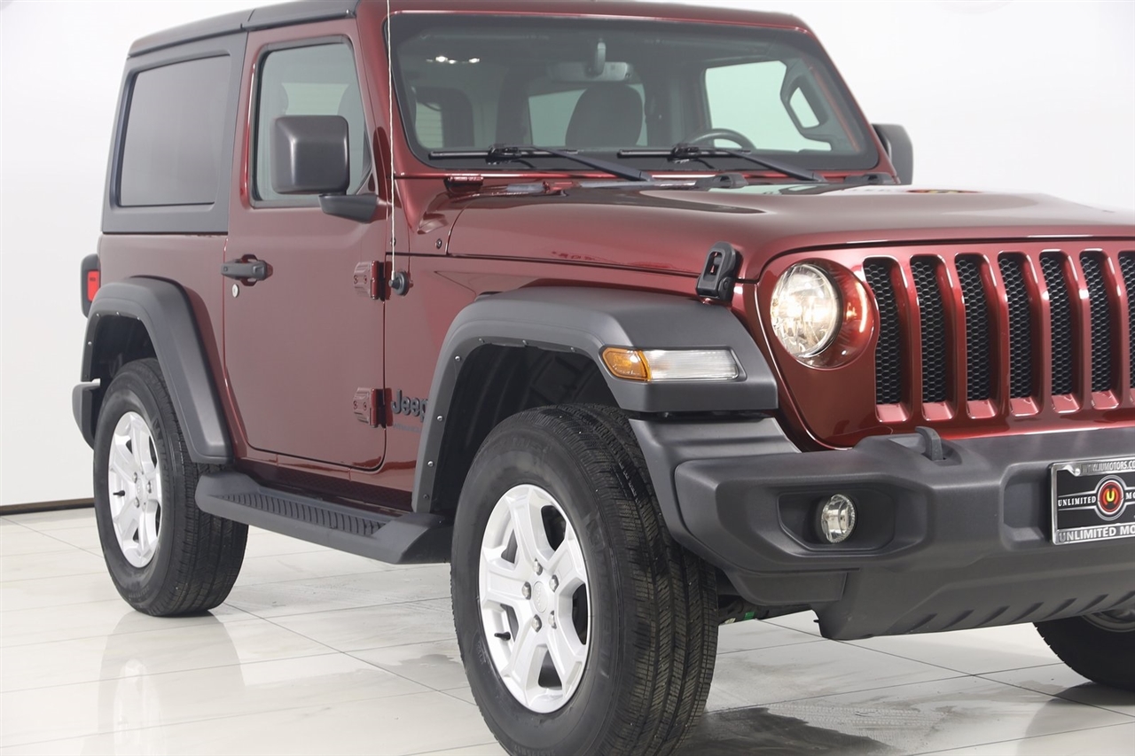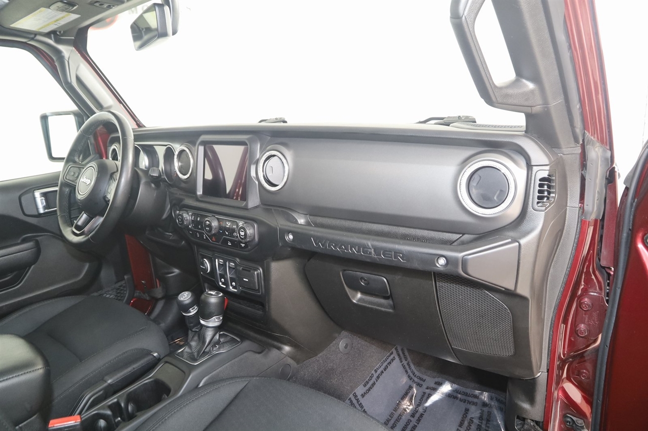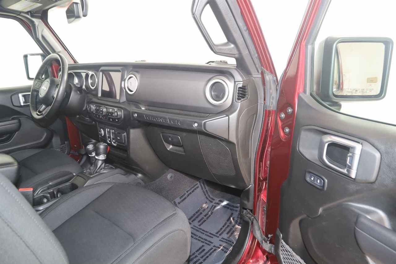 Navigation, Back Up Camera, Bluetooth, Sun/Moon Roof, Running Boards, Heated Seats, Winch, Touch Screen, Heated Steering Wheel, Wrangler Sport S, 2D Sport Utility, 3.6L V6 24V VVT, 8-Speed Automatic, 4WD, Snazzberry Pearlcoat, Black Cloth, 1-Yr SiriusXM Guardian Trial, 4G LTE Wi-Fi Hot Spot, 5-Year SiriusXM Traffic Service, 5-Year SiriusXM Travel Link Service, 8.4" Radio & Premium Audio Group, 8.4" Touchscreen Display, Air Conditioning, Air Conditioning w/Auto Temperature Control, Air Filtering, Alpine Premium Audio System, Auto-Dimming Rear-View Mirror, Automatic Headlamps, Cluster 7.0" TFT Color Display, Cold Weather Group, Convenience Group, Deep Tint Sunscreen Windows, Emergency/Assistance Call, For Details, Visit DriveUconnect.com, For More Info, Call 800-643-2112, Front 1-Touch Down Power Windows, Front Door Locks 2-Door Passive Entry, Global Telematics Box Module (TBM), GPS Antenna Input, GPS Navigation, HD Radio, Heated Front Seats, Heated Steering Wheel, Integrated Voice Command w/Bluetooth, Leather Wrapped Steering Wheel, Navigation System, Off-Road Info Pages, Power Heated Mirrors, Quick Order Package 24S Sport S (DISC), Radio: Uconnect 4C Nav w/8.4" Display, Remote Keyless Entry, Security Alarm, SiriusXM Guardian-Included Trial (B), SiriusXM Satellite Radio, SiriusXM Traffic Plus, SiriusXM Travel Link, Speed Sensitive Power Locks, Sport S, Sun Visors w/Illuminated Vanity Mirrors, Technology Group, Universal Garage Door Opener, USB Host Flip, Wheels: 17" x 7.5" Tech Silver Aluminum.