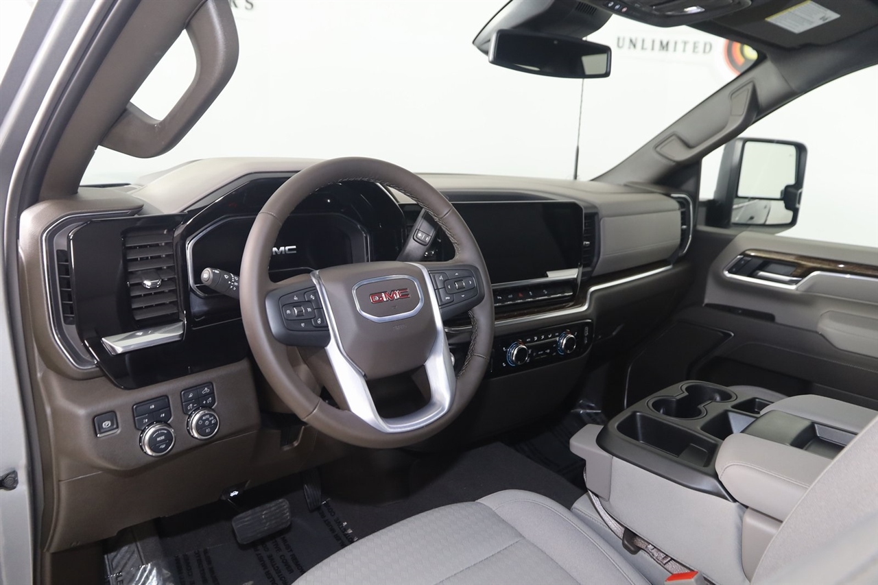 Navigation, Back Up Camera, Bluetooth, Heated Seats, Winch, Touch Screen, Heated Steering Wheel, Blind Spot, Apple CarPlay/Android Auto, Sierra 2500HD SLE, 4D Crew Cab, 6.6L V8, 10-Speed Automatic, 4WD, Sterling Metallic, Dark Walnut/Slate Cloth, 10-Way Power Driver Seat Adjuster w/Lumbar, 120-Volt Bed Mounted Power Outlet, 120-Volt Instrument Panel Power Outlet, 18" Machined Aluminum Wheels, 2 Charge-Only Rear USB Ports, 2 Charge/Data USB Ports, 2-Speed Electronic Shift Transfer Case, 220-Amp Alternator, 4-Way Manual Driver Seat Adjuster, A/C w/Dual-Zone Automatic Climate Control, Adaptive Cruise Control, All-Weather Floor Liners (LPO), Bed View Camera w/2 Trailer Camera Provisions, Chrome Surround Grille w/Chrome Insert Bars, Cloth Rear Seat w/Storage Package, Deep-Tinted Glass, Electric Rear-Window Defogger, HD Surround Vision, Heated Driver & Front Outboard Passenger Seats, Heated Steering Wheel, Hill Descent Control, Hitch Guidance w/Hitch View, In-Vehicle Trailering System App, Keyless Open & Start, LED Cargo Area Lighting, LED Fog Lamps, LED Smoked Amber Roof Marker Lamps, Manual Tilt-Wheel/Telescoping Steering Column, Off-Road Suspension, OnStar Services Capable, Power Sliding Rear Window w/Defogger, Preferred Equipment Group 3SA, Preferred Package, Push Button Start, Rear Cross Traffic Alert, Remote Start Package, Remote Vehicle Starter System, Sierra HD Pro Safety Plus Package, SiriusXM w/360L Trial Subscription, SLE Convenience Package, SLE Heated Package, Snow Plow Prep/Camper Package, Spray-On Pickup Bedliner w/GMC Logo, Steering Wheel Audio Controls, Suspension Package, Trailer Cam Provisions & Trailer Viewing Software, Trailer Side Blind Zone Alert, Ultrasonic Front & Rear Park Assist, Unauthorized Entry Theft-Deterrent System, Universal Home Remote, Wireless Phone Projection, X31 Off-Road & Protection Package, X31 Off-Road Package.