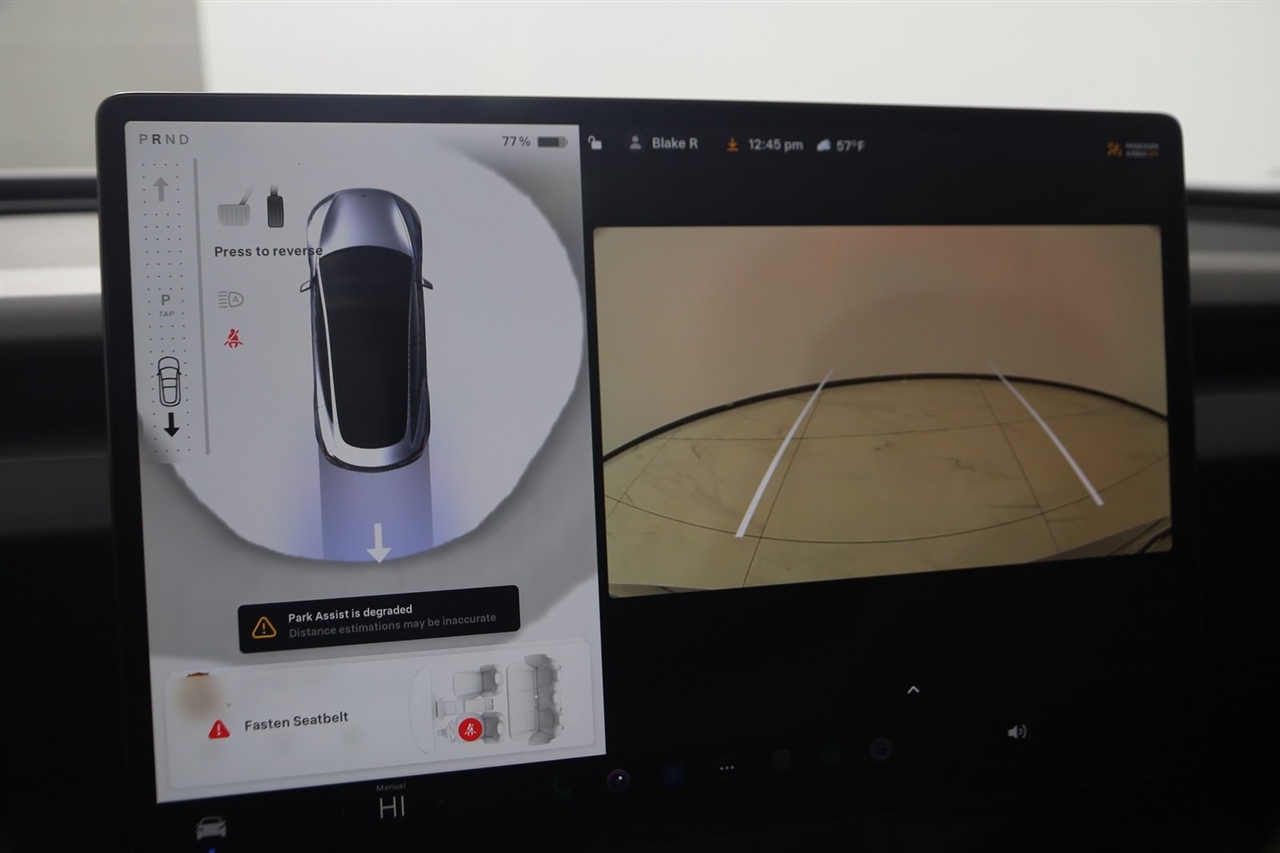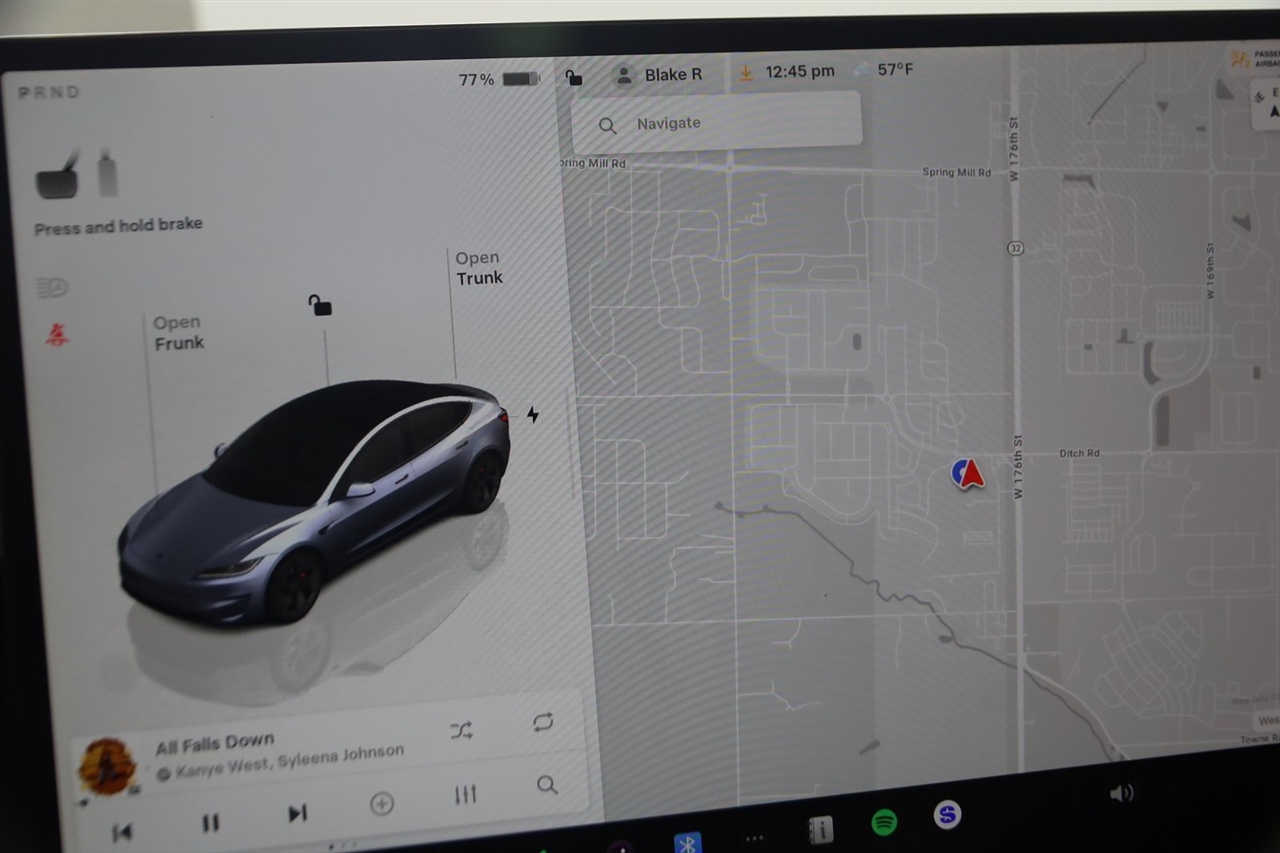 Navigation, Back Up Camera, Bluetooth, Panoramic Roof, Heated Seats, Touch Screen, Heated Front Seats, Heated Front & Rear Seats, Ventilated Front Seats, Blind Spot, Apple CarPlay/Android Auto, AWD, Model 3 Long Range, Electric Motor, 1-Speed Automatic, AWD, Stealth Gray, Black w/Vegan Leather Seat Trim.