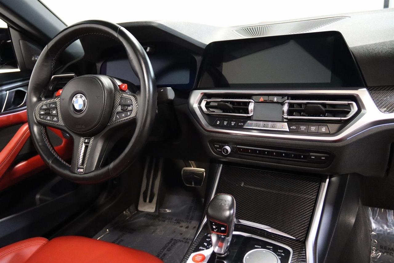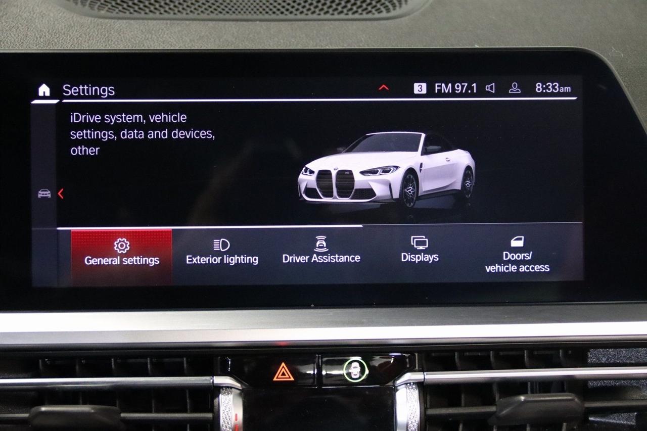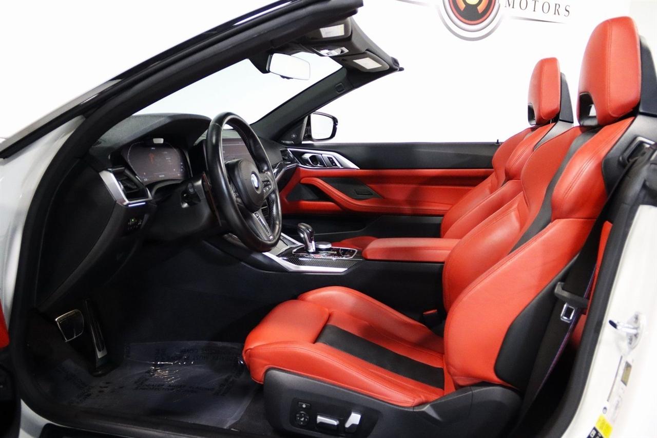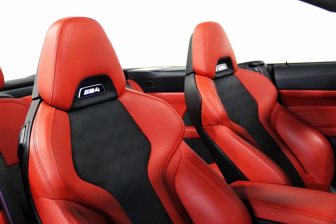 Navigation, Bluetooth, Back Up Camera, Soft Top, Heated Seats, Touch Screen, 16 Speakers, 4-Wheel Disc Brakes, ABS brakes, Active Driving Assistant Pro, Adaptive suspension, Air Conditioning, Alloy wheels, AM/FM radio: SiriusXM, Apple CarPlay & Android Auto Compatibility, Auto High-beam Headlights, Auto-dimming door mirrors, Auto-dimming Rear-View mirror, Automatic temperature control, BMW Assist eCall, BMW TeleServices, Brake assist, Bumpers: body-color, Carbon Fiber Trim, Compass, ConnectedDrive Services, Convertible roof lining, Convertible roof wind blocker, Delay-off headlights, Driver door bin, Driver vanity mirror, Driving Assistance Professional Package, Dual front impact airbags, Dual front side impact airbags, Electronic Stability Control, Emergency communication system: BMW Assist eCall, Enhanced USB/Bluetooth Plus Smartphone Integration, Executive Package, Extended Merino Leather Upholstery, Extended Traffic Jam Assistant, Exterior Parking Camera Rear, Four wheel independent suspension, Front anti-roll bar, Front Bucket Seats, Front Center Armrest, Front dual zone A/C, Front reading lights, Front Ventilated Seats, Fully automatic headlights, Garage door transmitter, Glass rear window, harman/kardon Surround Sound System, harman/kardon® Speakers, Head-Up Display, Heated door mirrors, Heated Front Seats, Heated front seats, Heated Steering Wheel, Icon Adaptive LED Headlights w/Laserlight, Illuminated entry, Integrated roll-over protection, Knee airbag, Leather Shift Knob, Live Cockpit Pro w/Navi, Low tire pressure warning, Lumbar Support, M Compound Brakes w/Red Calipers, M Shadowline Lights, M Sport Seats, Memory seat, Navigation System, Occupant sensing airbag, Outside temperature display, Overhead console, Panic alarm, Parking Assistance Package, Parking Assistant Plus, Passenger door bin, Passenger vanity mirror, Power convertible roof, Power door mirrors, Power driver seat, Power Front Seats, Power passenger seat, Power steering, Power windows, Radio data system, Radio: AM/FM Audio System, Rain sensing wipers, Rear air conditioning, Rear anti-roll bar, Rear reading lights, Rear seat center armrest, Rear window defroster, Remote Engine Start, Remote keyless entry, Security system, SiriusXM Satellite Radio, Speed control, Speed-sensing steering, Speed-Sensitive Wipers, Sport steering wheel, Steering wheel mounted audio controls, Tachometer, Telescoping steering wheel, Tilt steering wheel, Traction control, Trip computer, Turn signal indicator mirrors, Variably intermittent wipers, WiFi Hotspot, Wireless Charging. Clean CARFAX.