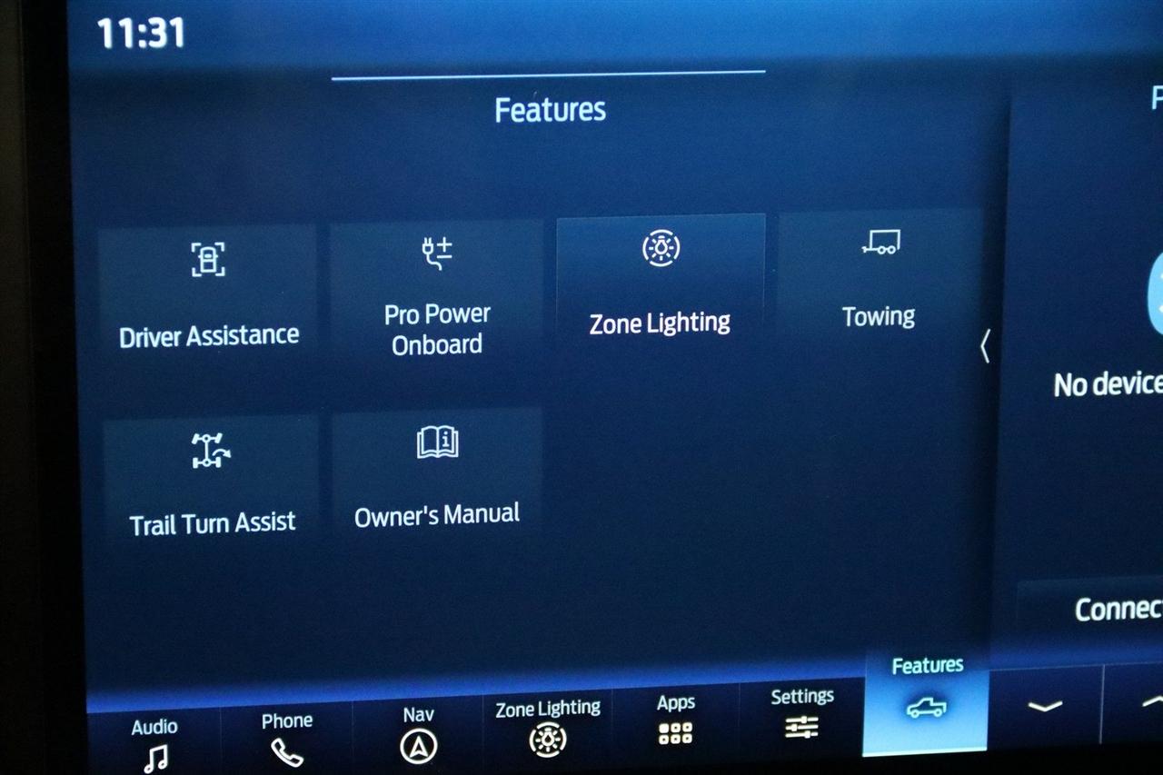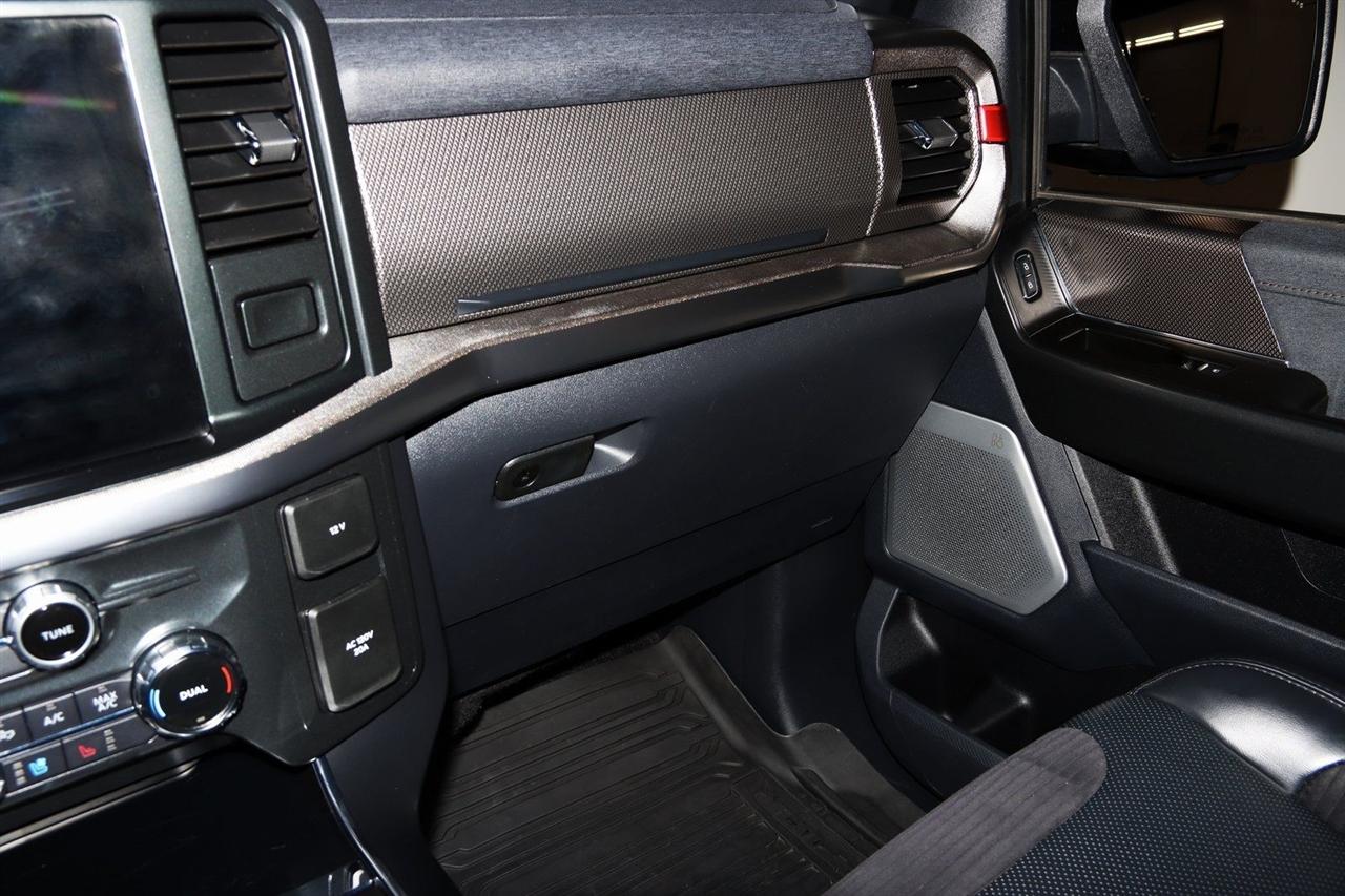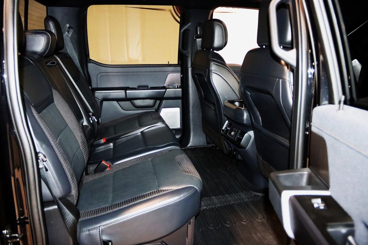 Navigation, Bluetooth, Back Up Camera, Sun/Moon Roof, Towing, Heated Seats, 17" Cast Aluminum Wheels, 360 Degree Camera, 4-Wheel Disc Brakes, 7 Speakers, ABS brakes, Adaptive suspension, Adjustable pedals, Air Conditioning, Alloy wheels, AM/FM radio: SiriusXM with 360L, Auto High-beam Headlights, Auto Start-Stop Removal, Auto-dimming door mirrors, Auto-dimming Rear-View mirror, Automatic temperature control, Brake assist, Bumpers: body-color, Compass, Connected Built-In Navigation, Convenience Package, Delay-off headlights, Driver door bin, Driver vanity mirror, Dual front impact airbags, Dual front side impact airbags, Electronic Locking w/4.10 Axle Ratio, Electronic Stability Control, Emergency communication system, Equipment Group 801A High, Exterior Parking Camera Rear, Forward Sensing System, Front anti-roll bar, Front Bucket Seats, Front Center Armrest, Front dual zone A/C, Front reading lights, Front wheel independent suspension, Front-Axle w/Torsen Differential, Fully automatic headlights, GVWR: 7,050 lbs Payload Package, Heated door mirrors, Heated front seats, Heated Steering Wheel, Illuminated entry, Integrated Trailer Brake Controller, Interior Work Surface, Lane Departure Warning System, Leather Trim Seats, Leather Trim Seats w/Heated 2nd Row, LED Projector w/Dynamic Bending Headlamps, Low tire pressure warning, Memory seat, Moonroof & Tailgate, Navigation System, Navigation system: Connected Navigation, Occupant sensing airbag, Outside temperature display, Overhead airbag, Overhead console, Panic alarm, Partitioned Lockable Fold-Flat Storage, Passenger door bin, Passenger vanity mirror, Pedal memory, Power door mirrors, Power driver seat, Power passenger seat, Power steering, Power Tailgate, Power Tilt/Telescoping Steering Column w/Memory, Power windows, Pro Power Onboard - 2KW, Radio data system, Radio: AM/FM SiriusXM w/360L, Radio: B&O Unleashed Sound System by Bang & Olufsen, Rain-Sensing Wipers, Rear reading lights, Rear step bumper, Rear window defroster, Remote keyless entry, Rigid LED Fog Lamp, Security system, Speed control, Speed-sensing steering, Split folding rear seat, Steering wheel mounted audio controls, SYNC 4 w/Enhanced Voice Recognition, Tachometer, Tailgate Applique FORD, Telescoping steering wheel, Tilt steering wheel, Torsen Package, Tough Bed Spray-In Bedliner, Tow Technology Package, Traction control, Trip computer, Turn signal indicator mirrors, Twin Panel Moonroof, Universal Garage Door Opener, Variably intermittent wipers, Ventilated front seats, Wireless Charging Pad. CARFAX One-Owner.