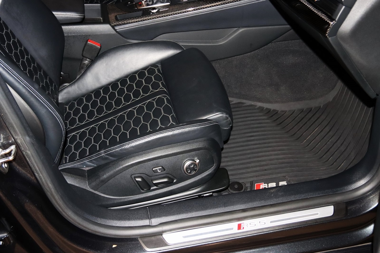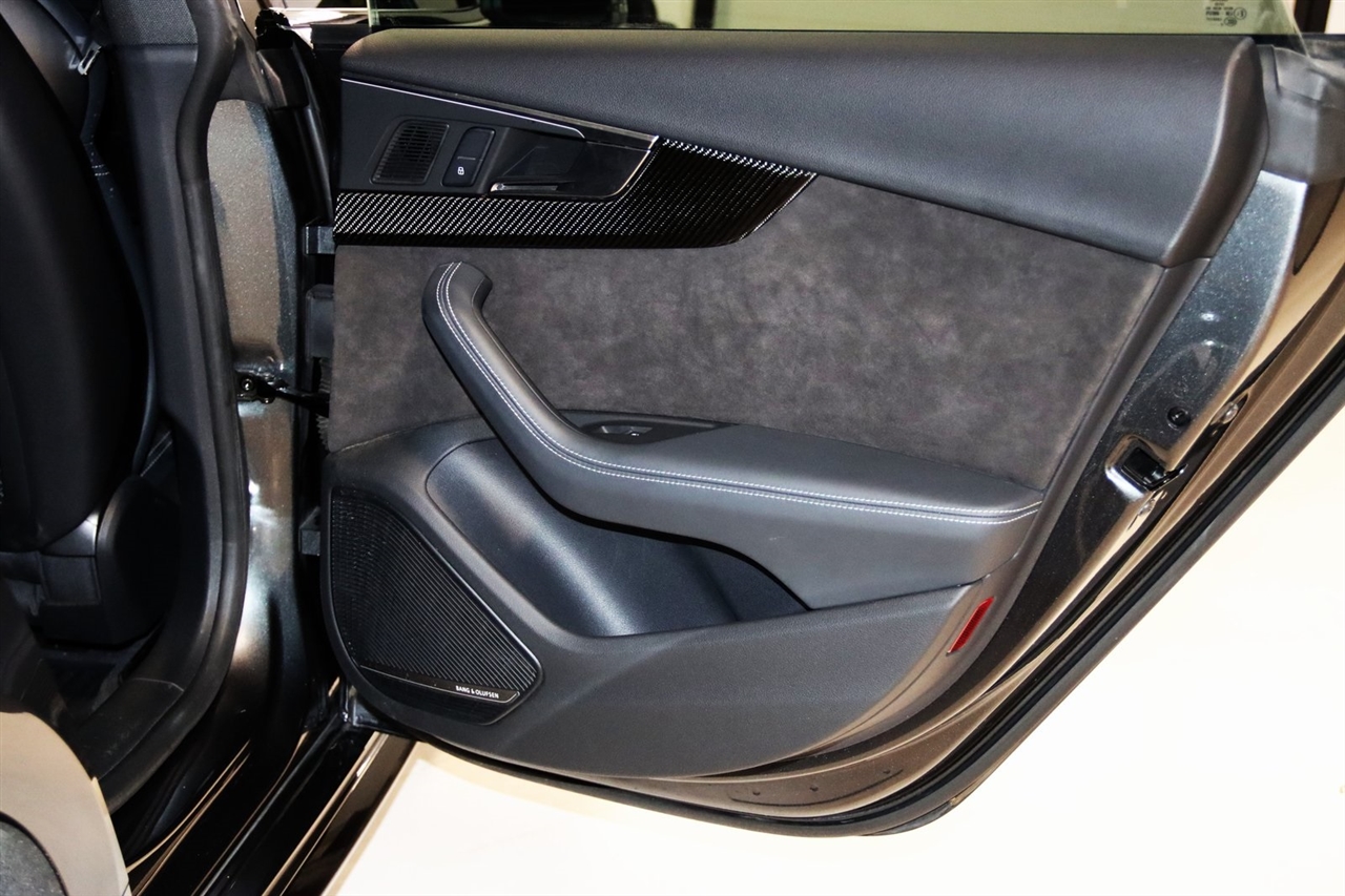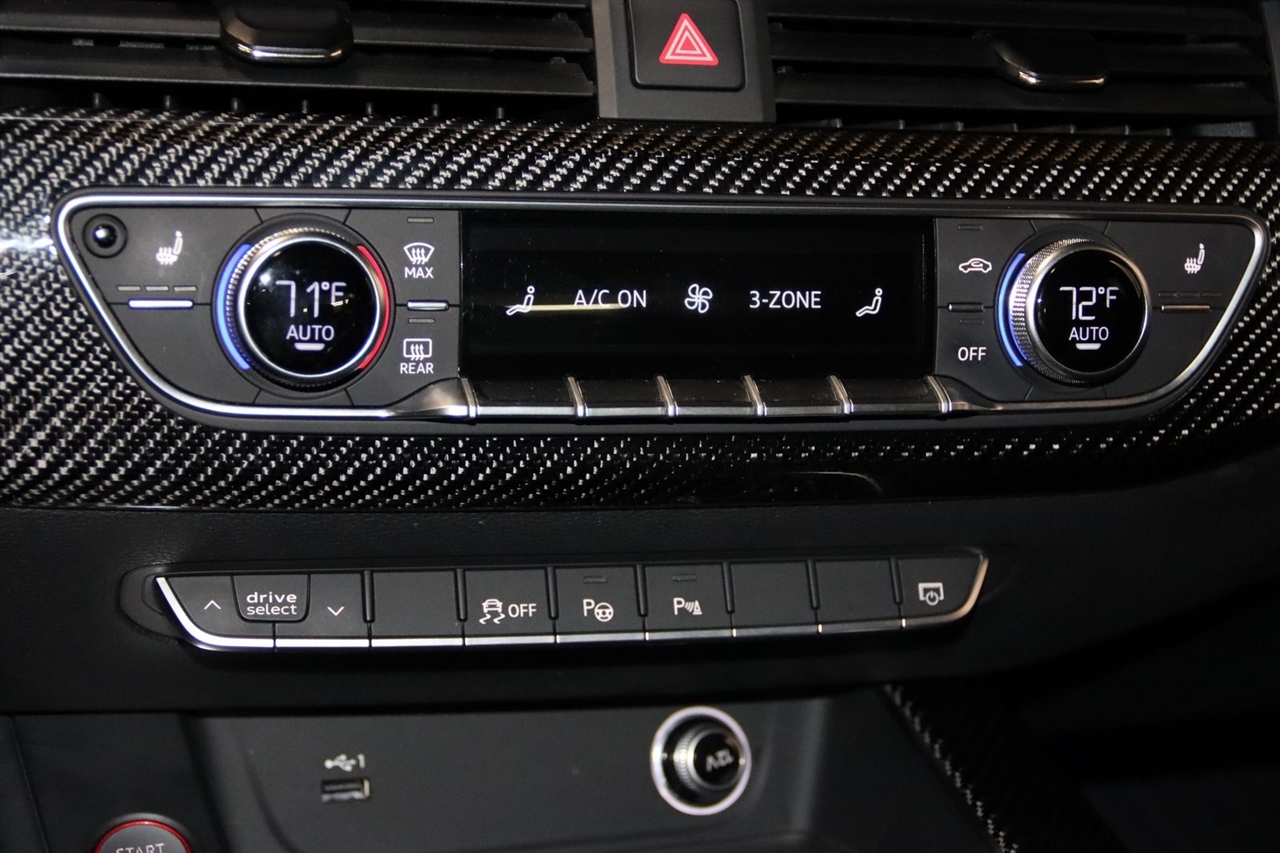 Navigation, Bluetooth, Back Up Camera, Sun/Moon Roof, Heated Seats, Touch Screen, 10 Speakers, 4-Wheel Disc Brakes, ABS brakes, Adaptive Cruise Control w/Traffic Jam Assist, Air Conditioning, Alloy wheels, AM/FM radio: SiriusXM, Audi Active Lane Assist, Audi smartphone interface (Apple CarPlay/Android Auto), Auto-dimming door mirrors, Auto-dimming Rear-View mirror, Automatic temperature control, Bang & Olufsen Sound System w/3D Sound, Black Optic Package, Brake assist, Bumpers: body-color, Compass, Delay-off headlights, Delete Front License Plate Holder, Driver door bin, Driver vanity mirror, Dual front impact airbags, Dual front side impact airbags, Dynamic Package, Dynamic Steering, Electronic Stability Control, Emergency communication system: Audi connect CARE, Exterior Parking Camera Rear, Fine Nappa Leather Package, Fine Nappa Leather Seating Surfaces, Four wheel independent suspension, Front anti-roll bar, Front Bucket Seats, Front Center Armrest, Front dual zone A/C, Front fog lights, Front reading lights, Garage door transmitter: HomeLink, Head-Up Display, Headlight cleaning, Heated door mirrors, Heated front seats, Heated S Sport Front Seats, High Gloss Black Exterior Kit w/quattro Script, High-Beam Assistant, High-Gloss Black Exterior Mirror Housings, Illuminated entry, Knee airbag, Leather Shift Knob, Leather steering wheel, Leather/Alcantara Seating Surfaces, LED Interior Lighting Plus Package, Low tire pressure warning, Memory seat, Navigation System, Navigation system: Audi Navigation Plus, Occupant sensing airbag, Outside temperature display, Overhead airbag, Overhead console, Panic alarm, Park Steering Assist, Passenger door bin, Passenger vanity mirror, Power door mirrors, Power driver seat, Power Liftgate, Power moonroof, Power passenger seat, Power steering, Power windows, Radio data system, Radio: Audi Sound System, Rain sensing wipers, Rear air conditioning, Rear anti-roll bar, Rear reading lights, Rear seat center armrest, Rear window defroster, Red Brake Calipers, Remote keyless entry, RS Driver Assistance Package, RS Sport Exhaust System w/Black Tips, RS Sport Suspension Plus w/Dynamic Ride Control, Security system, Speed control, Speed-sensing steering, Speed-Sensitive Wipers, Split folding rear seat, Spoiler, Sport steering wheel, Steering wheel mounted audio controls, Tachometer, Telescoping steering wheel, Tilt steering wheel, Top View Camera System, Traction control, Traffic Sign Recognition, Trip computer, Turn signal indicator mirrors, Variably intermittent wipers, Wheels: 20" 5-Arm-Flag Forged Design, Wheels: 20" 5-Arm-Peak Milled & Forged Design. Clean CARFAX. 17/26 City/Highway MPG