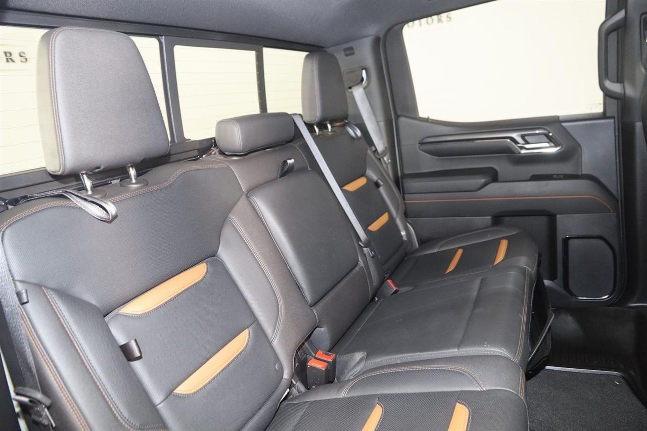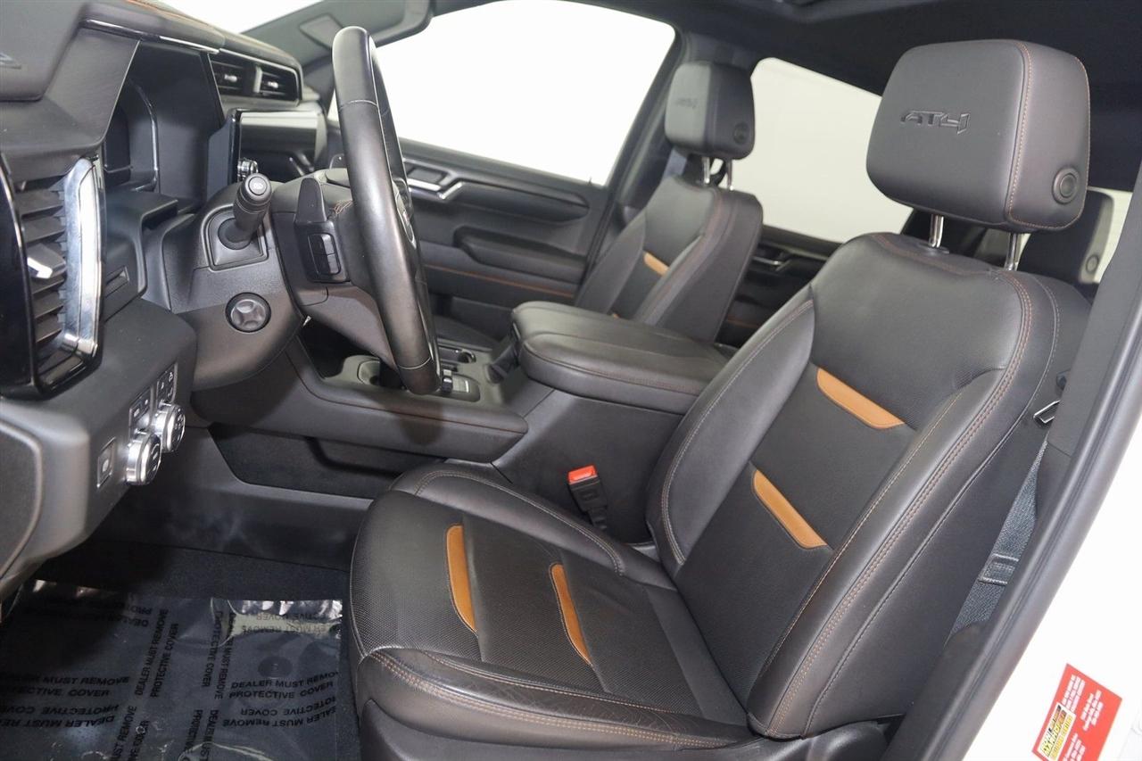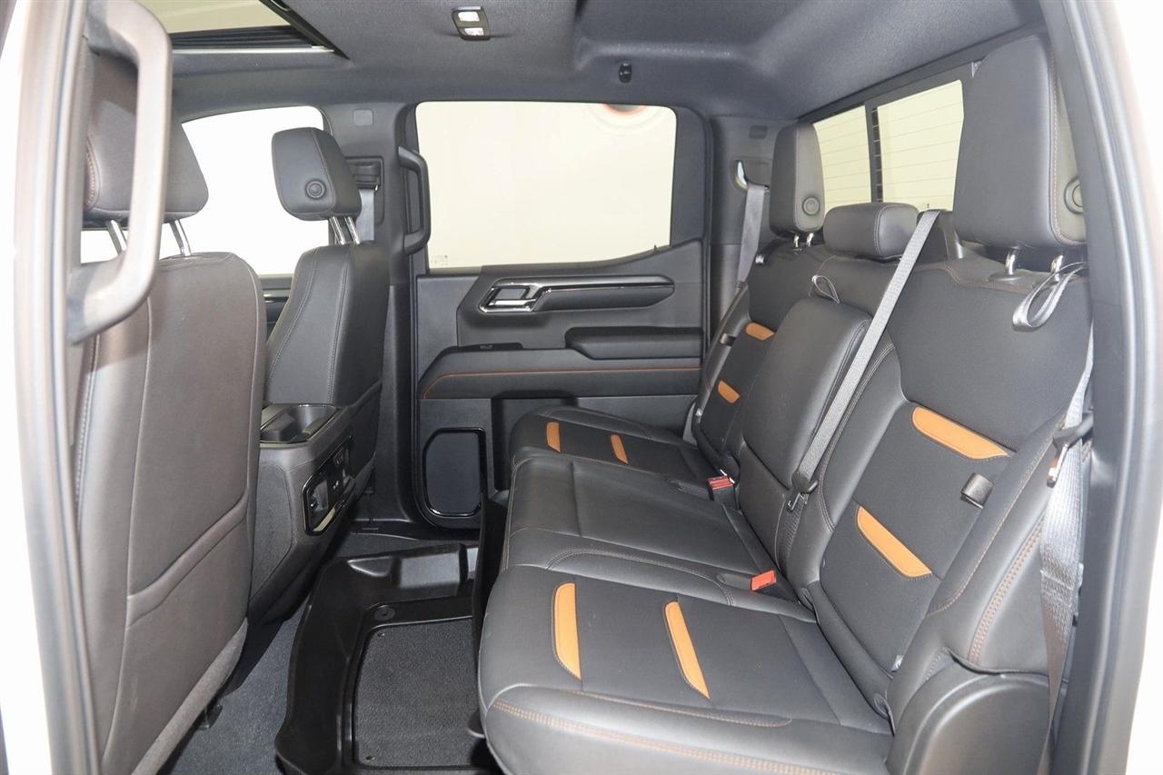 Navigation, Back Up Camera, Bluetooth, Sun/Moon Roof, Parking Sensors, Remote Engine Start, Keyless Entry, Towing, Running Boards, Heated Seats, Touch Screen, Heated Front Seats, Heated Front & Rear Seats, Heated Steering Wheel, Ventilated Front Seats, Rear Heated Seats, Blind Spot, Memory Driver Seat, Apple CarPlay/Android Auto, Bed Liner, 4WD, Sierra 1500 AT4, 3.0L I6, 10-Speed Automatic, 4WD, Summit White, Jet Black With Kalahari Accents Leather, 120-Volt Interior Power Outlet, 2 Charge/Data USB Ports Inside Center Console, 2 Type-C Charge-Only Rear USB Ports, 2 USB Ports, 220 Amp Alternator, AT4 Preferred Package, Auto-Locking Rear Differential, Black Chrome Header & Grille Insert Bars, Color-Keyed Carpeting Floor Covering, Deep-Tinted Glass, Electric Rear-Window Defogger, Floor-Mounted Center Console, Front Prem Floor Liners w/Removable Carpet Insert, Front Rain-Sensing Wipers, GMC Connected Access Capable, HD Surround Vision, Heated 2nd Row Outboard Seats, Heated Driver & Front Outboard Passenger Seating, Heavy-Duty Air Filter, Hill Descent Control, Hitch View, In-Vehicle Trailering System App, Integrated Trailer Brake Controller, Keyless Open & Start, LED Cargo Area Lighting, OnStar & GMC Connected Services Capable, Perimeter Lighting, Power Door Locks, Power Front Passenger Windows w/Express Up/Down, Power Front Windows w/Driver Express Up/Down, Power Rake & Telescoping Steering Column, Power Rear Windows w/Express Down, Power Sliding Rear Window w/Rear Defogger, Preferred Equipment Group 4SB, Premium Bose 7-Speaker Sound System, Push Button Start, Rear Cross Traffic Braking, Rear Pedestrian Detection, Rear Wheelhouse Liners, Red Recovery Hooks, Remote Vehicle Starter System, SiriusXM w/360L, Spray-On Pickup Bedliner w/AT4 Logo, Steering Wheel Audio Controls, Theft Deterrent System (Unauthorized Entry), Trailer Camera Provisions, Trailer Side Blind Zone Alert, Trailering Package, Ultrasonic Front & Rear Park Assist, Universal Home Remote, Ventilated Driver & Front Passenger Seats, Wi-Fi Hotspot Capable, Wireless Charging.