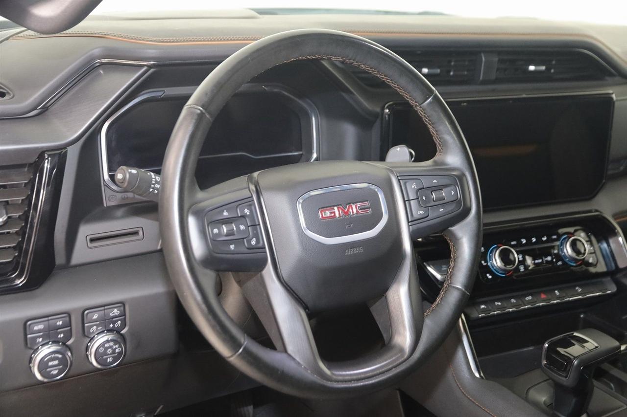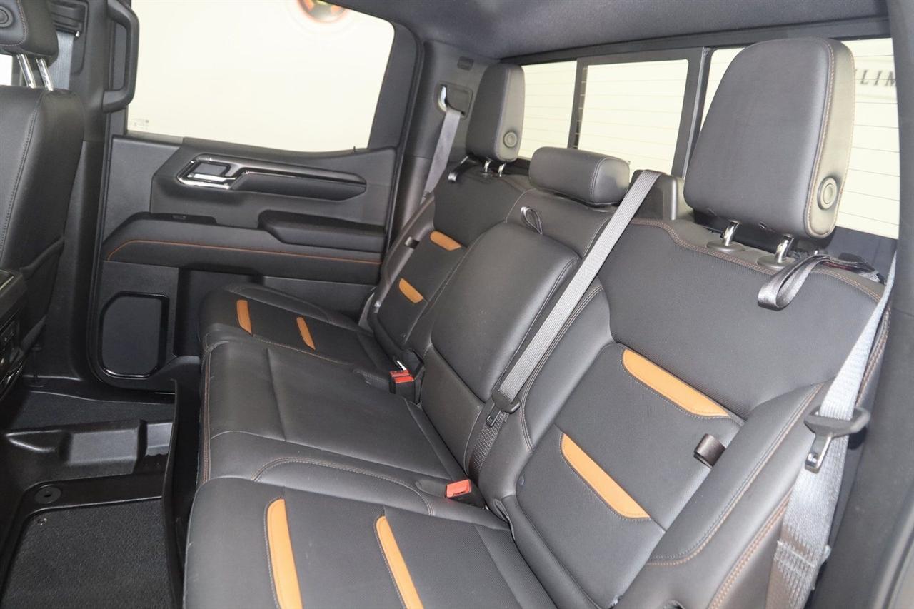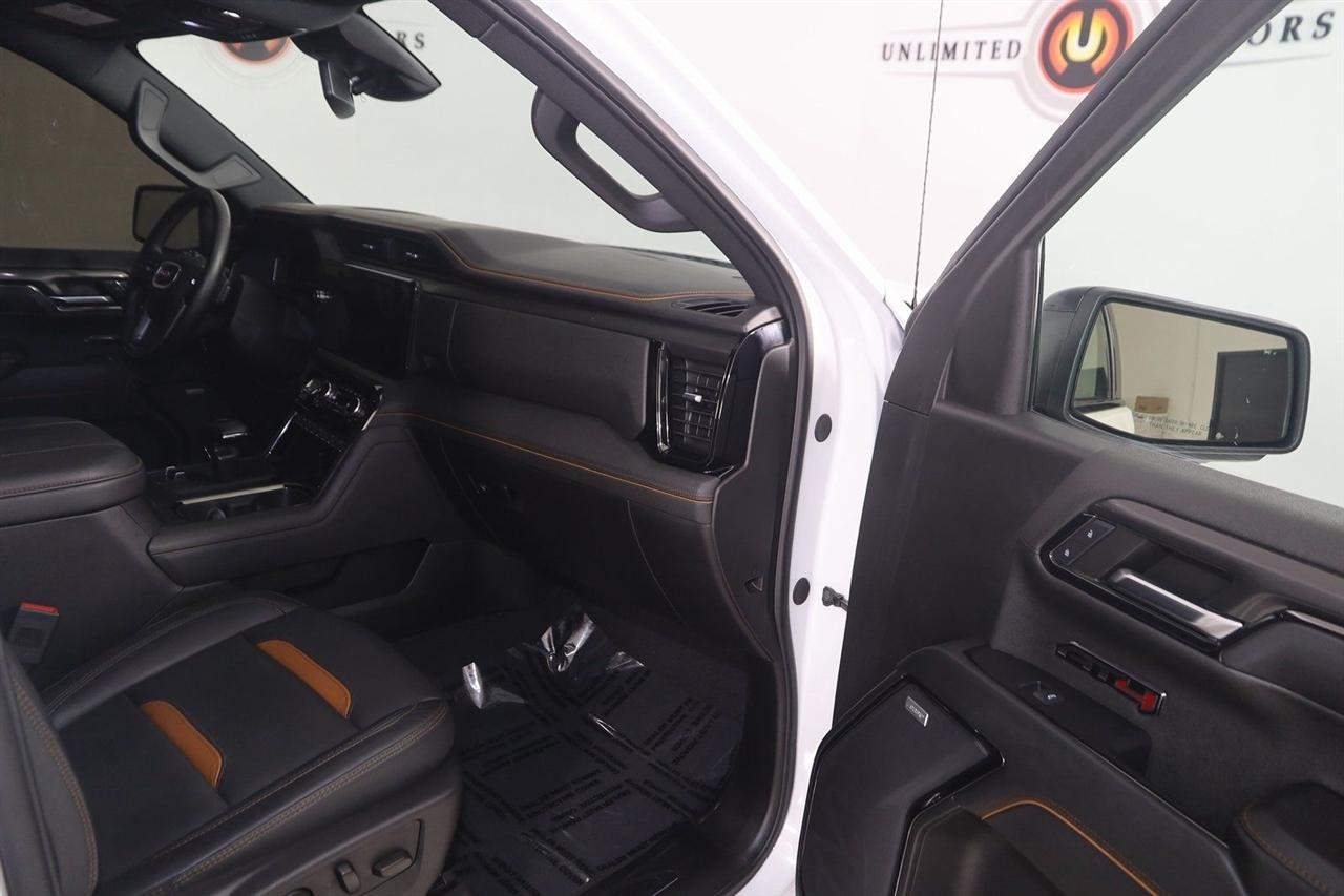 Navigation, Back Up Camera, Bluetooth, Sun/Moon Roof, Parking Sensors, Remote Engine Start, Keyless Entry, Towing, Running Boards, Heated Seats, Touch Screen, Heated Front Seats, Heated Front & Rear Seats, Heated Steering Wheel, Ventilated Front Seats, Rear Heated Seats, Blind Spot, Memory Driver Seat, Apple CarPlay/Android Auto, Bed Liner, 4WD, Sierra 1500 AT4, 3.0L I6, 10-Speed Automatic, 4WD, Summit White, Jet Black With Kalahari Accents Leather, 120-Volt Interior Power Outlet, 2 Charge/Data USB Ports Inside Center Console, 2 Type-C Charge-Only Rear USB Ports, 2 USB Ports, 220 Amp Alternator, AT4 Preferred Package, Auto-Locking Rear Differential, Black Chrome Header & Grille Insert Bars, Color-Keyed Carpeting Floor Covering, Deep-Tinted Glass, Electric Rear-Window Defogger, Floor-Mounted Center Console, Front Prem Floor Liners w/Removable Carpet Insert, Front Rain-Sensing Wipers, GMC Connected Access Capable, HD Surround Vision, Heated 2nd Row Outboard Seats, Heated Driver & Front Outboard Passenger Seating, Heavy-Duty Air Filter, Hill Descent Control, Hitch View, In-Vehicle Trailering System App, Integrated Trailer Brake Controller, Keyless Open & Start, LED Cargo Area Lighting, OnStar & GMC Connected Services Capable, Perimeter Lighting, Power Door Locks, Power Front Passenger Windows w/Express Up/Down, Power Front Windows w/Driver Express Up/Down, Power Rake & Telescoping Steering Column, Power Rear Windows w/Express Down, Power Sliding Rear Window w/Rear Defogger, Preferred Equipment Group 4SB, Premium Bose 7-Speaker Sound System, Push Button Start, Rear Cross Traffic Braking, Rear Pedestrian Detection, Rear Wheelhouse Liners, Red Recovery Hooks, Remote Vehicle Starter System, SiriusXM w/360L, Spray-On Pickup Bedliner w/AT4 Logo, Steering Wheel Audio Controls, Theft Deterrent System (Unauthorized Entry), Trailer Camera Provisions, Trailer Side Blind Zone Alert, Trailering Package, Ultrasonic Front & Rear Park Assist, Universal Home Remote, Ventilated Driver & Front Passenger Seats, Wi-Fi Hotspot Capable, Wireless Charging.