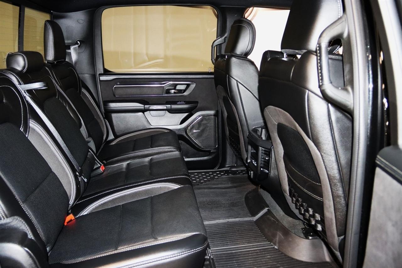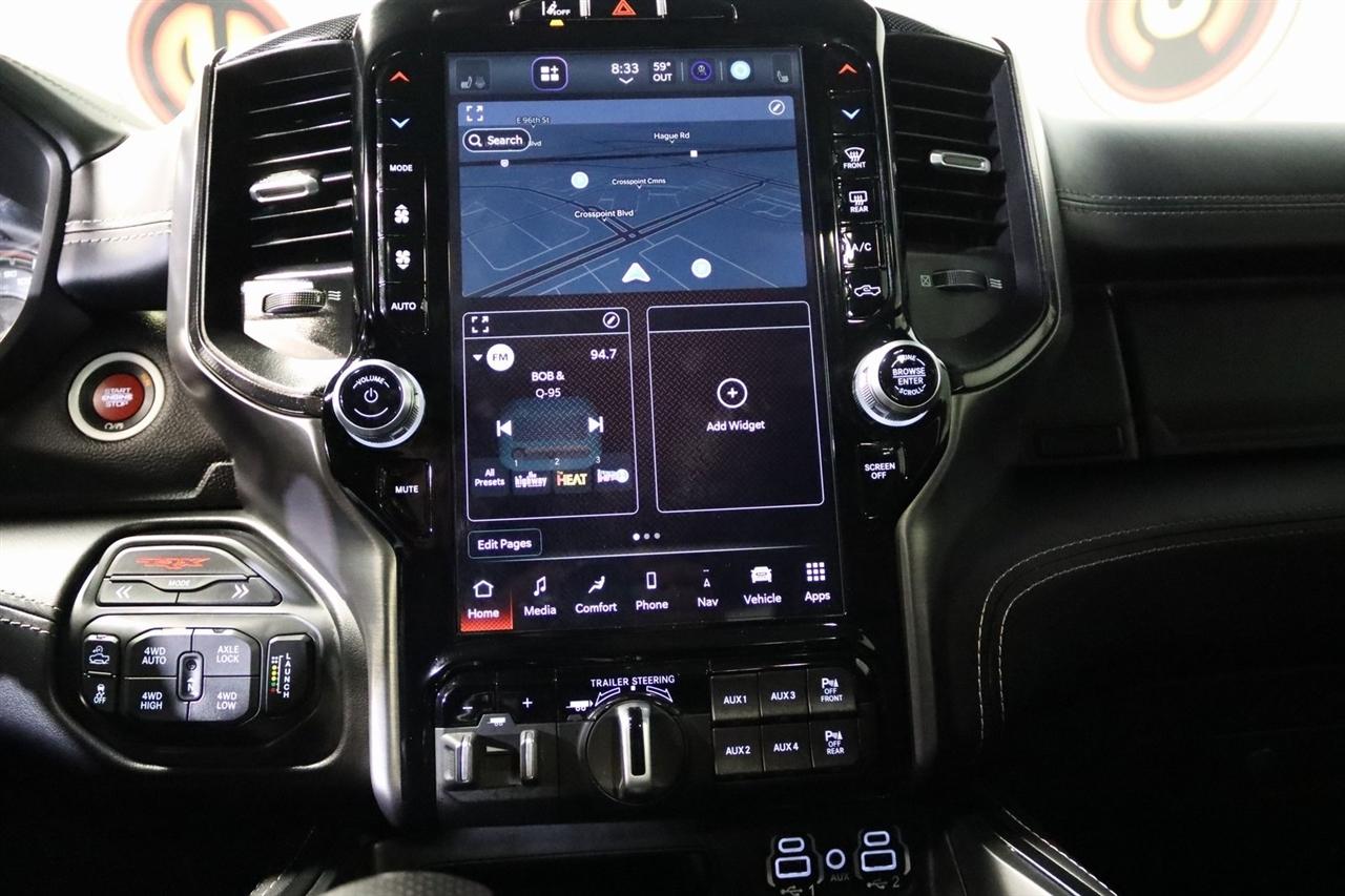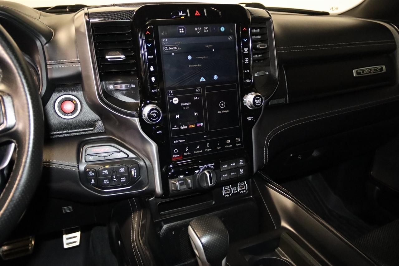 Navigation, Bluetooth, Back Up Camera, Panoramic Roof, Towing, Heated Seats, Touch Screen, 10 Speakers, 2-Door Passive Entry, Front Door Locks, 3.55 Rear Axle Ratio, 4 Way Front Headrests, 4-Wheel Disc Brakes, ABS brakes, Adaptive Cruise Control w/Stop & Go, Adaptive suspension, Advanced Safety Group, Air Conditioning, Alloy wheels, AM/FM radio: SiriusXM with 360L, Apple CarPlay/Android Auto, Auto High-beam Headlights, Auto-dimming door mirrors, Auto-dimming Rear-View mirror, Automatic temperature control, Bed Utility Group, Black Exterior Mirrors, Blind Spot & Cross Path Detection, Body Color Door Handles, Brake assist, Bucket Seats, Center Console Parts Module, Cloth/Vinyl Bucket Seats, Compass, Delay-off headlights, Digital Rearview Mirror, Dome Dual LED Reading Lamp, Driver door bin, Driver Seat Memory, Driver/Passenger Wrapped Assist Handles, Dual front impact airbags, Dual front side impact airbags, Dual-Pane Panoramic Sunroof, Electronic Stability Control, Exterior Mirrors Courtesy Lamps, Exterior Mirrors w/Heating Element, Exterior Mirrors w/Memory, Exterior Mirrors w/Supplemental Signals, Front anti-roll bar, Front Bucket Seats, Front Center Armrest w/Storage, Front Door Accent Lighting, Front dual zone A/C, Front fog lights, Front reading lights, Front Seat Back Map Pockets, Front wheel independent suspension, Full Length Premium Upgraded Floor Console, Fully automatic headlights, harman/kardon 19 Speaker Premium Sound, Heads-Up Display, Heated door mirrors, Heated Front Seats, Heated Second Row Seats, Heated Steering Wheel, Illuminated entry, IP LED Ambient Light Pipe, Lane Keep Assist, Leather Shift Knob, Leather steering wheel, Leather Trimmed Bucket Seats, Leather/Suede Flat-Bottom Steering Wheel, LED CHMSL Lamp, Low tire pressure warning, Luxury Front Door Trim Panel, Manufacturer's Statement of Origin, MOPAR 4 Adjustable Cargo Tie-Down Hooks, MOPAR Bright Pedal Kit, MOPAR Deployable Bed Step, MOPAR Off-Road Style Running Boards, MOPAR Spray In Bedliner, Navigation System, Occupant sensing airbag, Outside temperature display, Overhead airbag, Overhead console, Panic alarm, ParkSense Front/Rear Park Assist w/Stop, ParkView Rear Back-Up Camera, Passenger door bin, Passenger vanity mirror, Pedestrian Emergency Braking, Pick-Up Box Lighting, Power 4-Way Driver Lumbar Adjust, Power 4-Way Passenger Lumbar Adjust, Power 8-Way Driver & Passenger Seats, Power Adjustable Pedals w/Memory, Power door mirrors, Power driver seat, Power steering, Power windows, Power-Folding Mirrors, Premium Wrapped IP Bezel, Quick Order Package 29Y, Radio data system, Radio: Uconnect 5 Nav w/12.0" Display, Radio/Driver Seat/Mirrors/Pedals Memory, Rain Sensitive Windshield Wipers, Rear 60/40 Folding Seat, Rear 60/40 Folding Split Recline Seat, Rear Door Accent Lighting, Rear seat center armrest, Rear step bumper, Rear Underseat Compartment Storage, Rear Window Defroster, Remote keyless entry, Remote Tailgate Release, Security system, Speed control, Split folding rear seat, Sport steering wheel, Steering wheel mounted audio controls, Sun Visors w/Illuminated Vanity Mirrors, Surround View Camera System, Tachometer, Tailgate Ajar Warning Lamp, Telescoping steering wheel, Tilt steering wheel, Traction control, Trailer Brake Control, Trailer Light Check, Trailer Reverse Steering Control, Trailer Tire Pressure Monitoring System, Trailer Tow Group, Tri-Fold Tonneau Cover, Trip computer, TRX Level 2 Equipment Group, Turn signal indicator mirrors, Universal Garage Door Opener, Variably intermittent wipers, Ventilated Front Seats, Ventilated Rear Seats, Voltmeter, Wheels: 18" x 9" Black Paint/Polish Aluminum, Wireless Charging Pad. CARFAX One-Owner. Clean CARFAX. Priced below KBB Fair Purchase Price!