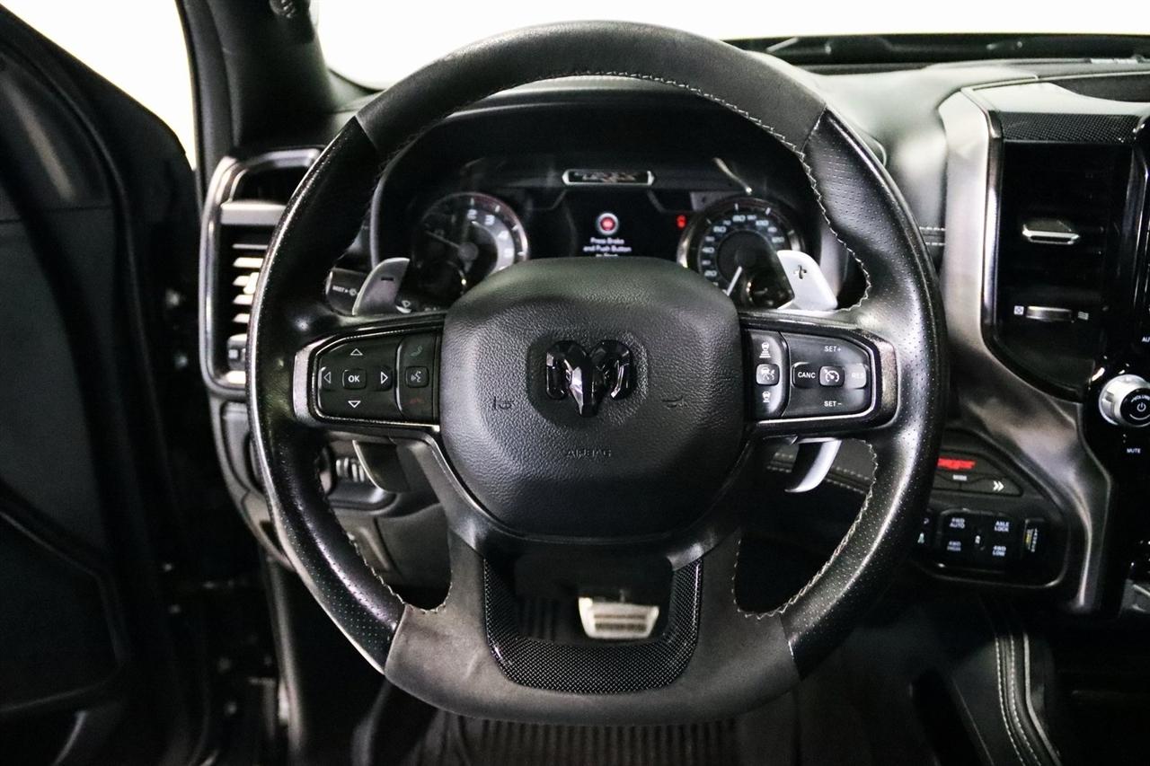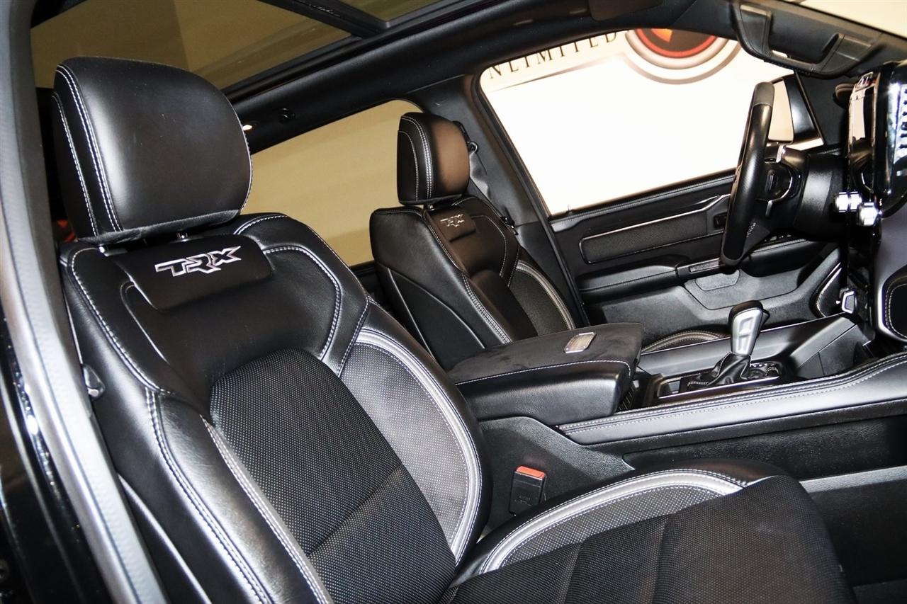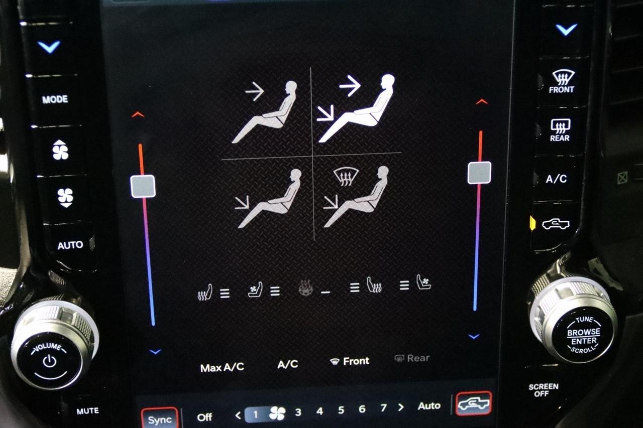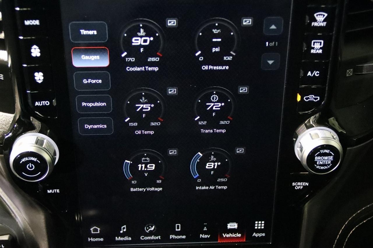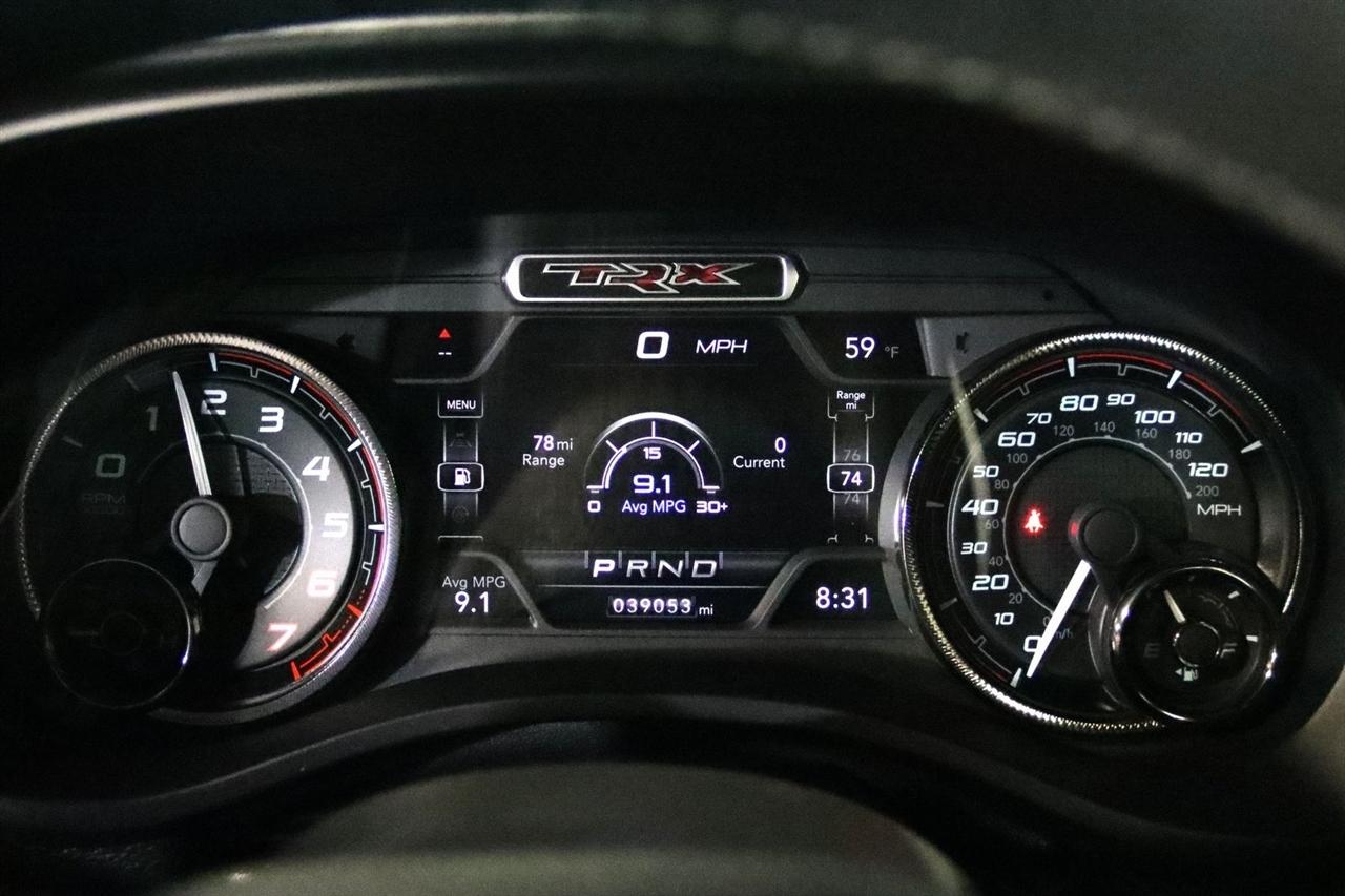 Navigation, Bluetooth, Back Up Camera, Panoramic Roof, Towing, Heated Seats, Touch Screen, 10 Speakers, 2-Door Passive Entry, Front Door Locks, 3.55 Rear Axle Ratio, 4 Way Front Headrests, 4-Wheel Disc Brakes, ABS brakes, Adaptive Cruise Control w/Stop & Go, Adaptive suspension, Advanced Safety Group, Air Conditioning, Alloy wheels, AM/FM radio: SiriusXM with 360L, Apple CarPlay/Android Auto, Auto High-beam Headlights, Auto-dimming door mirrors, Auto-dimming Rear-View mirror, Automatic temperature control, Bed Utility Group, Black Exterior Mirrors, Blind Spot & Cross Path Detection, Body Color Door Handles, Brake assist, Bucket Seats, Center Console Parts Module, Cloth/Vinyl Bucket Seats, Compass, Delay-off headlights, Digital Rearview Mirror, Dome Dual LED Reading Lamp, Driver door bin, Driver Seat Memory, Driver/Passenger Wrapped Assist Handles, Dual front impact airbags, Dual front side impact airbags, Dual-Pane Panoramic Sunroof, Electronic Stability Control, Exterior Mirrors Courtesy Lamps, Exterior Mirrors w/Heating Element, Exterior Mirrors w/Memory, Exterior Mirrors w/Supplemental Signals, Front anti-roll bar, Front Bucket Seats, Front Center Armrest w/Storage, Front Door Accent Lighting, Front dual zone A/C, Front fog lights, Front reading lights, Front Seat Back Map Pockets, Front wheel independent suspension, Full Length Premium Upgraded Floor Console, Fully automatic headlights, harman/kardon 19 Speaker Premium Sound, Heads-Up Display, Heated door mirrors, Heated Front Seats, Heated Second Row Seats, Heated Steering Wheel, Illuminated entry, IP LED Ambient Light Pipe, Lane Keep Assist, Leather Shift Knob, Leather steering wheel, Leather Trimmed Bucket Seats, Leather/Suede Flat-Bottom Steering Wheel, LED CHMSL Lamp, Low tire pressure warning, Luxury Front Door Trim Panel, Manufacturer's Statement of Origin, MOPAR 4 Adjustable Cargo Tie-Down Hooks, MOPAR Bright Pedal Kit, MOPAR Deployable Bed Step, MOPAR Off-Road Style Running Boards, MOPAR Spray In Bedliner, Navigation System, Occupant sensing airbag, Outside temperature display, Overhead airbag, Overhead console, Panic alarm, ParkSense Front/Rear Park Assist w/Stop, ParkView Rear Back-Up Camera, Passenger door bin, Passenger vanity mirror, Pedestrian Emergency Braking, Pick-Up Box Lighting, Power 4-Way Driver Lumbar Adjust, Power 4-Way Passenger Lumbar Adjust, Power 8-Way Driver & Passenger Seats, Power Adjustable Pedals w/Memory, Power door mirrors, Power driver seat, Power steering, Power windows, Power-Folding Mirrors, Premium Wrapped IP Bezel, Quick Order Package 29Y, Radio data system, Radio: Uconnect 5 Nav w/12.0" Display, Radio/Driver Seat/Mirrors/Pedals Memory, Rain Sensitive Windshield Wipers, Rear 60/40 Folding Seat, Rear 60/40 Folding Split Recline Seat, Rear Door Accent Lighting, Rear seat center armrest, Rear step bumper, Rear Underseat Compartment Storage, Rear Window Defroster, Remote keyless entry, Remote Tailgate Release, Security system, Speed control, Split folding rear seat, Sport steering wheel, Steering wheel mounted audio controls, Sun Visors w/Illuminated Vanity Mirrors, Surround View Camera System, Tachometer, Tailgate Ajar Warning Lamp, Telescoping steering wheel, Tilt steering wheel, Traction control, Trailer Brake Control, Trailer Light Check, Trailer Reverse Steering Control, Trailer Tire Pressure Monitoring System, Trailer Tow Group, Tri-Fold Tonneau Cover, Trip computer, TRX Level 2 Equipment Group, Turn signal indicator mirrors, Universal Garage Door Opener, Variably intermittent wipers, Ventilated Front Seats, Ventilated Rear Seats, Voltmeter, Wheels: 18" x 9" Black Paint/Polish Aluminum, Wireless Charging Pad. CARFAX One-Owner. Clean CARFAX. Priced below KBB Fair Purchase Price!