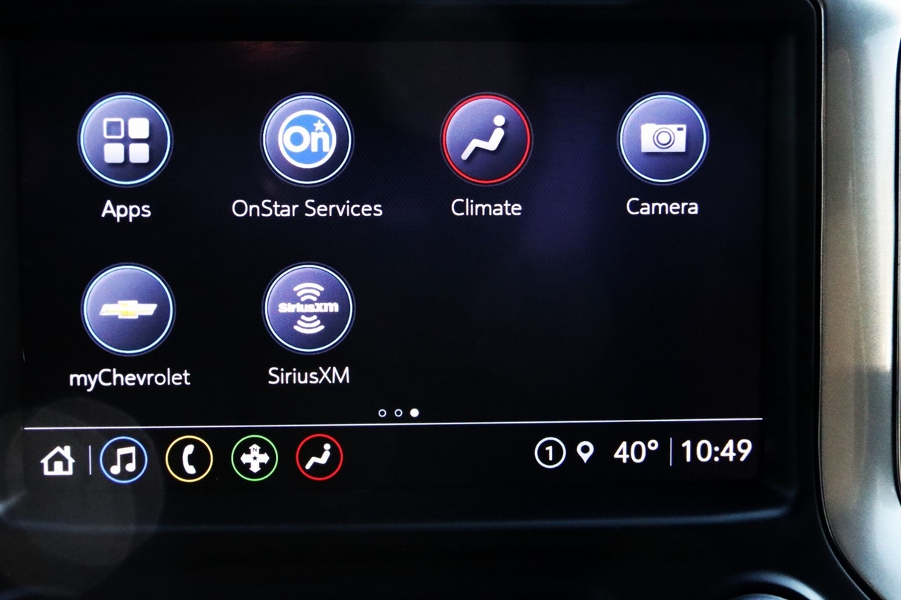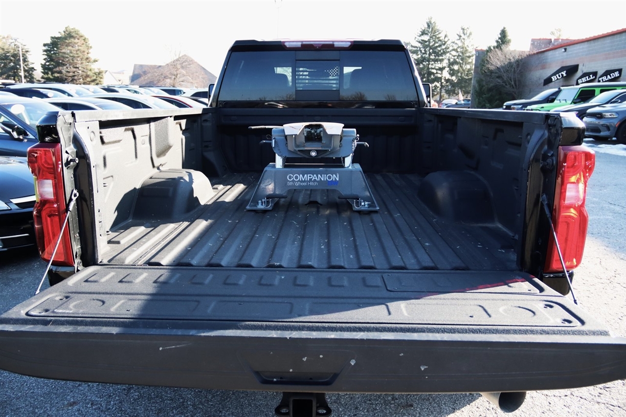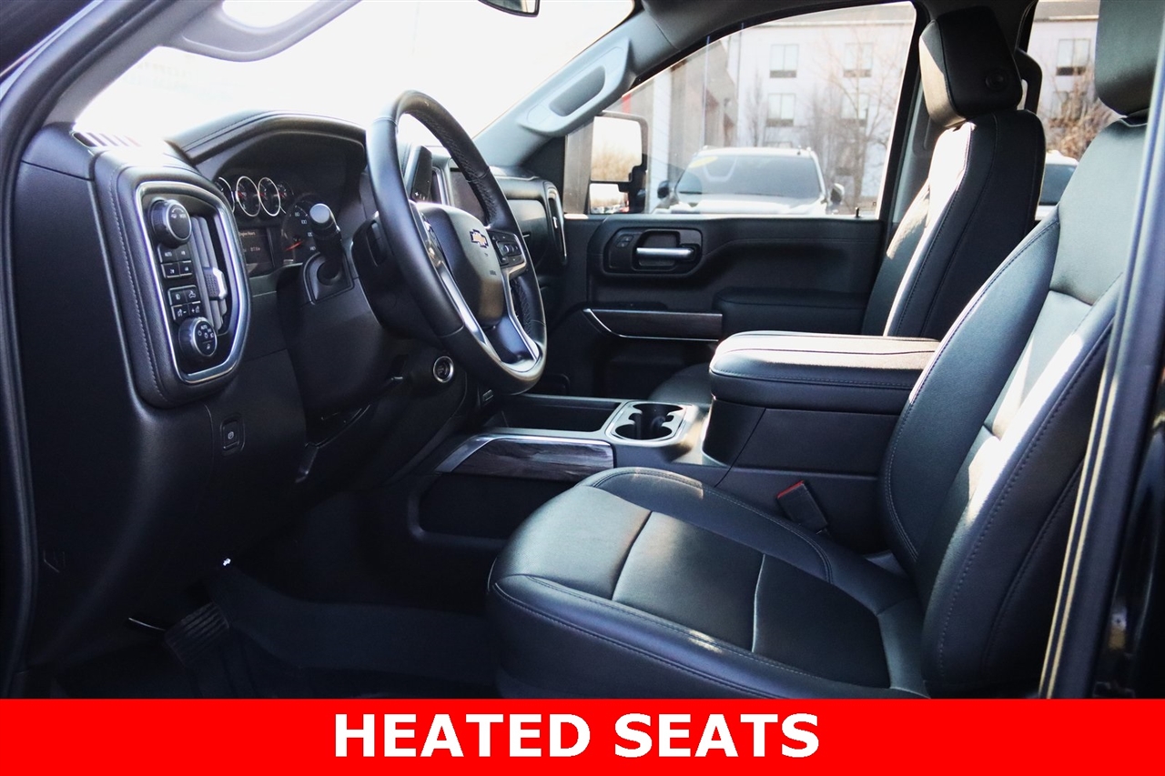 Navigation, Bluetooth, Back Up Camera, Towing, Heated Seats, Touch Screen, 10-Way Power Driver Seat Adjuster w/Lumbar, 10-Way Power Passenger Seat Adjuster w/Lumbar, 12-Volt Rear Auxiliary Power Outlet, 120-Volt Bed Mounted Power Outlet, 120-Volt Instrument Panel Power Outlet, 170 Amp Alternator, 2 USB Ports (First Row), 2 USB Ports Inside Console, 2-Speed Active Transfer Case, 220 Amp Alternator, 2nd Row Dual USB Charge-Only Ports, 3.42 Rear Axle Ratio, 4-Wheel Disc Brakes, 4.2" Diagonal Color Display Driver Info Center, 6 Speakers, 6-Speaker Audio System Feature, ABS brakes, Air Conditioning, AM/FM radio: SiriusXM with 360L, Apple CarPlay/Android Auto, Auto-dimming door mirrors, Auto-Dimming Inside Rear-View Mirror, Auto-dimming Rear-View mirror, Automatic temperature control, Bed View Camera w/2 Trailer Camera Provisions, Bluetooth® For Phone, Brake assist, Bumpers: chrome, Chevrolet Connected Access Capable, Chevytec Spray-On Black Bedliner, Chrome Front Grille Bar w/Chrome Grille Inserts, Chrome Mirror Caps, Color-Keyed Carpeting Floor Covering, Compass, Compass Located In Instrument Cluster, Deep-Tinted Glass, Delay-off headlights, Driver door bin, Driver Memory, Driver vanity mirror, Dual front impact airbags, Dual front side impact airbags, Durabed Pickup Bed, Electric Rear-Window Defogger, Electrical Lock Control Steering Column, Electronic Stability Control, Engine Block Heater, Exhaust Brake, EZ Lift Power Lock & Release Tailgate, Floor-Mounted Center Console, Front 40/20/40 Split-Bench Seats w/Lockable Storage, Front anti-roll bar, Front Bucket Seats, Front Center Armrest w/Storage, Front dual zone A/C, Front fog lights, Front LED Fog Lamps, Front reading lights, Front Rubberized Vinyl Floor Mats, Front wheel independent suspension, Fully automatic headlights, Gooseneck/5th Wheel Package, Gooseneck/5th Wheel Prep Package, HD Rear Vision Camera, Heated 2nd Row Outboard Seats, Heated door mirrors, Heated Driver & Front Outboard Passenger Seats, Heated front seats, Heated Steering Wheel, Heated steering wheel, Heavy-Duty 80 Amp Battery, Hitch Guidance w/Hitch View, Illuminated entry, Integrated Trailer Brake Controller, Keyless Open & Start, LED Cargo Area Lighting, Low tire pressure warning, LTZ Convenience Package, Manual Tilt/Telescoping Steering Column, Memory seat, Navigation System, Occupant sensing airbag, OnStar & Chevrolet Connected Services Capable, Outside temperature display, Overhead airbag, Overhead console, Panic alarm, Passenger door bin, Passenger vanity mirror, Perf Leather-Appointed Front Outboard Seat Trim, Power Door Locks, Power door mirrors, Power driver seat, Power Front Passenger Windows w/Express Up/Down, Power Front Windows w/Driver Express Up/Down, Power passenger seat, Power Rear Windows w/Express Down, Power Sliding Rear Window w/Defogger, Power steering, Power Tailgate, Power windows, Power-Adjustable Outside Mirrors, Preferred Equipment Group 1LZ, Premium audio system: Chevrolet Infotainment 3 Plus, Radio: Chevrolet Infotainment 3 Plus System, Rear reading lights, Rear Rubberized-Vinyl Floor Mats, Rear seat center armrest, Rear step bumper, Rear window defroster, Remote keyless entry, Remote Vehicle Starter System, Security system, SiriusXM w/360L, Speed control, Speed-sensing steering, Split folding rear seat, Standard Tailgate, Steering Wheel Audio Controls, Steering wheel mounted audio controls, Steering Wheel Mounted Electronic Cruise Control, Suspension Package, Tachometer, Telescoping steering wheel, Tilt steering wheel, Traction control, Trip computer, Turn signal indicator mirrors, Unauthorized Entry Theft-Deterrent System, Universal Home Remote, Up-Level Rear Seat w/Storage Package, Variably intermittent wipers, Ventilated Driver & Front Passenger Seats, Voltmeter, Wi-Fi Hotspot Capable, Winter Grille Cover, Wireless Phone Projection, Wrapped Steering Wheel. Clean CARFAX. Odometer is 12631 miles below market average! Priced below KBB Fair Purchase Price!