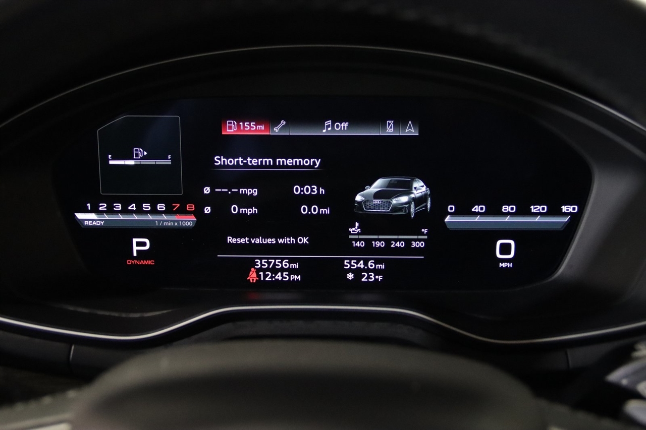 Navigation, Bluetooth, Back Up Camera, Panoramic Roof, Heated Seats, Touch Screen, 10 Speakers, 4-Wheel Disc Brakes, ABS brakes, Air Conditioning, Alloy wheels, AM/FM radio, Anti-whiplash front head restraints, Audi Connect NAV & PLUS, Auto High-beam Headlights, Auto-dimming Rear-View mirror, Automatic temperature control, Brake assist, Bumpers: body-color, Compass, Delay-off headlights, Driver door bin, Driver vanity mirror, Dual front impact airbags, Dual front side impact airbags, Electronic Stability Control, Emergency communication system: Audi connect CARE, Exterior Parking Camera Rear, Four wheel independent suspension, Front anti-roll bar, Front Bucket Seats, Front Center Armrest, Front dual zone A/C, Front fog lights, Front reading lights, Garage door transmitter: HomeLink, Genuine wood console insert, Genuine wood dashboard insert, Genuine wood door panel insert, Heated door mirrors, Heated front seats, Heated Front Sport Seats, Heated steering wheel, Illuminated entry, Knee airbag, Leather Seating Surfaces, Leather Shift Knob, Leather steering wheel, Low tire pressure warning, MMI Navigation Plus, Navigation Package, Navigation System, Occupant sensing airbag, Outside temperature display, Overhead airbag, Overhead console, Panic alarm, Passenger door bin, Passenger vanity mirror, Power adjustable front head restraints, Power door mirrors, Power driver seat, Power Liftgate, Power moonroof, Power passenger seat, Power steering, Power windows, Radio data system, Radio: Audi Sound System, Rain sensing wipers, Rear air conditioning, Rear anti-roll bar, Rear reading lights, Rear seat center armrest, Rear window defroster, Remote keyless entry, Speed control, Speed-sensing steering, Speed-Sensitive Wipers, Split folding rear seat, Steering wheel mounted audio controls, Tachometer, Telescoping steering wheel, Tilt steering wheel, Traction control, Traffic Sign Recognition, Trip computer, Turn signal indicator mirrors, Variably intermittent wipers, Wheels: 18" 5-Double-Spoke Design. CARFAX One-Owner. Clean CARFAX. 24/32 City/Highway MPG