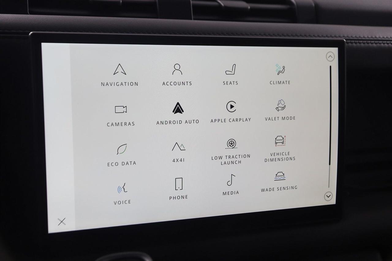Navigation, Back Up Camera, Bluetooth, Panoramic Roof, Heated Seats, Winch, Touch Screen, Heated Steering Wheel, Rear Heated Seats, Blind Spot, Apple CarPlay/Android Auto, 4D Sport Utility, 5.0L V8, 8-Speed Automatic, 4WD, Santorini Black Metallic, Black Leather, Navigation System, Navigation system: Connected Navigation PIVI Pro.