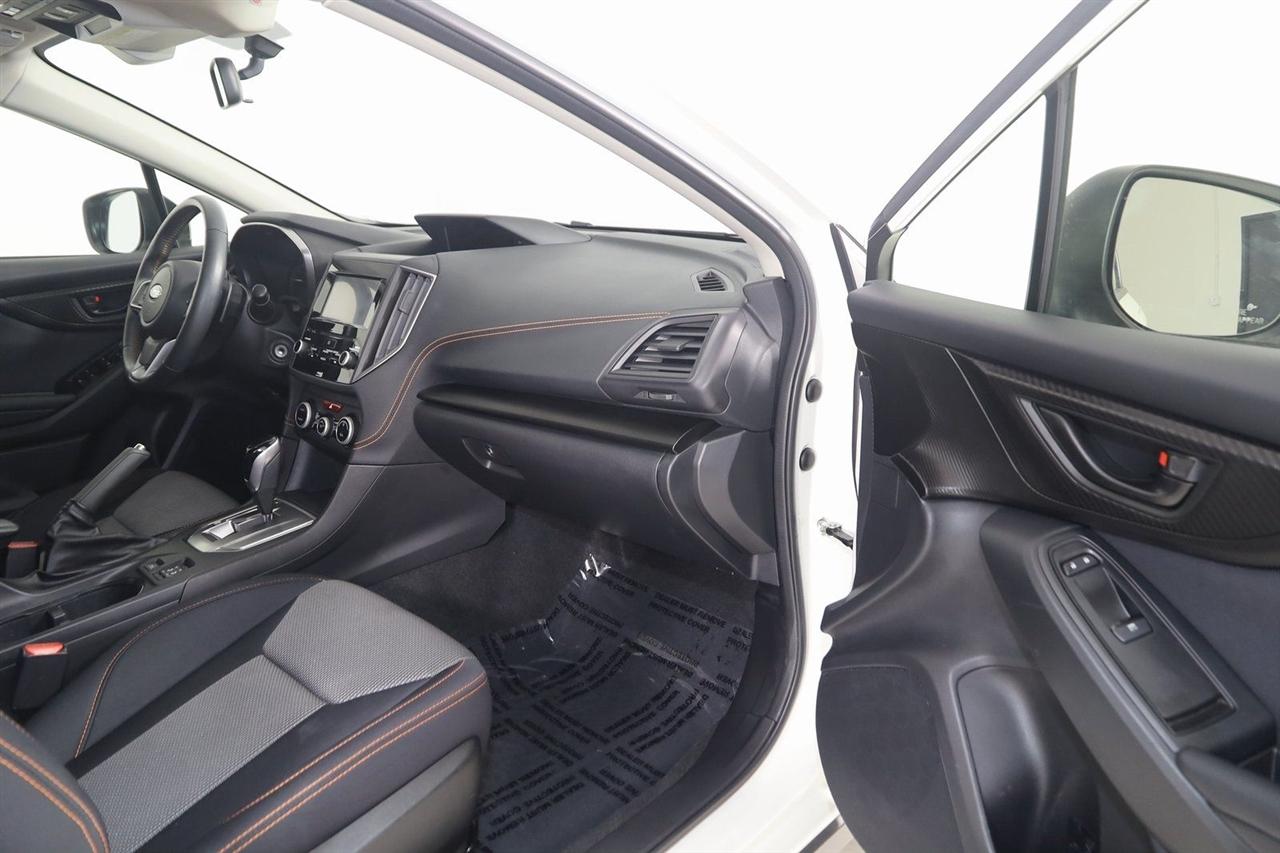 Back Up Camera, Bluetooth, Sun/Moon Roof, Heated Seats, Touch Screen, Apple CarPlay/Android Auto, Crosstrek Premium, 4D Sport Utility, 2.0L 4-Cylinder DOHC 16V, Lineartronic CVT, AWD, Crystal White Pearl, Black W/Orange Stitching Cloth, EyeSight System, High Grade Combination Meter w/Color LCD Display, Illuminated Front Center Console Storage Tray, Leather-Wrapped Shift Lever Handle, Overhead Console Shower Light, Rear Seat Reminder, Standard Model (CVT), Tire Pressure Monitoring System.