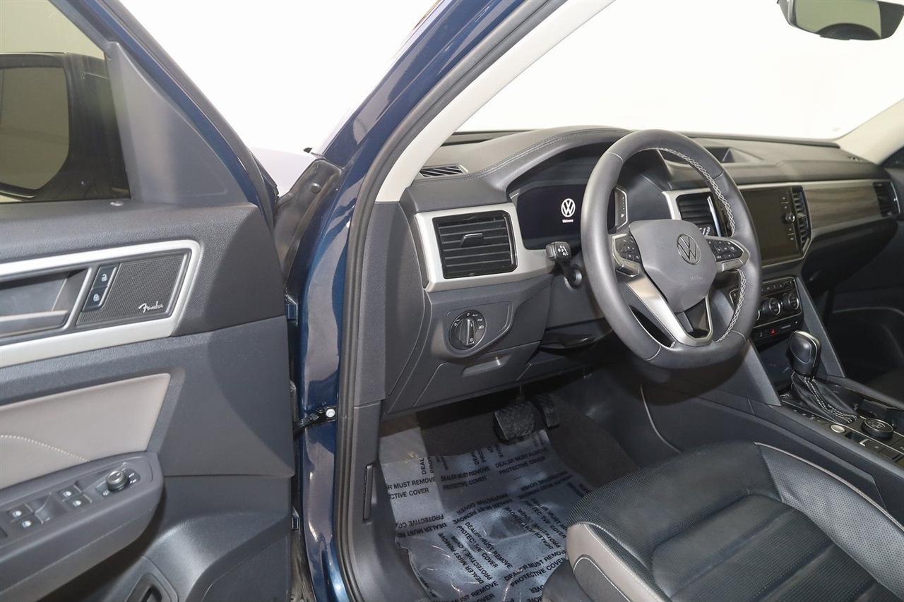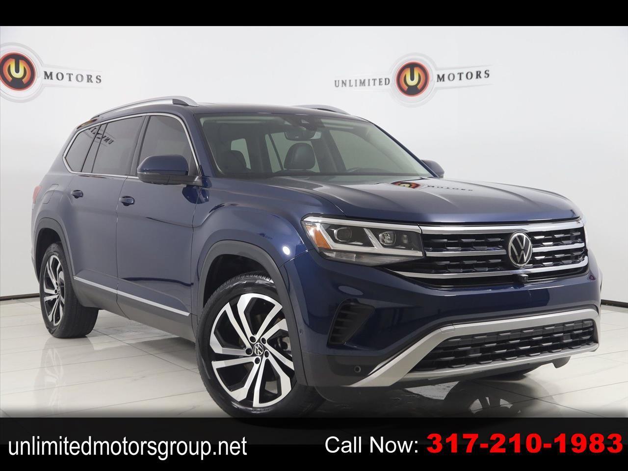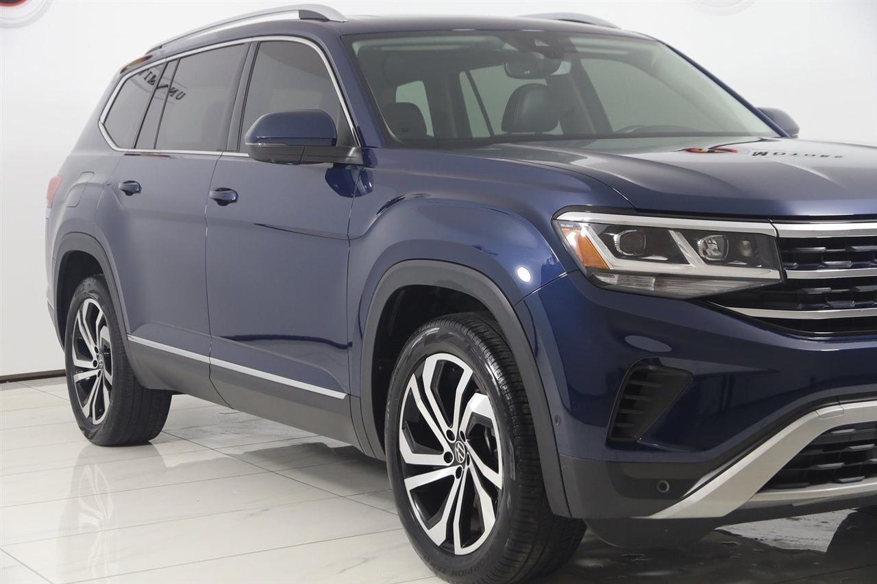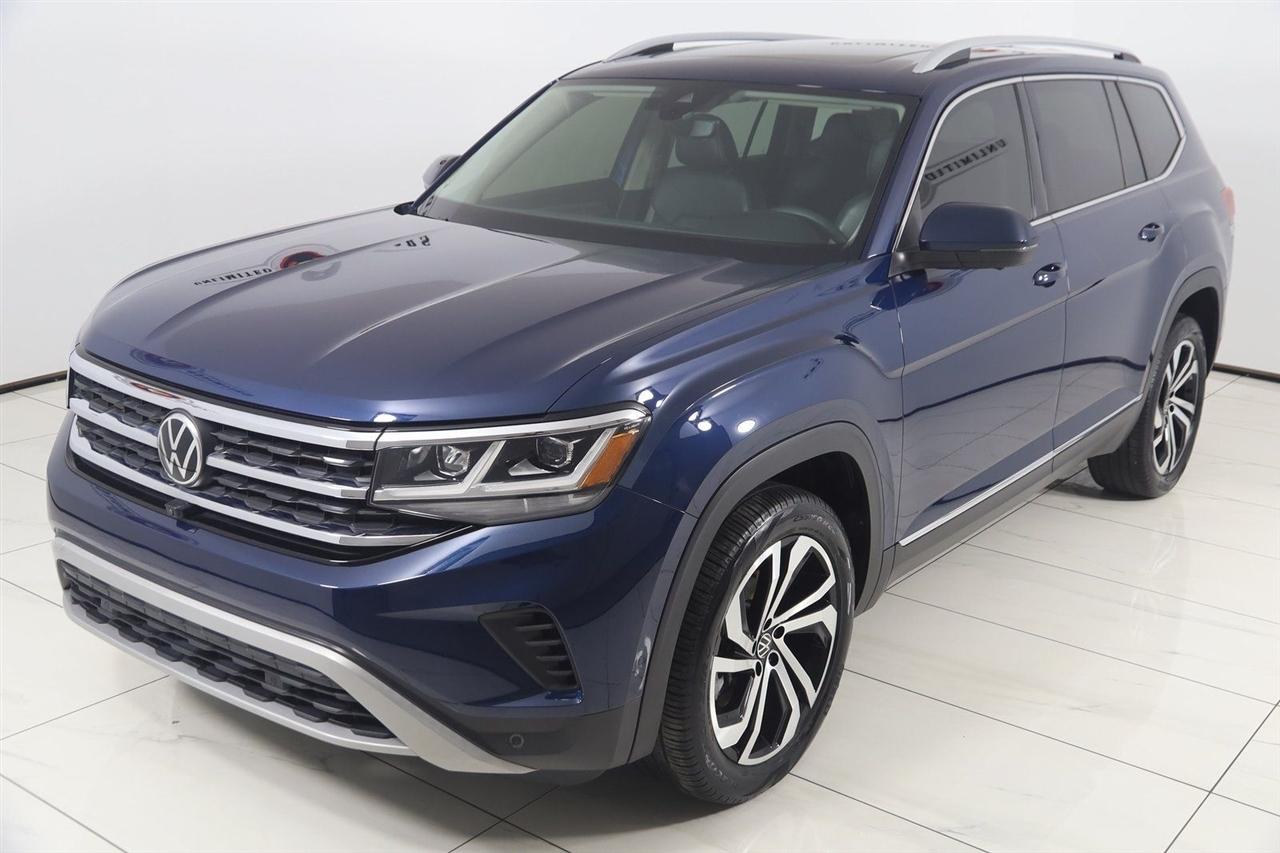 Navigation, Back Up Camera, Bluetooth, Panoramic Roof, Heated Seats, Touch Screen, Heated Steering Wheel, Rear Heated Seats, Blind Spot, Apple CarPlay/Android Auto, Atlas SEL Premium, 4D Sport Utility, 3.6L V6, 8-Speed Automatic with Tiptronic, AWD, Blue Metallic, Titan Black W/Quartzite Leather, Navigation System.