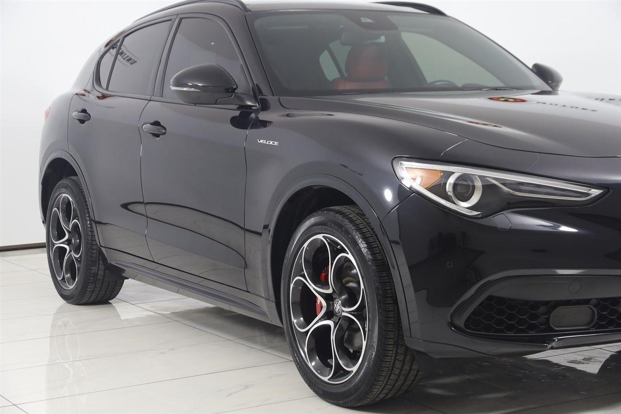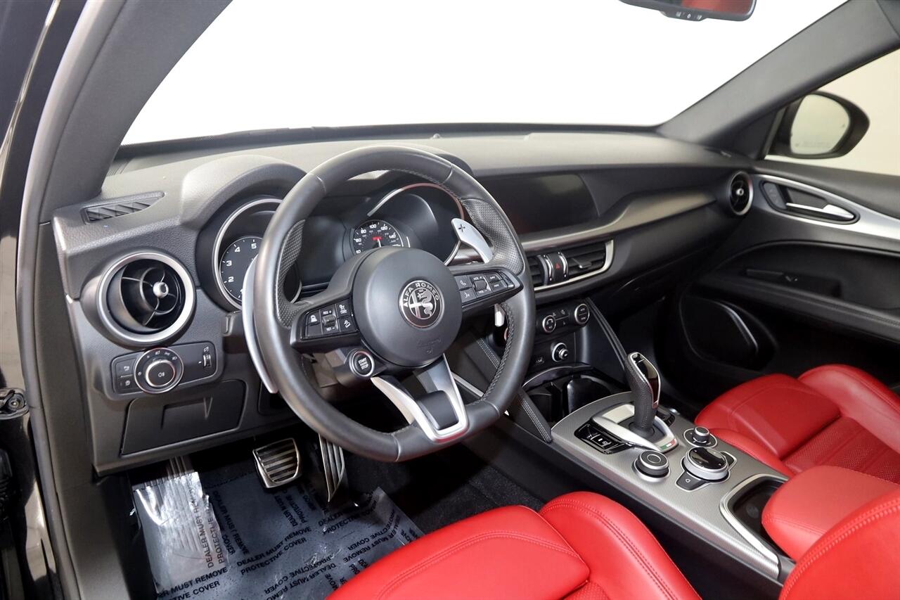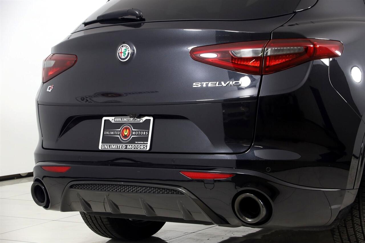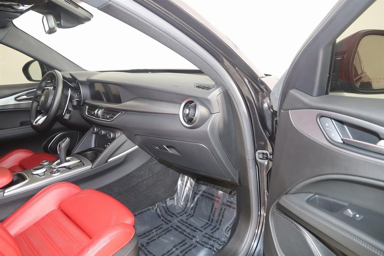 Navigation, Back Up Camera, Bluetooth, Panoramic Roof, Heated Seats, Touch Screen, Heated Steering Wheel, Blind Spot, Stelvio Veloce Ti, 4D Sport Utility, I4, 8-Speed Automatic, AWD, Vulcano Black Metallic, Black Leather, Navigation System.