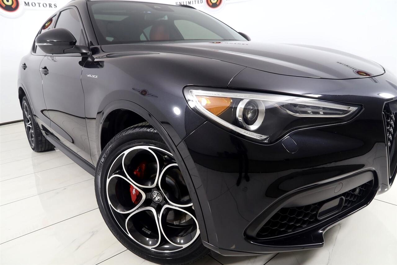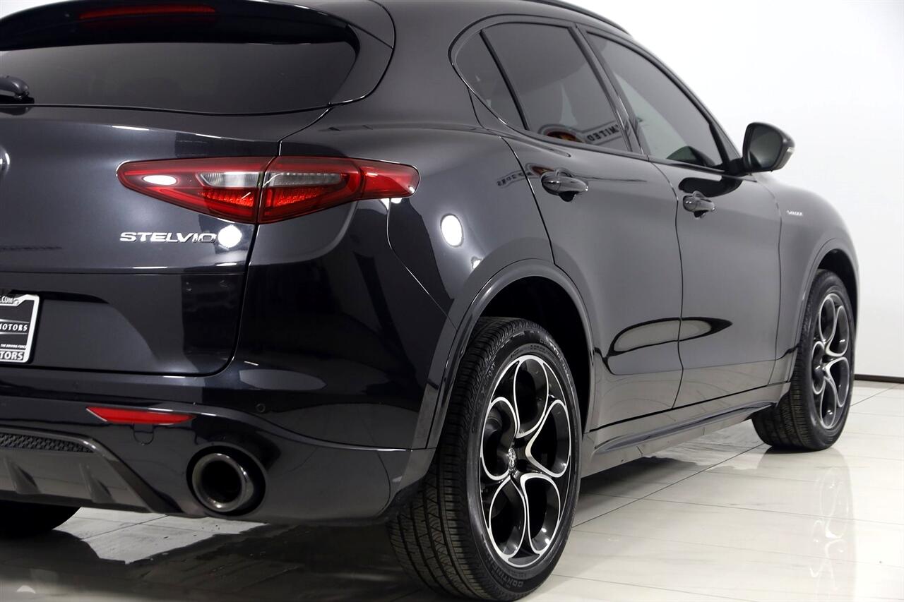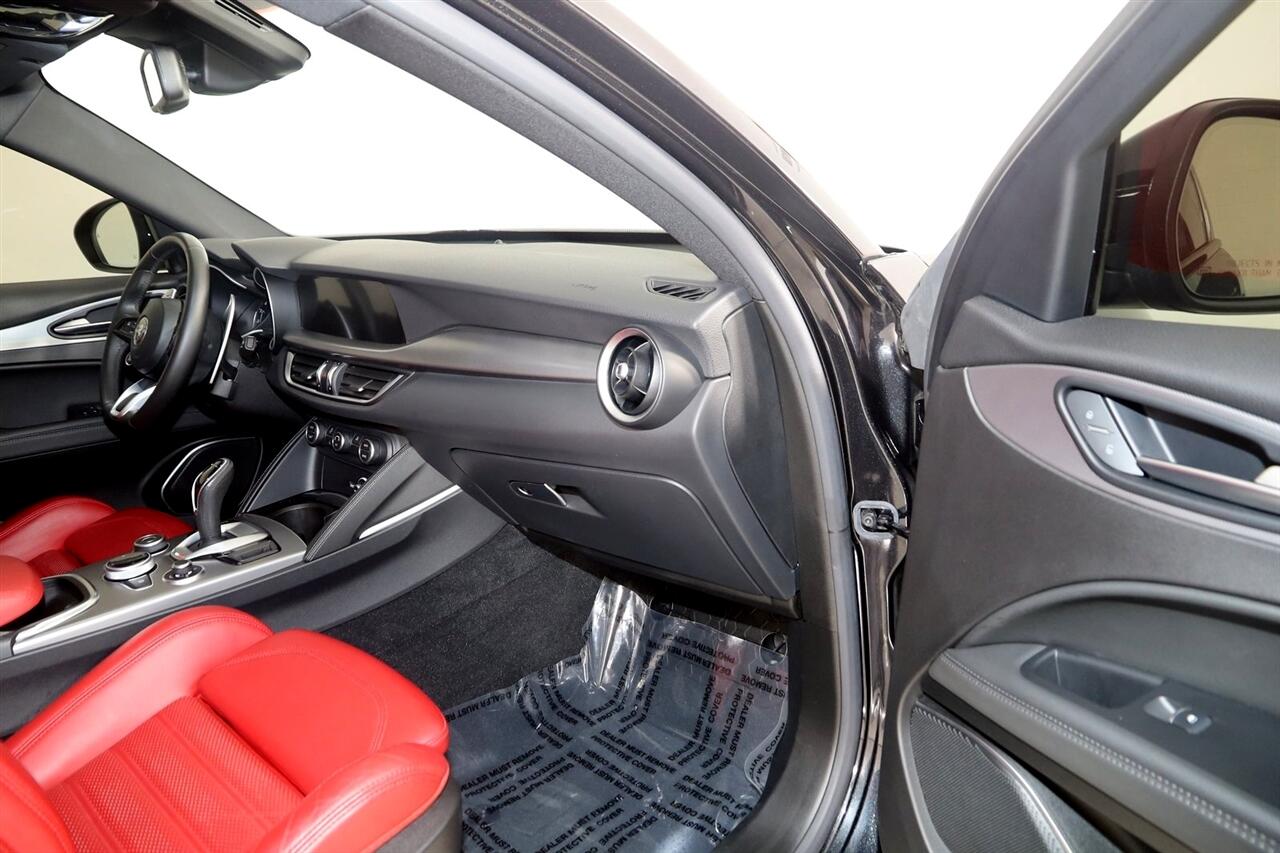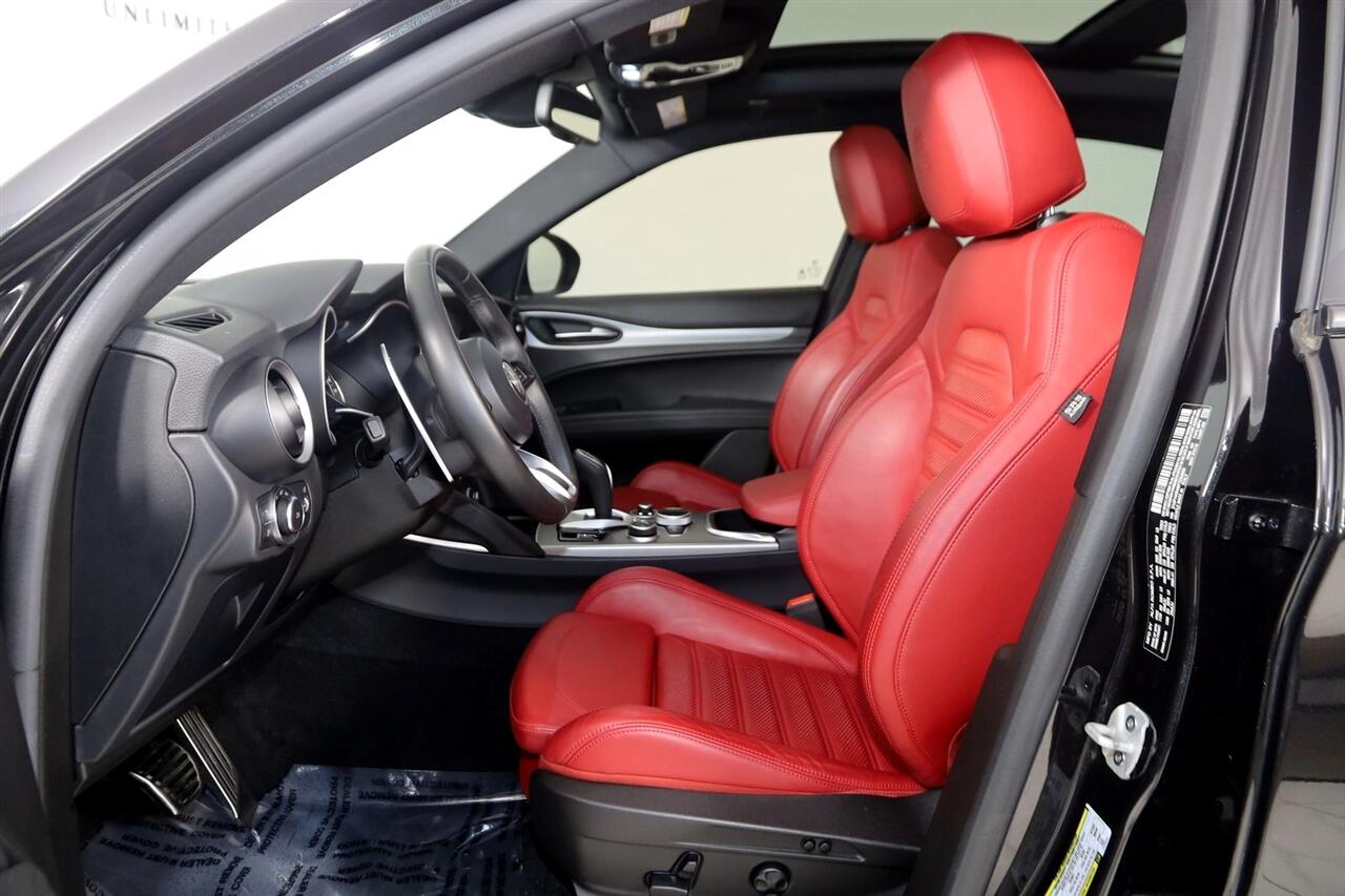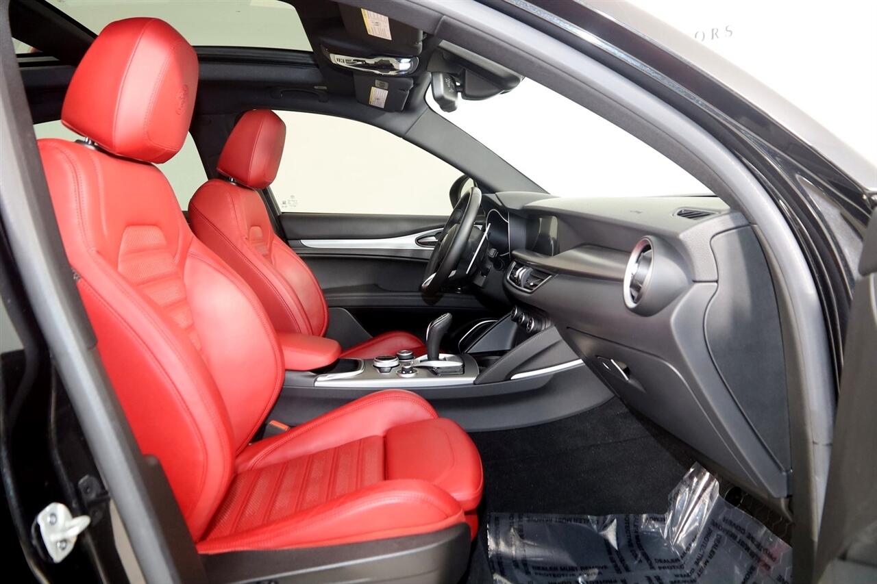 Navigation, Back Up Camera, Bluetooth, Panoramic Roof, Heated Seats, Touch Screen, Heated Steering Wheel, Blind Spot, Stelvio Veloce Ti, 4D Sport Utility, I4, 8-Speed Automatic, AWD, Vulcano Black Metallic, Black Leather, Navigation System.