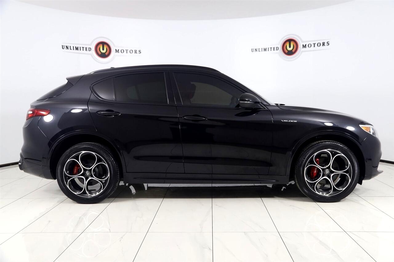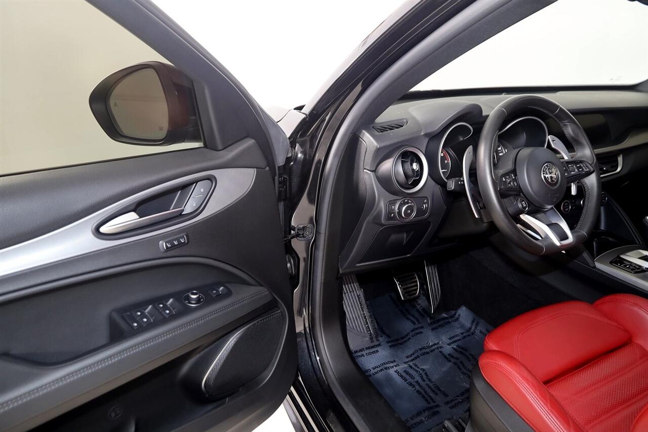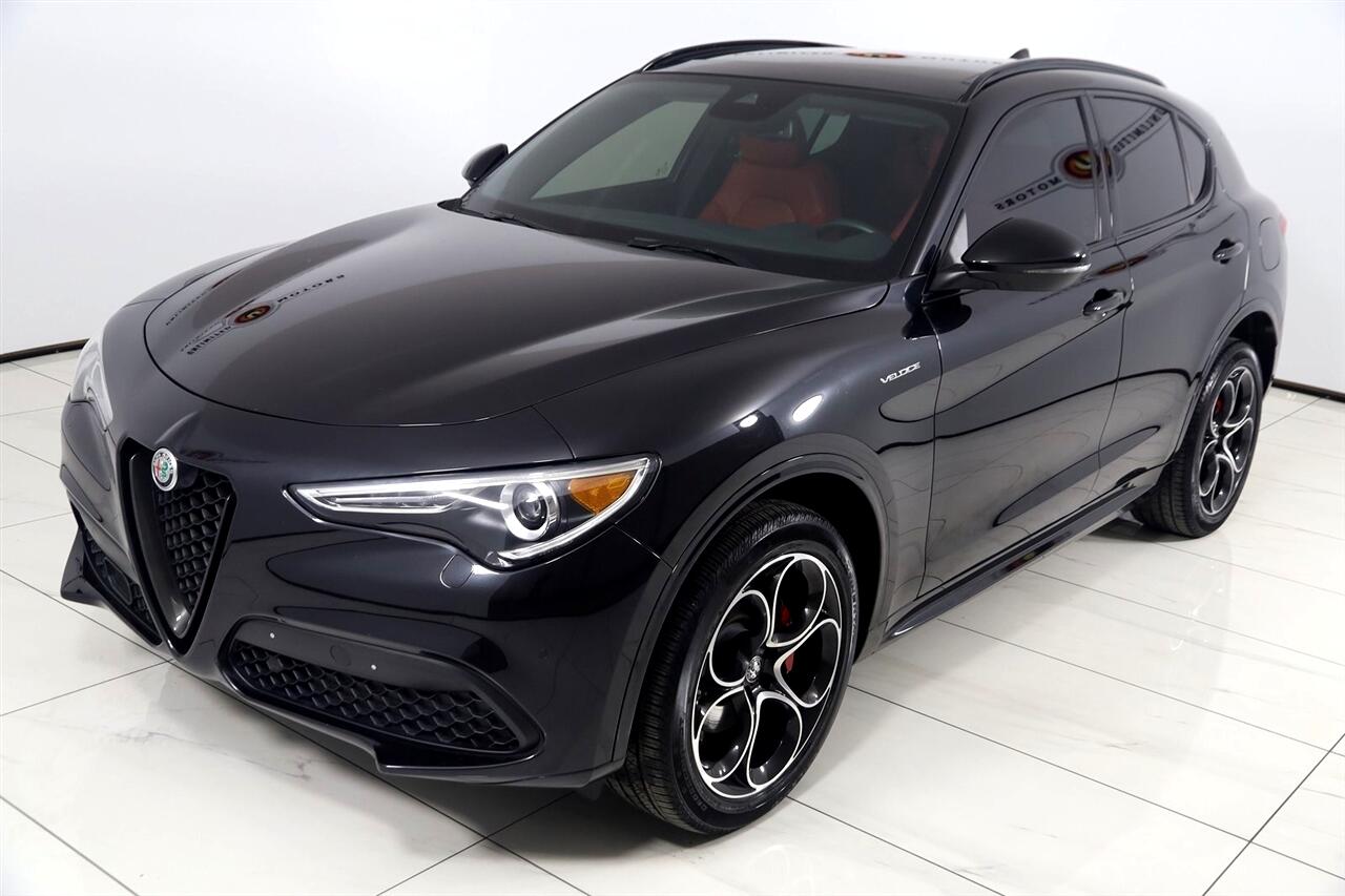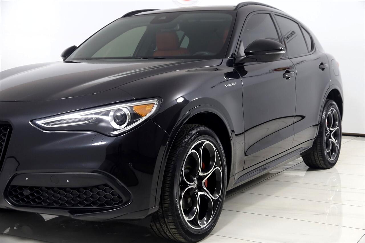 Navigation, Back Up Camera, Bluetooth, Panoramic Roof, Heated Seats, Touch Screen, Heated Steering Wheel, Blind Spot, Stelvio Veloce Ti, 4D Sport Utility, I4, 8-Speed Automatic, AWD, Vulcano Black Metallic, Black Leather, Navigation System.