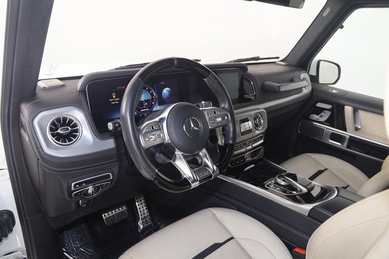 Navigation, Back Up Camera, Bluetooth, Sun/Moon Roof, Running Boards, Heated Seats, Winch, Touch Screen, Blind Spot, Apple CarPlay/Android Auto, G 63 AMG® 4MATIC®, 4D Sport Utility, V8, 9-Speed Automatic, 4MATIC®, Polar White, Macchiato Beige/Black Leather, Navigation System.