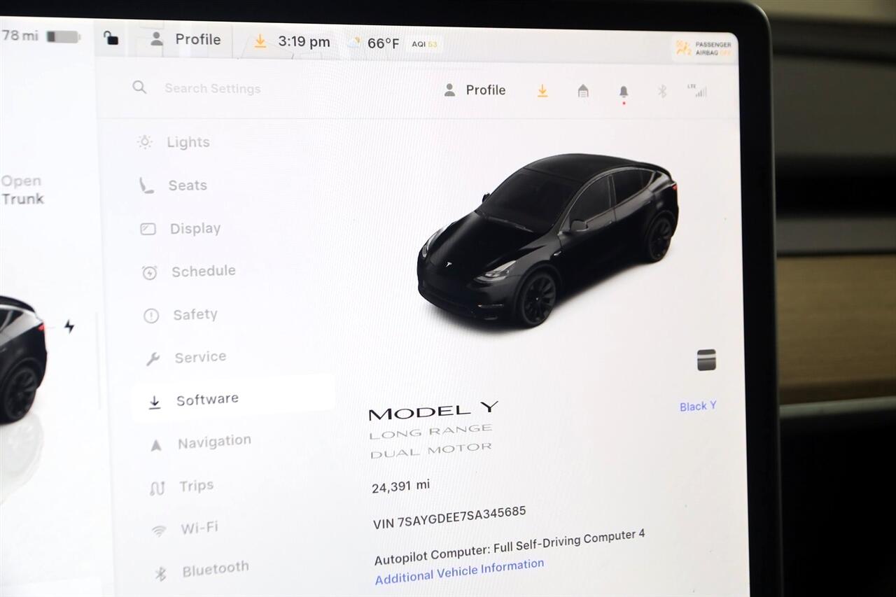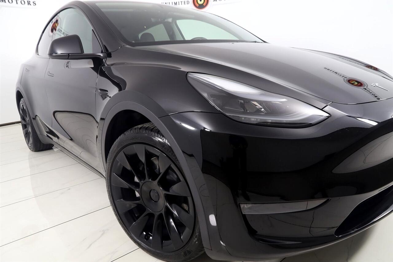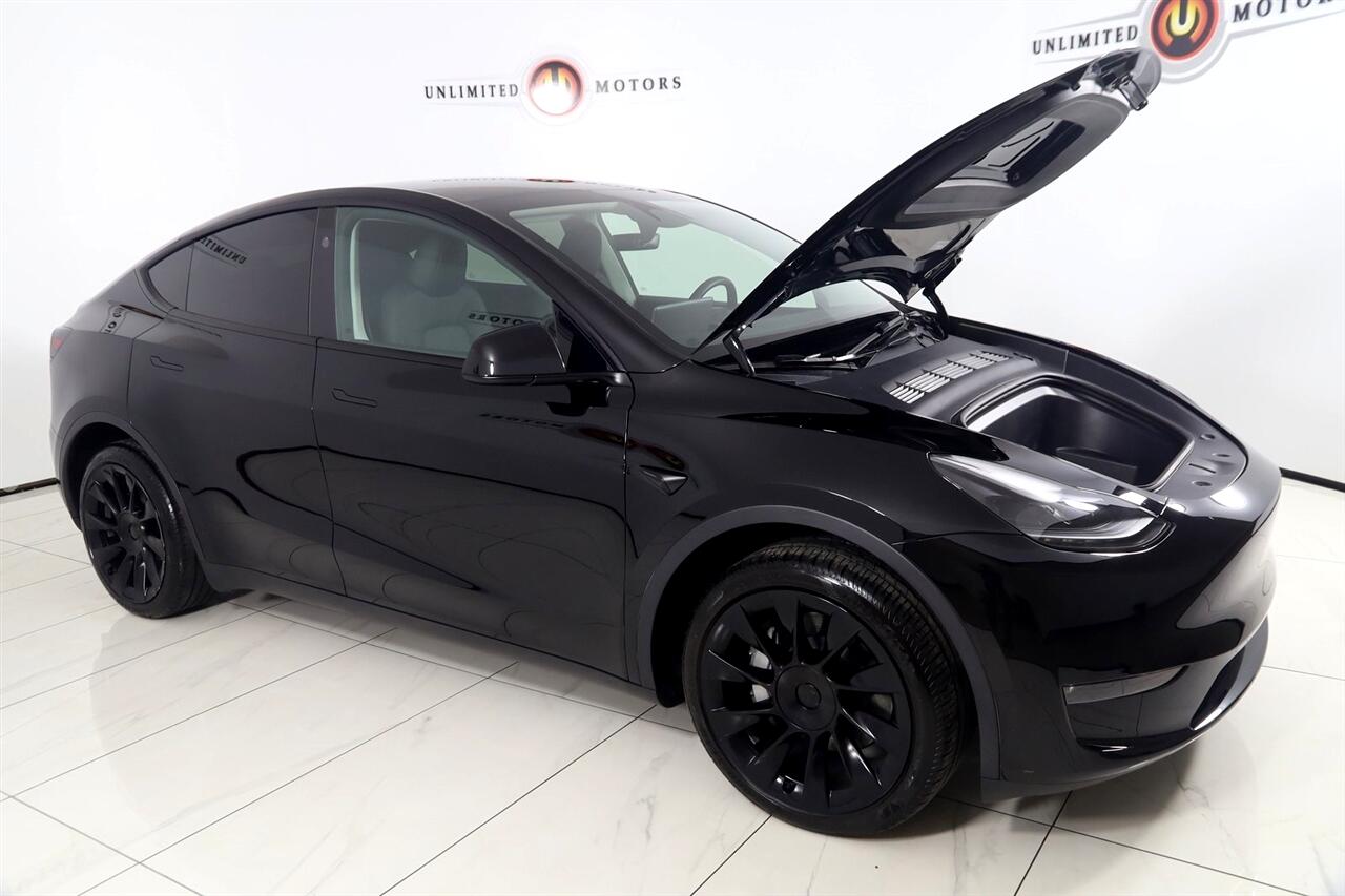 Navigation, Back Up Camera, Bluetooth, Panoramic Roof, Heated Seats, Touch Screen, Heated Steering Wheel, Model Y Long Range, 4D Sport Utility, Electric Motor, 1-Speed Automatic, AWD, Solid Black, Black Leather, Navigation System.