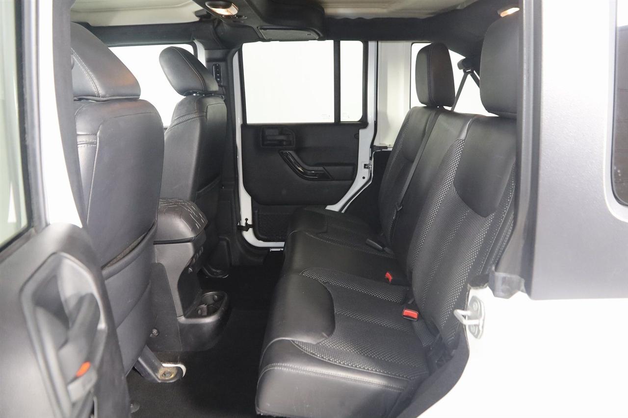Bluetooth, Sun/Moon Roof, Running Boards, Heated Seats, Winch, Wrangler Unlimited Sahara, 4D Sport Utility, 3.6L V6 24V VVT, 5-Speed Automatic, 4WD, Bright White Clearcoat, Black Leather, Alpine 9-Speaker w/All Weather Subwoofer, Anti-Spin Differential Rear Axle, Backcountry Package, Backcountry Package Decals, Black 3-Piece Hard Top, Black Jeep Grille Badge, Black/Chrome Screws Fuel Filler Door, Body Color Grille w/Black Accent, Chrome/Leather Wrapped Shift Knob, Connectivity Group, Diesel Gray Interior Accents, Heated Front Seats, Leather Seat w/Cloth (Sport Mesh) (DISC), Low Gloss Black Wrangler Decal, MOPAR Coat Hooks and Grab Handles, MOPAR HD Rear Bumper, MOPAR Slush Mats, MOPAR Winch-Capable HD Front Bumper, Quick Order Package 24X Backcountry (DISC), Wheels: 17" x 7.5" Black Painted Alum Moab (DISC).