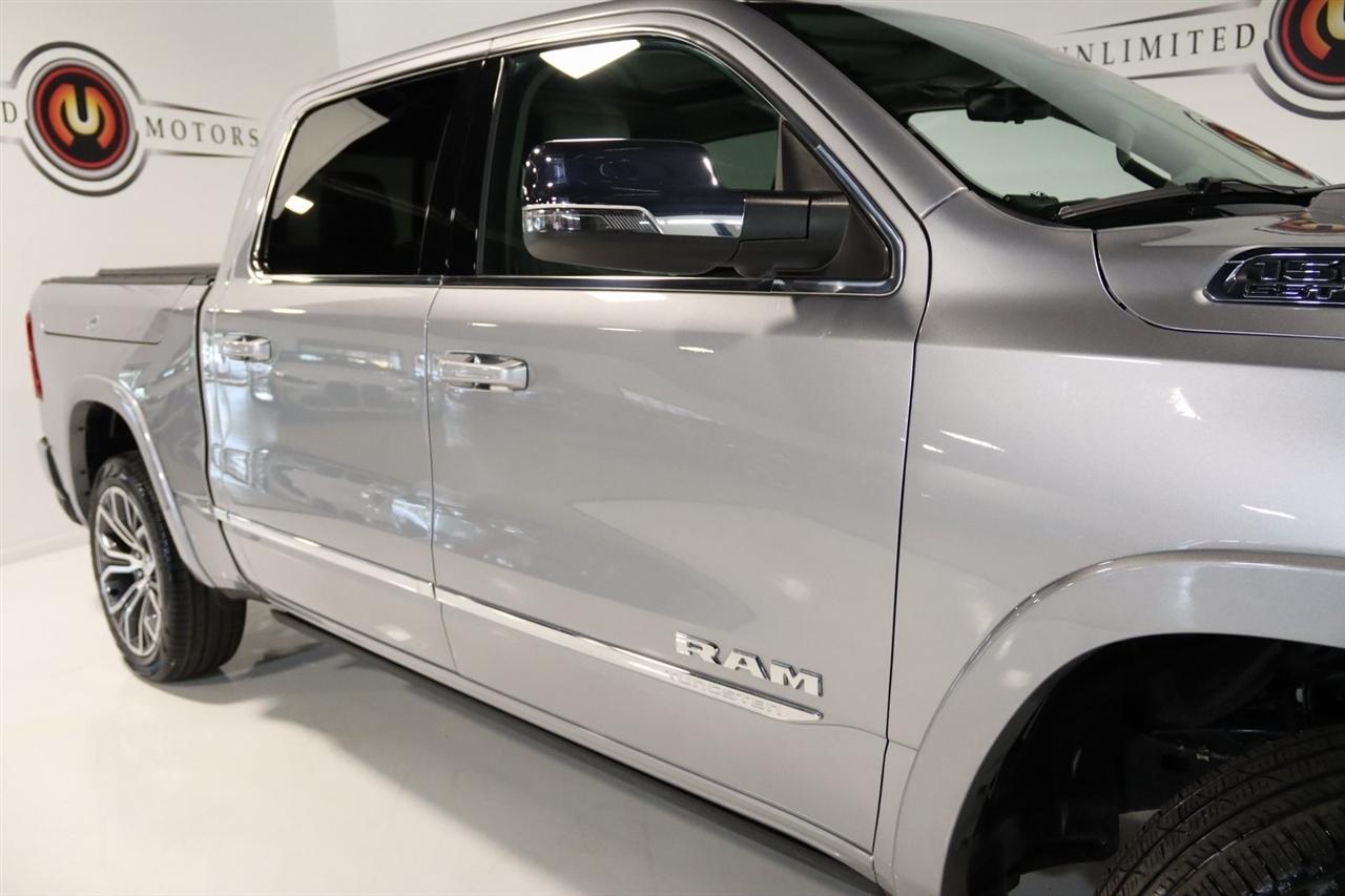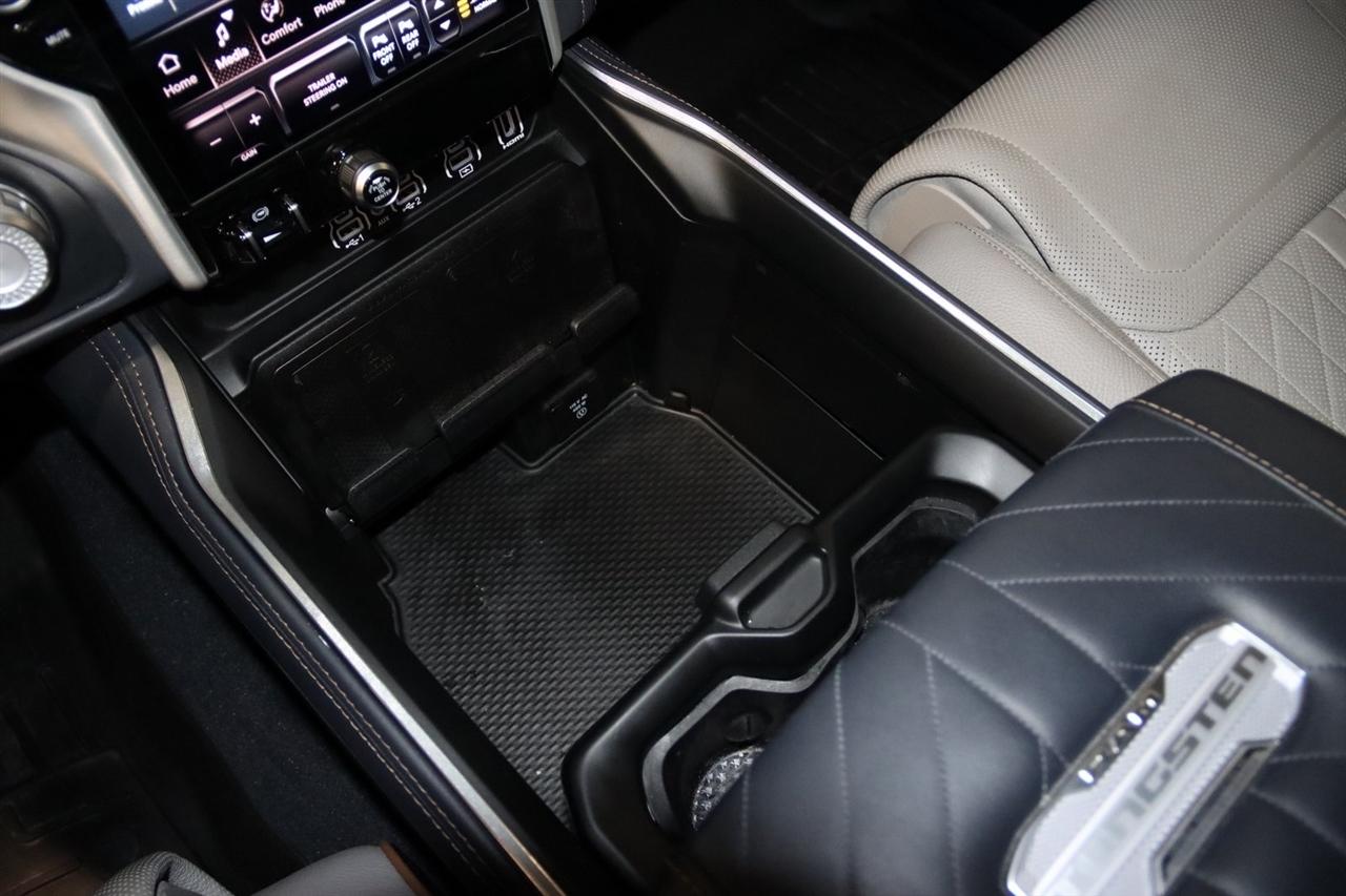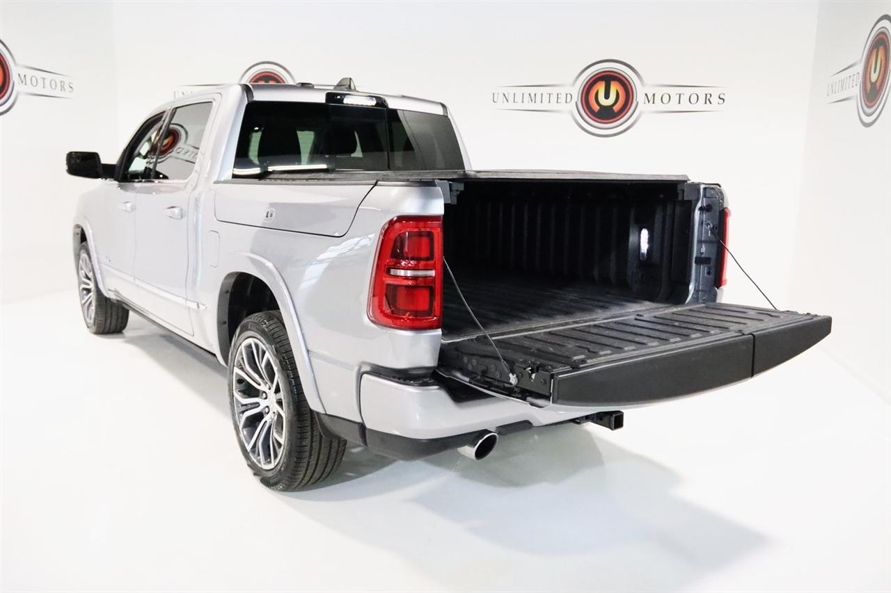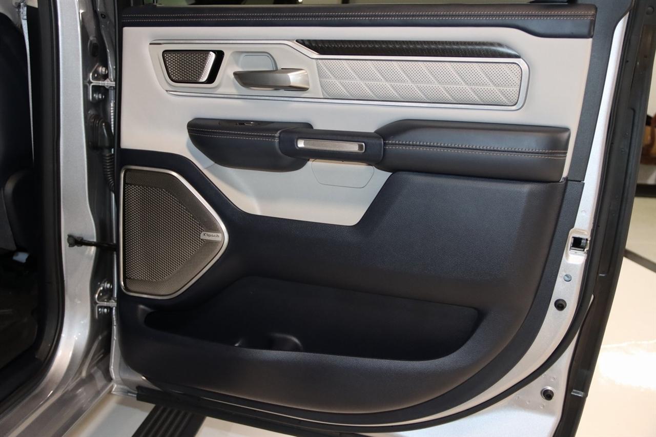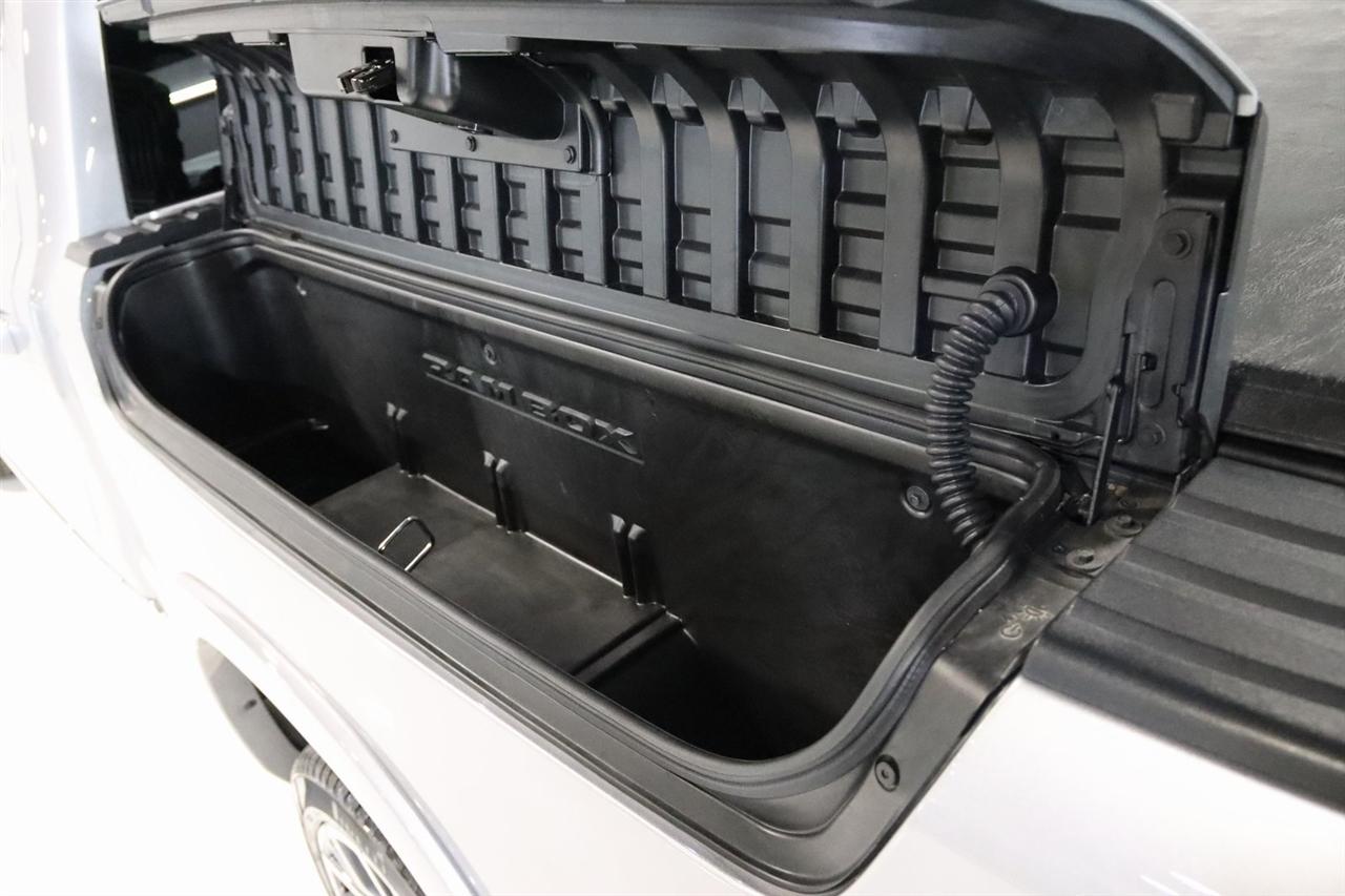 Navigation, Bluetooth, Back Up Camera, Panoramic Roof, Towing, Heated Seats, Touch Screen, 12-Way/1-Way Trailer Connector, 3.92 Rear Axle Ratio, 4-Wheel Disc Brakes, ABS brakes, Adjustable pedals, Air Conditioning, Alloy wheels, AM/FM radio: SiriusXM with 360L, Apple CarPlay/Android Auto, Audio memory, Auto High-beam Headlights, Auto Power-Folding Mirrors, Auto-dimming door mirrors, Auto-Dimming Exterior Driver Mirror, Auto-dimming Rear-View mirror, Auto-leveling suspension, Automatic temperature control, Bodyside moldings, Brake assist, Bumpers: body-color, Chrome Exterior Mirrors, Compass, Delay-off headlights, Driver door bin, Driver vanity mirror, Dual front impact airbags, Dual front side impact airbags, Electronic Stability Control, Exterior Mirrors Courtesy Lamps, Exterior Mirrors w/Heating Element, Exterior Mirrors w/Memory, Exterior Mirrors w/Supplemental Signals, Front anti-roll bar, Front Bucket Seats, Front Center Armrest w/Storage, Front dual zone A/C, Front fog lights, Front reading lights, Front wheel independent suspension, Fully automatic headlights, Garage door transmitter, Heads-Up Display, Heated door mirrors, Heated front seats, Heated rear seats, Heated steering wheel, Illuminated entry, Leather steering wheel, Low tire pressure warning, Memory seat, Multi-Function Tailgate, Navigation System, Occupant sensing airbag, Outside temperature display, Overhead airbag, Overhead console, Panic alarm, Passenger door bin, Passenger vanity mirror, Pedal memory, Power adjustable front head restraints, Power door mirrors, Power driver seat, Power moonroof, Power passenger seat, Power steering, Power windows, Premium Leather Bucket Seats, Quick Order Package 22V Tungsten, Radio data system, Radio: Uconnect 5 Nav w/14.4" Display, Rain sensing wipers, RAM's Head Badge, Rear anti-roll bar, Rear reading lights, Rear seat center armrest, Rear step bumper, Rear window defroster, Remote keyless entry, Remote Tailgate Release, Security system, Speed control, Split folding rear seat, Steering wheel mounted audio controls, Tachometer, Telescoping steering wheel, Tilt steering wheel, Traction control, Trailer Brake Control, Trailer Light Check, Trailer Reverse Steering Control, Trailer Tire Pressure Monitoring System, Trailer Tow Group, Trip computer, Turn signal indicator mirrors, Variably intermittent wipers, Ventilated front seats, Ventilated rear seats, Voltmeter, Wheels: 22" x 9" Polish/Painted w/Inserts. CARFAX One-Owner. Priced below KBB Fair Purchase Price!