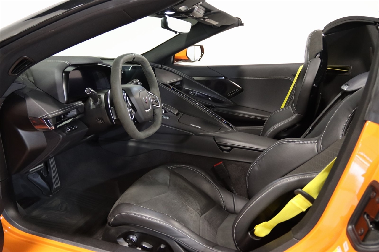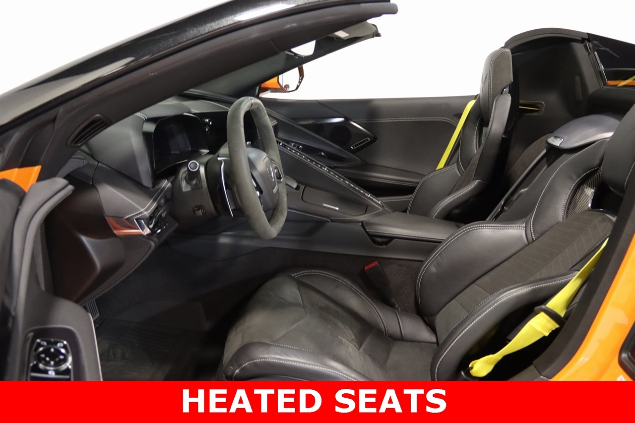 Navigation, Bluetooth, Back Up Camera, Hard Top, Heated Seats, Touch Screen, HARD TOP CONVERTIBLE, 14 Speakers, 2 Cargo Nets, 4-Wheel Disc Brakes, 8-Way Power Driver Seat Adjuster, 8-Way Power Passenger Seat Adjuster, ABS brakes, Air Conditioning, Alloy wheels, AM/FM radio: SiriusXM, Apple CarPlay/Android Auto, Auto-dimming door mirrors, Auto-dimming Rear-View mirror, Automatic Leveling System Headlamp Control, Automatic temperature control, Battery Protection Package, Black Exhaust Tips, Bose Performance Series Sound System w/14 Speakers, Brake assist, Bumpers: body-color, Compass, Convertible HardTop, Convertible roof lining, Convertible Top w/Carbon Flash Nacelles & Roof, Delay-off headlights, Driver door bin, Driver Power Bolster Seat Adjuster, Driver vanity mirror, Dual front impact airbags, Dual front side impact airbags, Edge Yellow-Painted Calipers, Electrical Theft Deterrent System, Electronic Limited-Slip Differential, Electronic Stability Control, Emergency communication system: OnStar and Chevrolet connected services capable, Four wheel independent suspension, Front anti-roll bar, Front Bucket Seats, Front Center Armrest, Front dual zone A/C, Front Lift Adjustable Height w/Memory, Front reading lights, Fully automatic headlights, Garage door transmitter, Glass rear window, GT1 Bucket Seats, GT2 Bucket Seats, HD Front & Rear Vision Cameras, HD Radio, Head-Up Display, Heads-Up Display, Heated & Vented Driver & Passenger Seats, Heated door mirrors, Heated front seats, Heated Steering Wheel, Heated steering wheel, Heavy-Duty Cooling System, Illuminated entry, Integrated roll-over protection, Leather Shift Knob, Leather steering wheel, Low tire pressure warning, Memory Driver & Passenger Convenience Package, Memory seat, Mulan Lthr Seating Surfaces w/Perforated Inserts, Navigation System, Occupant sensing airbag, Outside temperature display, Overhead console, Panic alarm, Passenger door bin, Passenger Power Bolster Seat Adjuster, Passenger vanity mirror, Performance Data & Video Recorder, Performance Exhaust w/Stainless-Steel Tips, Performance Rear Axle Ratio, Performance Traction Management, Power convertible roof, Power door mirrors, Power Driver Lumbar Control Seat Adjuster, Power driver seat, Power Passenger Lumbar Control Seat Adjuster, Power passenger seat, Power steering, Power windows, Power-Adjustable Outside Heated Mirrors, Preferred Equipment Group 2LT, Premium audio system: Chevrolet Infotainment 3 Premium, Radio data system, Radio: Chevrolet Infotainment 3 Premium System, Rear anti-roll bar, Rear Cross Traffic Alert, Rear window defroster, Rear Z51 Spoiler, Remote keyless entry, Security system, Side Blind Zone Alert, SiriusXM Radio, Speed control, Speed-sensing steering, Sport steering wheel, Stealth Interior Trim Package, Steering wheel memory, Steering wheel mounted audio controls, Sueded Microfiber-Wrapped Steering Wheel, Tachometer, Telescoping steering wheel, Tilt steering wheel, Traction control, Trip computer, Turn signal indicator mirrors, Universal Home Remote, Variably intermittent wipers, Vehicle Inclination Theft Deterrent Sensor, Vehicle Interior Movement Theft Deterrent Sensor, Ventilated front seats, Voltmeter, Wheels: 19" x 8.5" Fr/20" x 11" Rr Gloss Black, Wireless Charging for Devices, Yellow Seat Belt Color, Z51 Perf Suspension w/Magnetic Selective Ride Cntrl, Z51 Performance Brakes, Z51 Performance Package, Z51 Performance Suspension. Clean CARFAX.