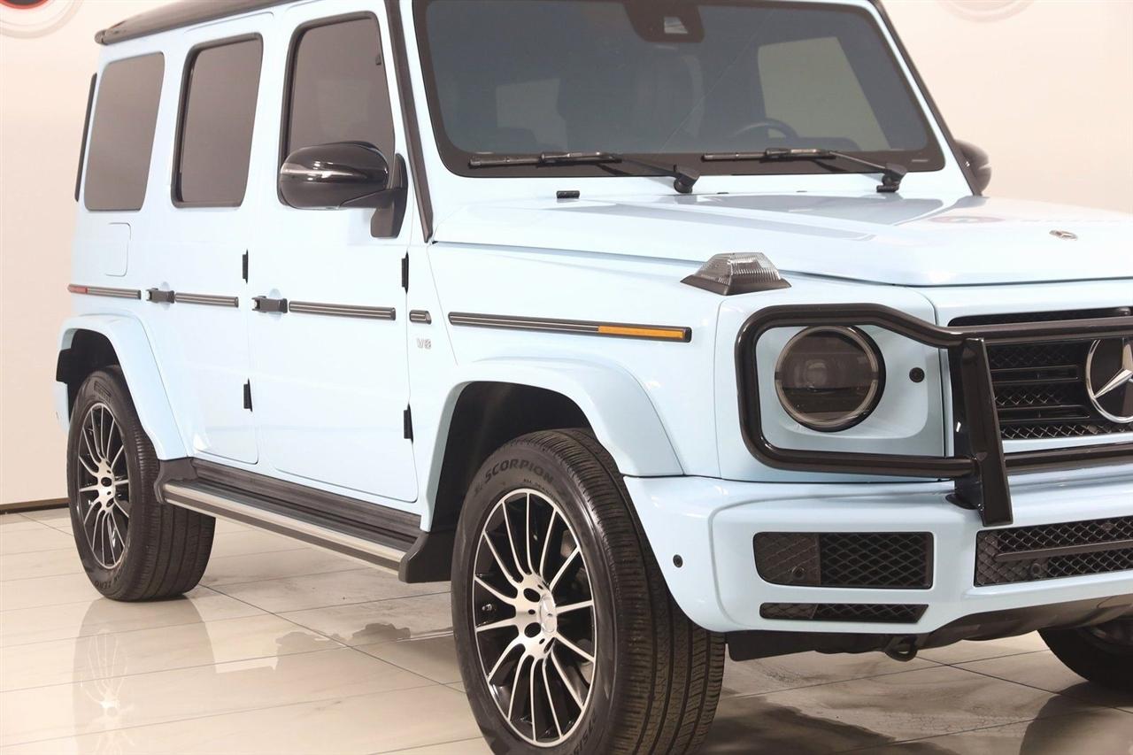 Navigation, Back Up Camera, Bluetooth, Sun/Moon Roof, Running Boards, Heated Seats, Winch, Touch Screen, Blind Spot, Apple CarPlay/Android Auto, G 550 4MATIC®, 4D Sport Utility, 4.0L V8, 9-Speed Automatic, 4MATIC®, Obsidian Black Metallic, Black Leather, AMG® Floor Mats, AMG® Line, AMG® Sport Exhaust, Black Microfiber Headliner, Brake Calipers w/MB Lettering, Brush Guard in Black, Exclusive Interior Package, Exterior Protective Strip in Aluminum Look, Exterior Protective Strip in Pinstripe Look, Flared Wheel Arches, Frameless Rearview Mirror, Leather Dashboard, Nappa Leather Multifunction Sports Steering Wheel, Navigation System, Night Package, Perforated Nappa Leather Upholstery, Red Seat Belts, Spare Wheel Cover in Obsidian Black, Wheels: 20" AMG® Multi-Spoke Alloy, Wheels: 20" AMG® Multi-Spoke w/Black Accents.